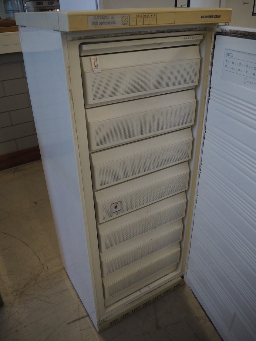 Liebherr freezer, model: GSP 3126, type: 3 6130 4, serial number: 19 149 405 3, 220-230 V, 50 Hz, 100 W, volume: 307 liter, refrigerant: R600a / 85 gram, dimensions: 680 mm x 660 mm x 1640 mm.