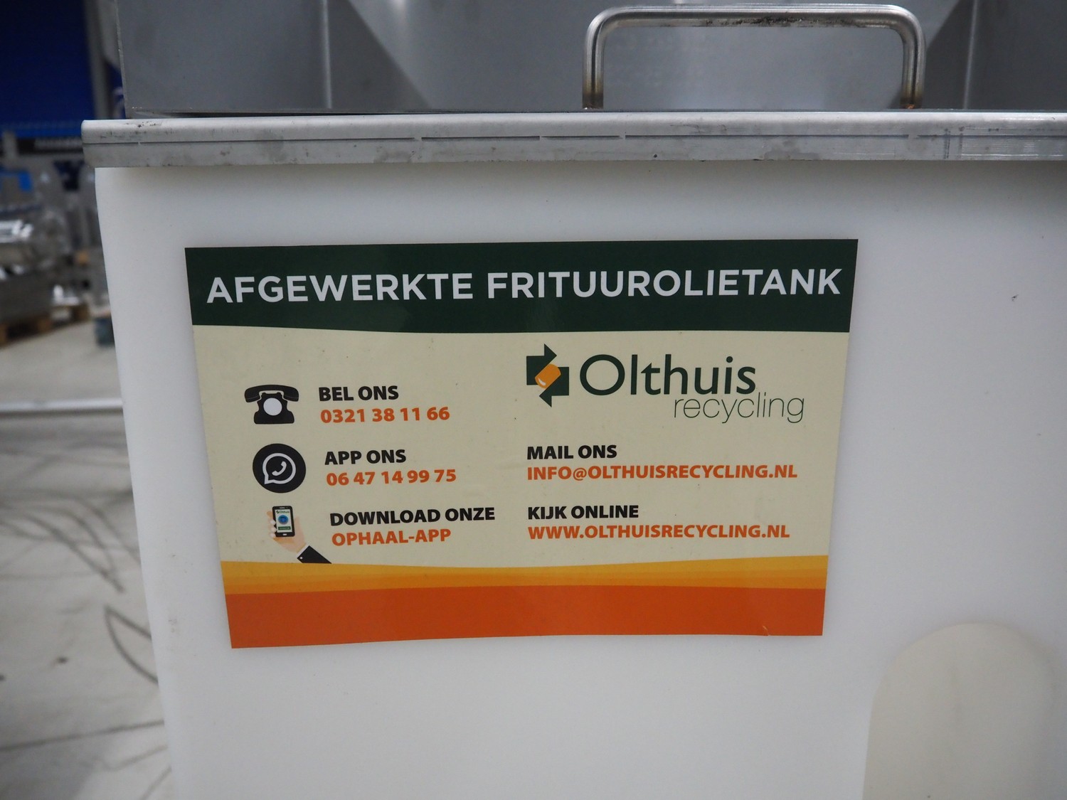 WYDALE plastic oil container, dimensions: 1250 mm x 580 mm x 1200 mm.