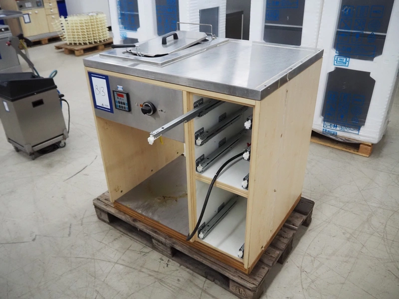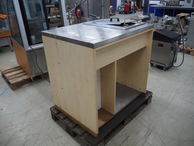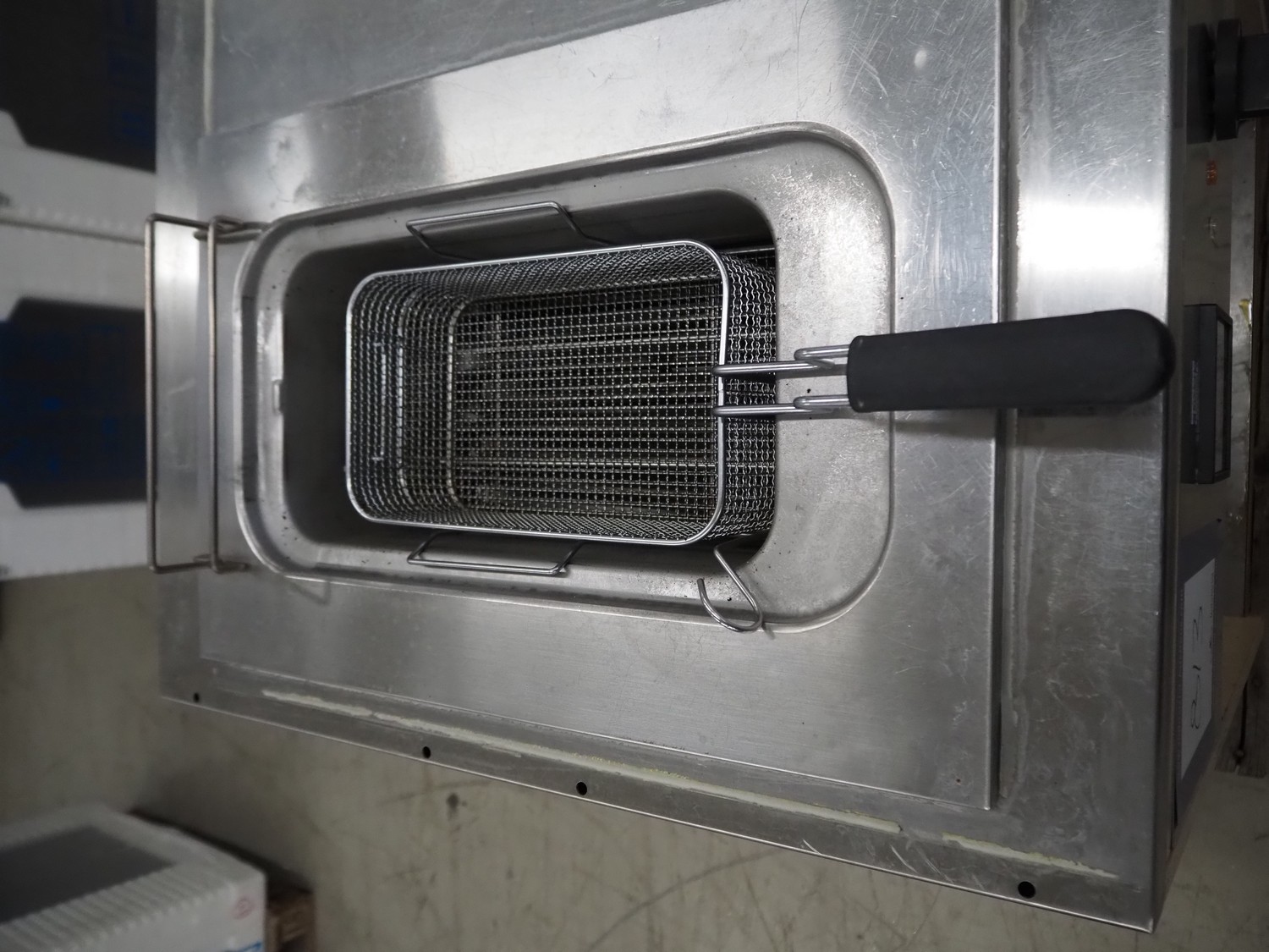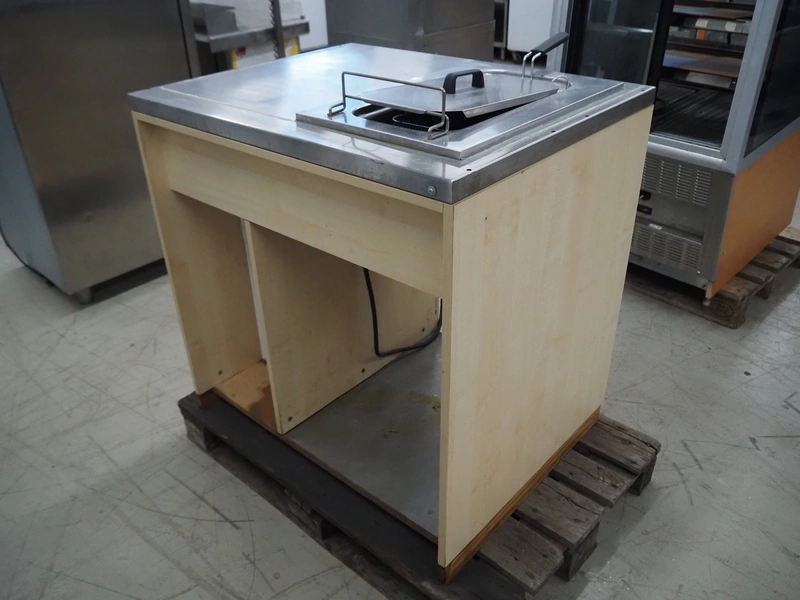 Sitex fryer with counter, s/s top, inside dimensions fryer: 410 mm x 210 mm x 200 mm, total dimensions: 955 mm x 750 mm x 955 mm.