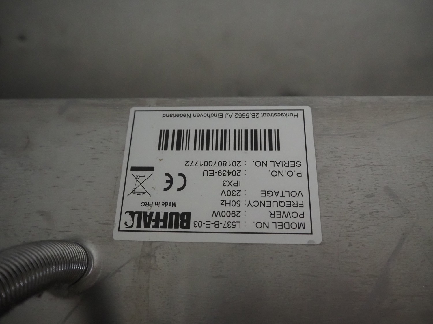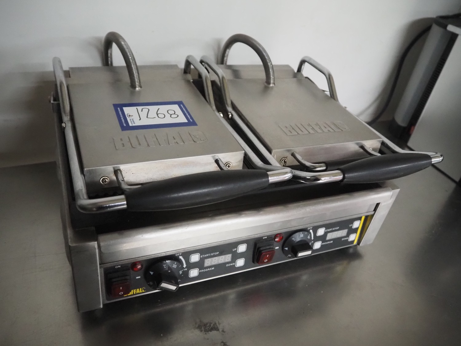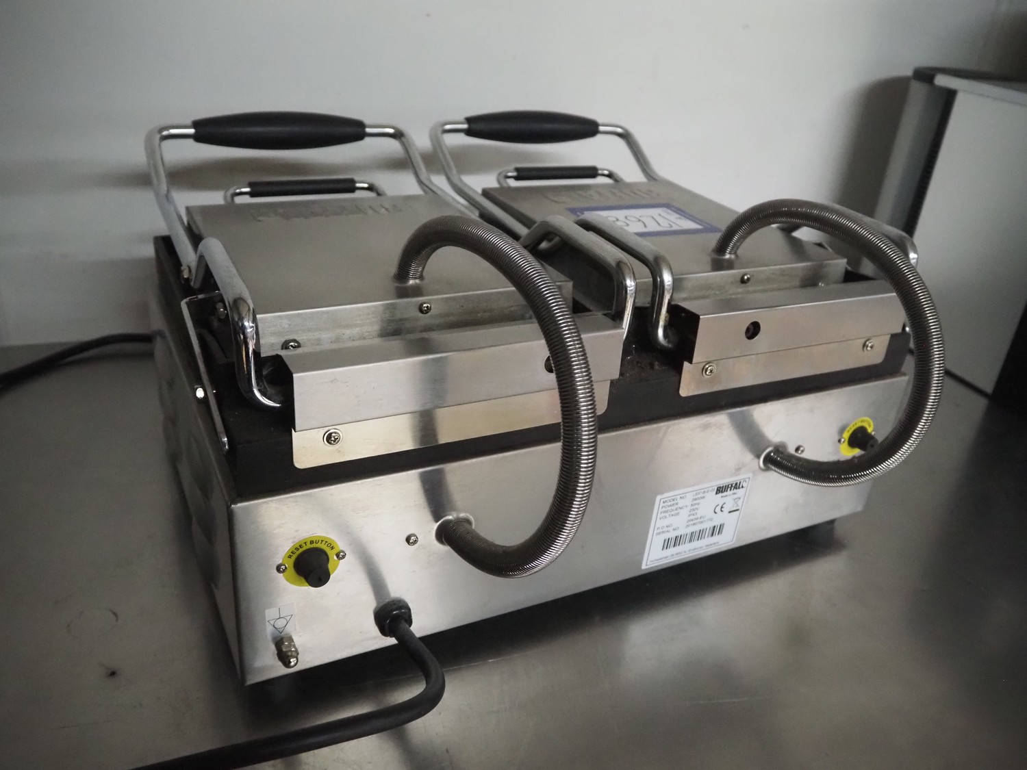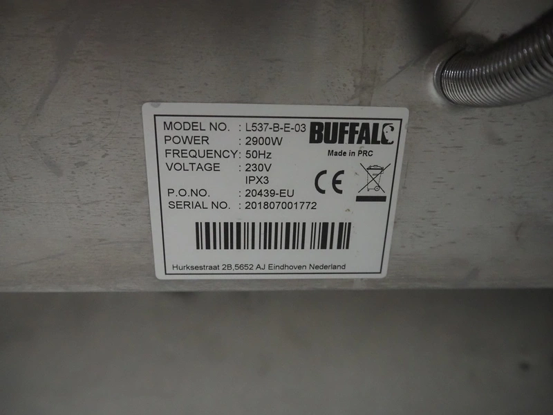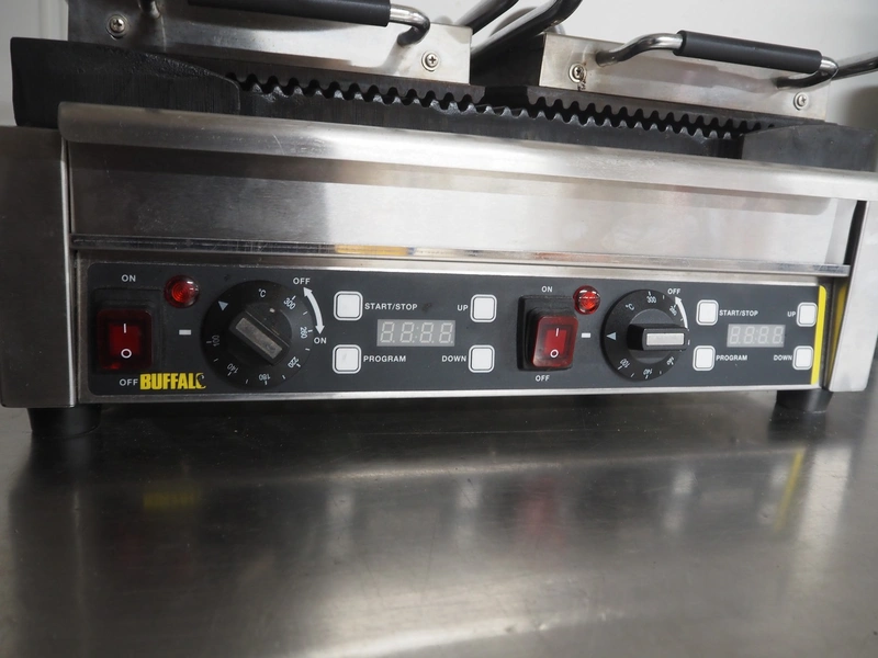 Buffalo double grill, model: L537-B-E-03, serial number: 201807001772, 230 V, 50 Hz, 2900 W, dimensions: 480 mm x 400 mm x 240 mm.