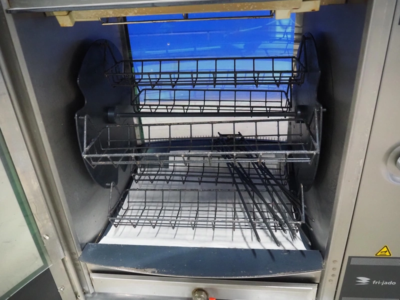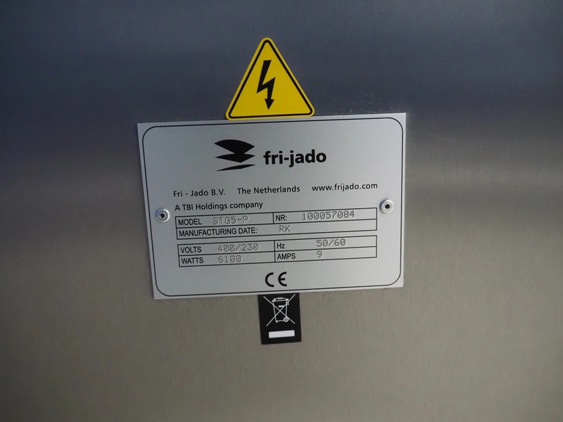 Fri-Jado BV rotisserie grill, model: STG5-P, number: 100057084, 400/230 V, 50/60 Hz, 9 A, 6100 W, dimensions: 840 mm x 700 mm x 900 mm.