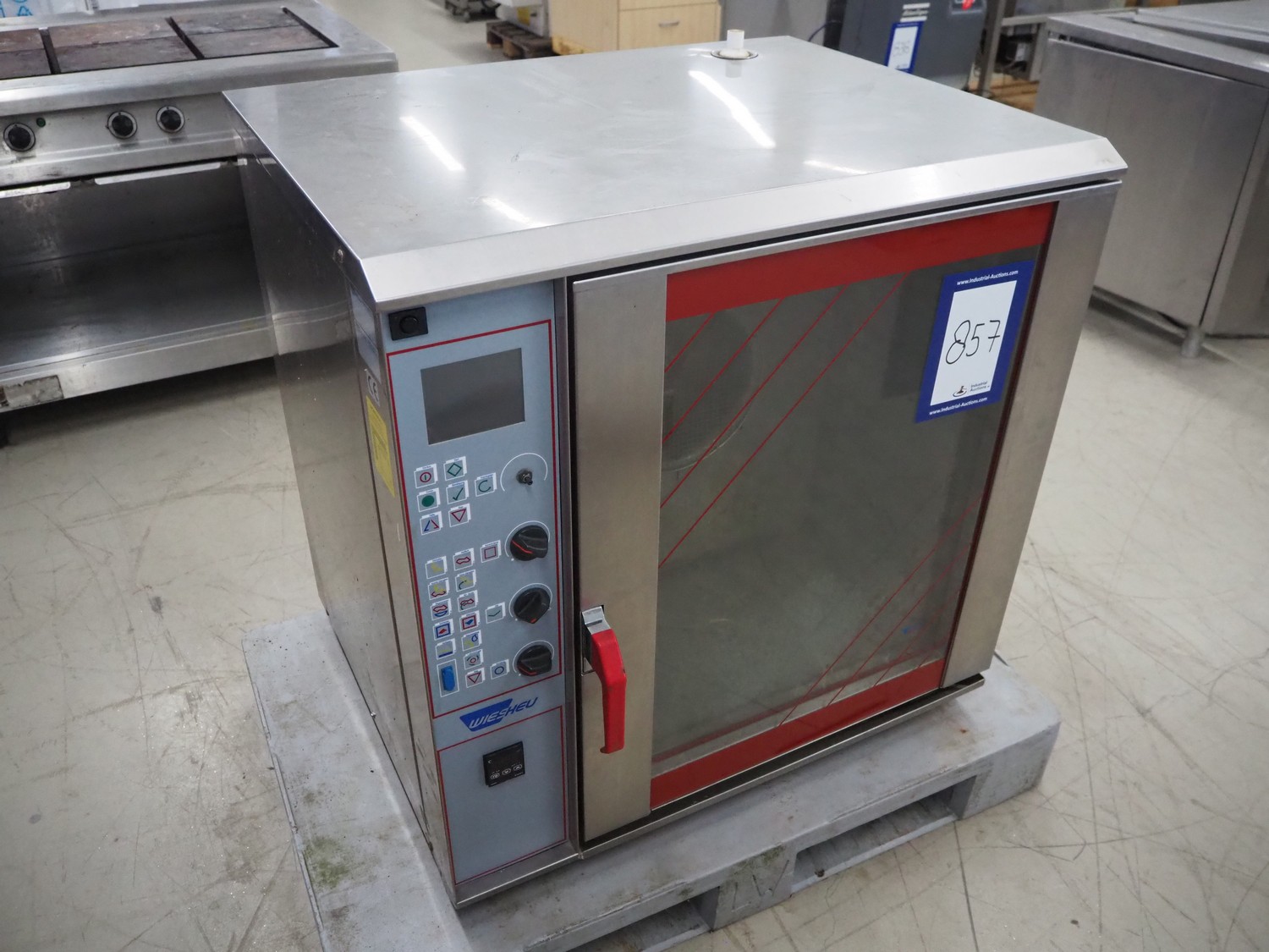 Wiesheu combi steam oven, year of construction: 1998, 10 floors, floor dimensions: (10x) 535 mm x 320 mm, total dimensions: 920 mm x 710 mm x 930 mm.