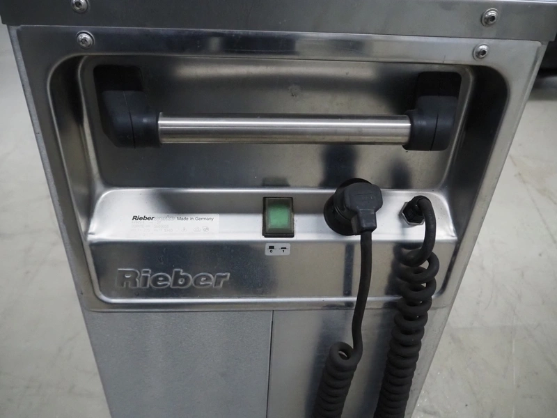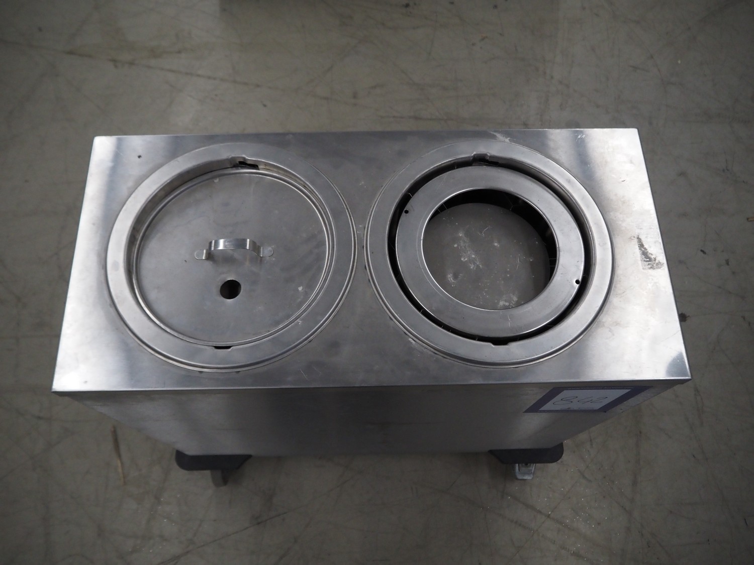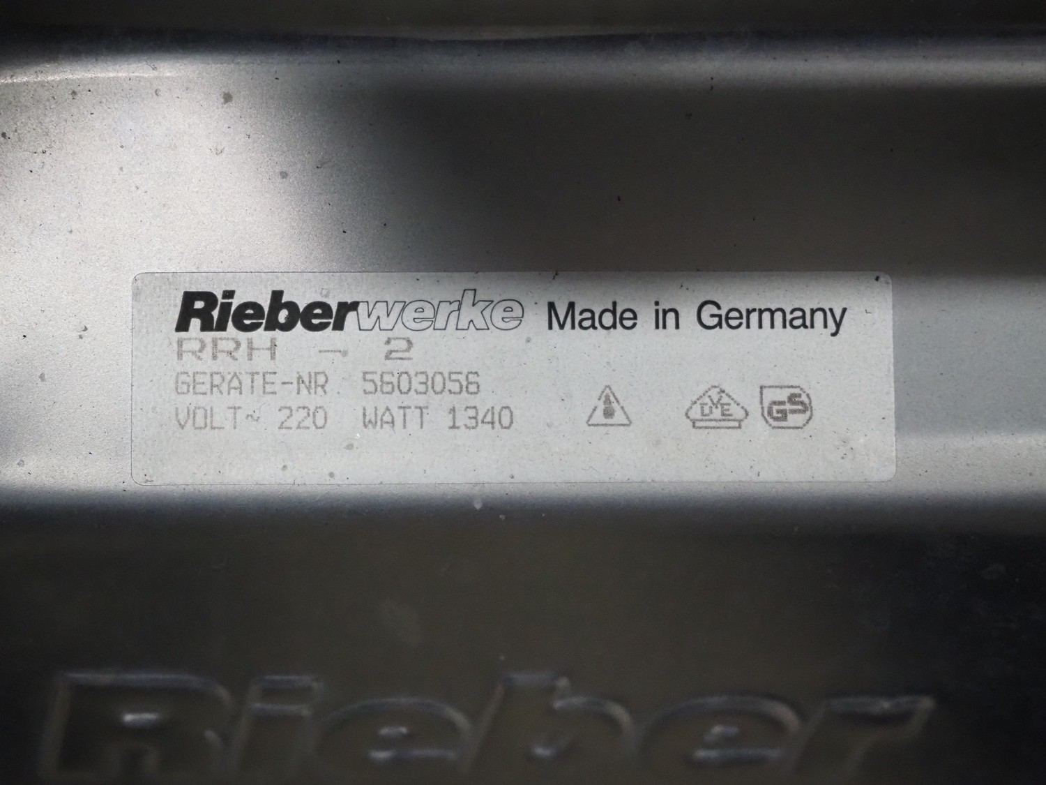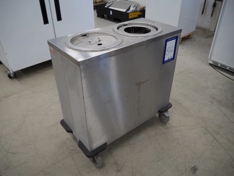 Rieberwerke mobile plate dispenser, type: RRH-2, number: 5603056, 220 V, 1340 Watt, plate diameter: 300 mm, total dimensions: 940 mm x 480 mm x 910 mm.