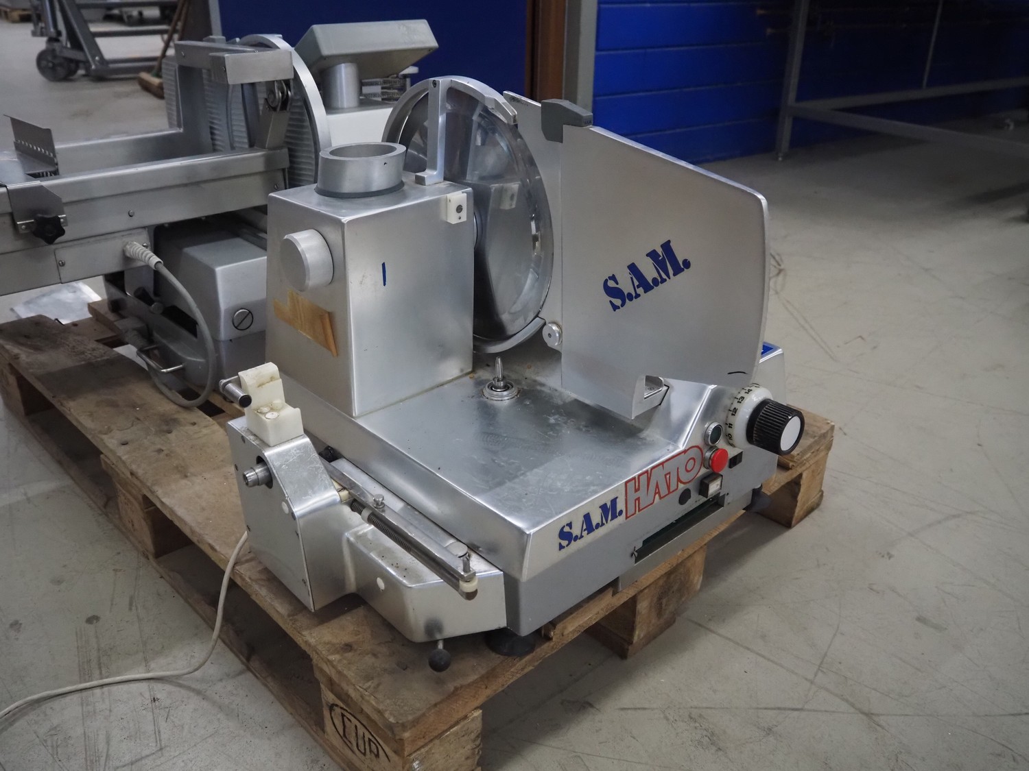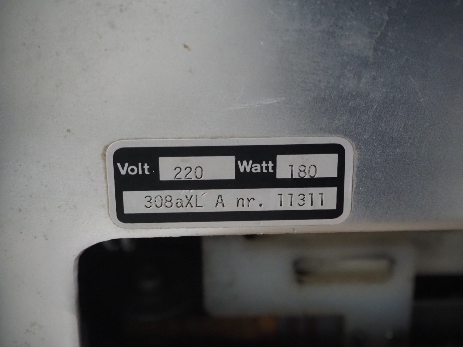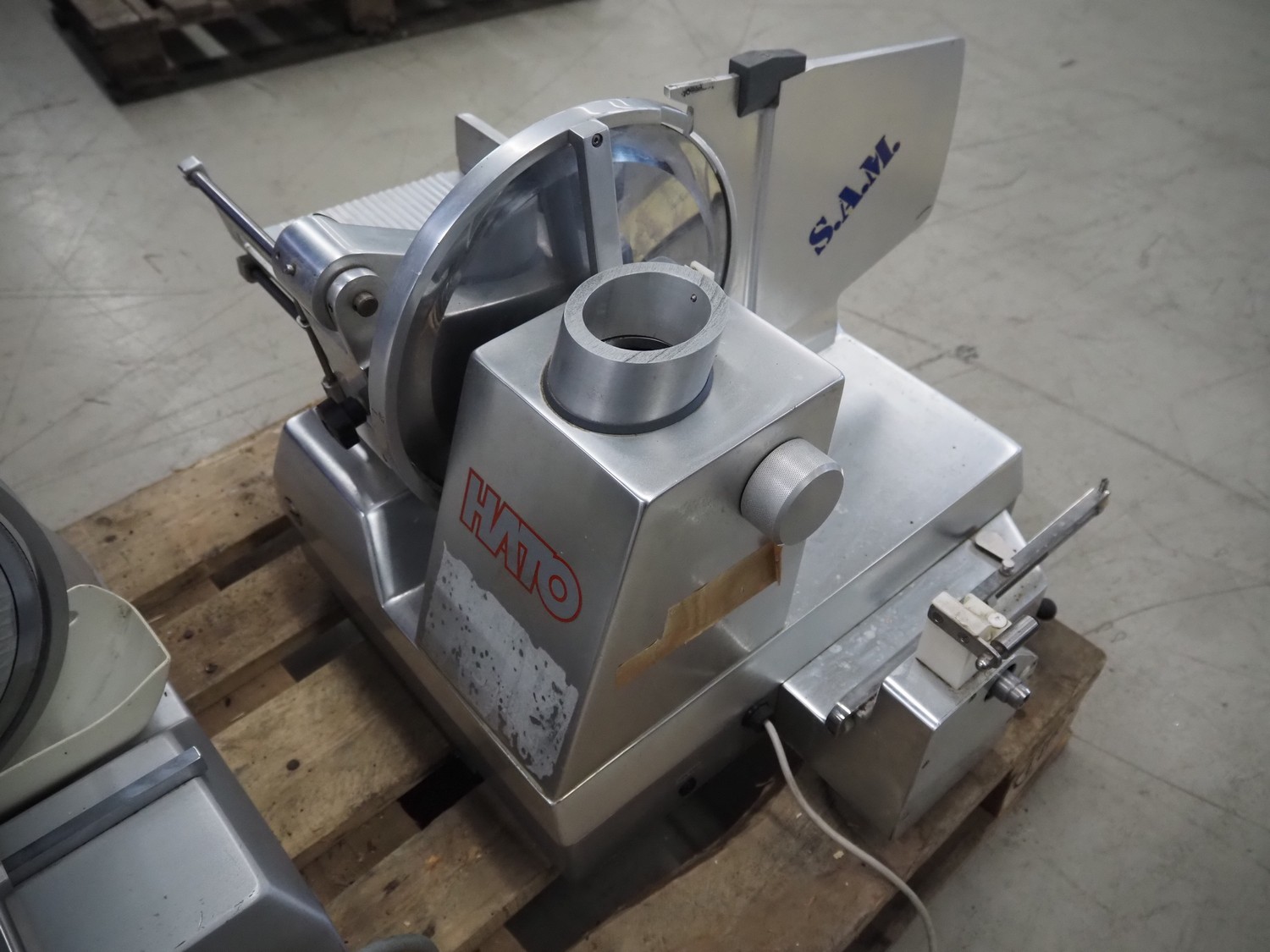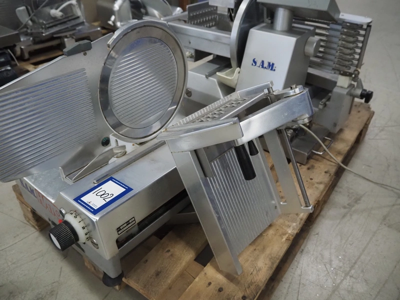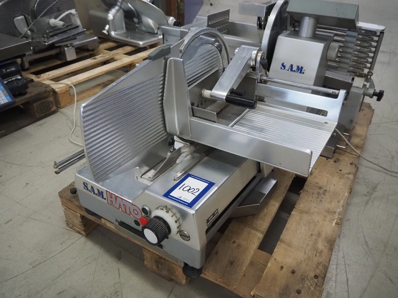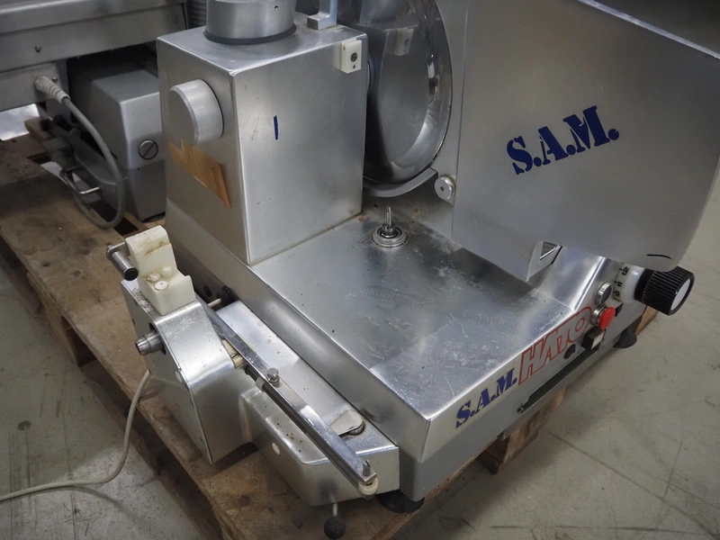 S.A.M. slicer, type: 308aXl A, number: 11311, 220 V, 180 Watt, dimensions: 710 mm x 600 mm x 500 mm. Incomplete.