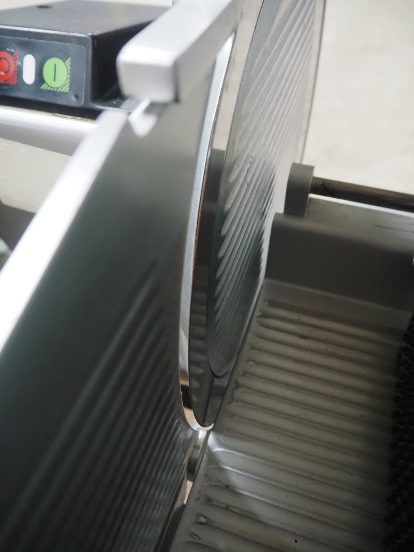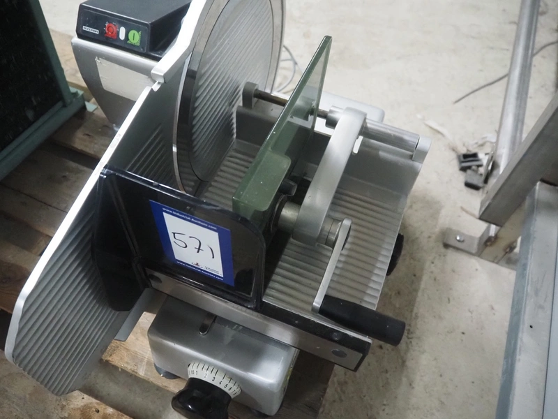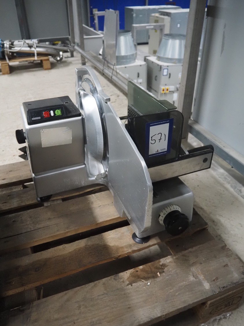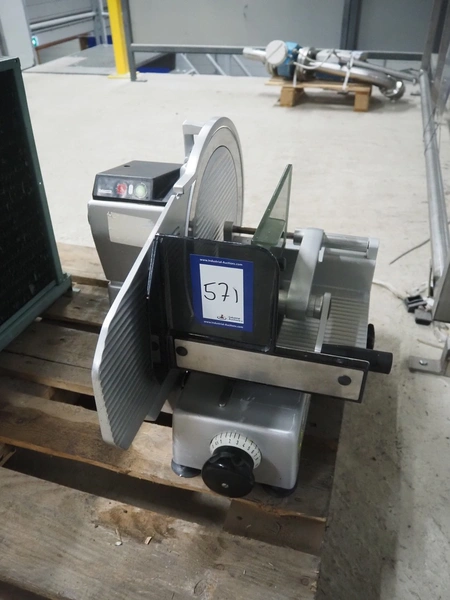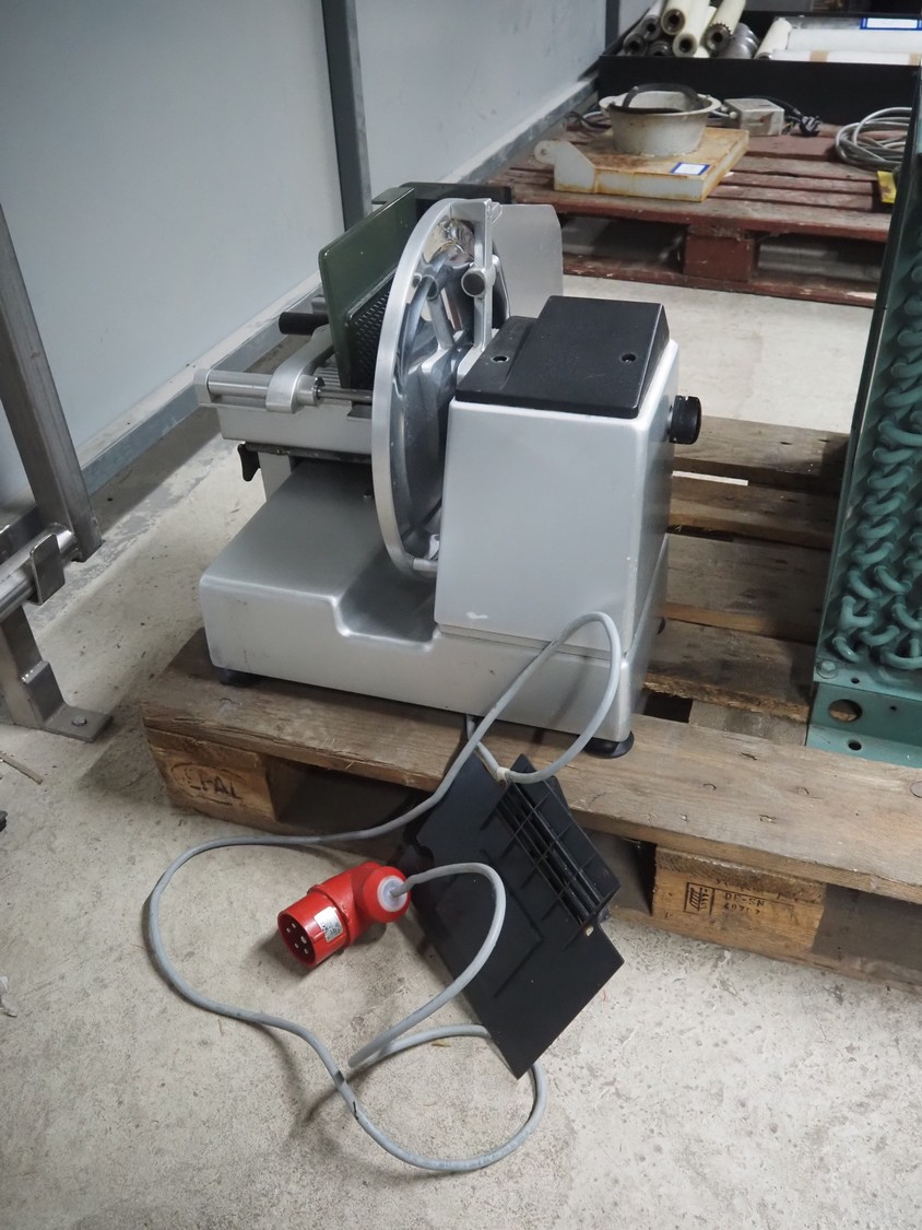 Bizerba slicer, type: VS 12 F, number: 11037893, year of construction: 2014, 230/400 V, 3 Ph, 50 Hz, 1.2/0.68 A, 0.270 kW, dimensions: 600 mm x 740 mm x 490 mm.