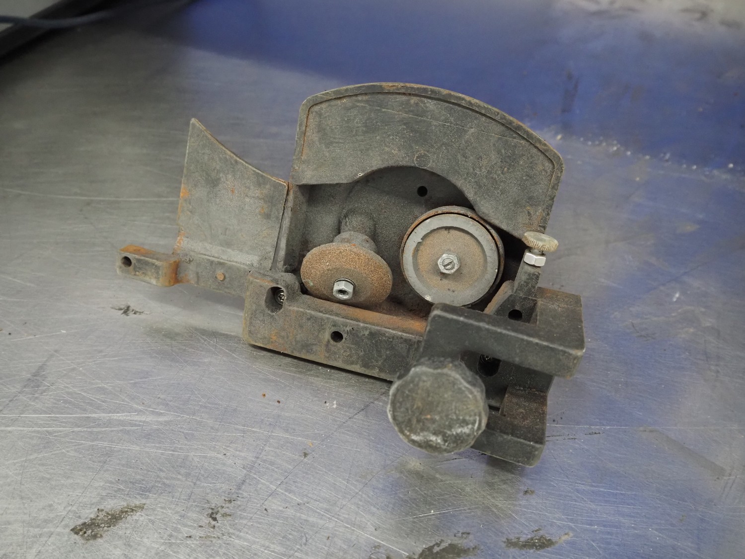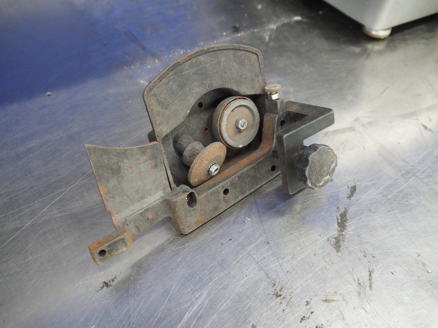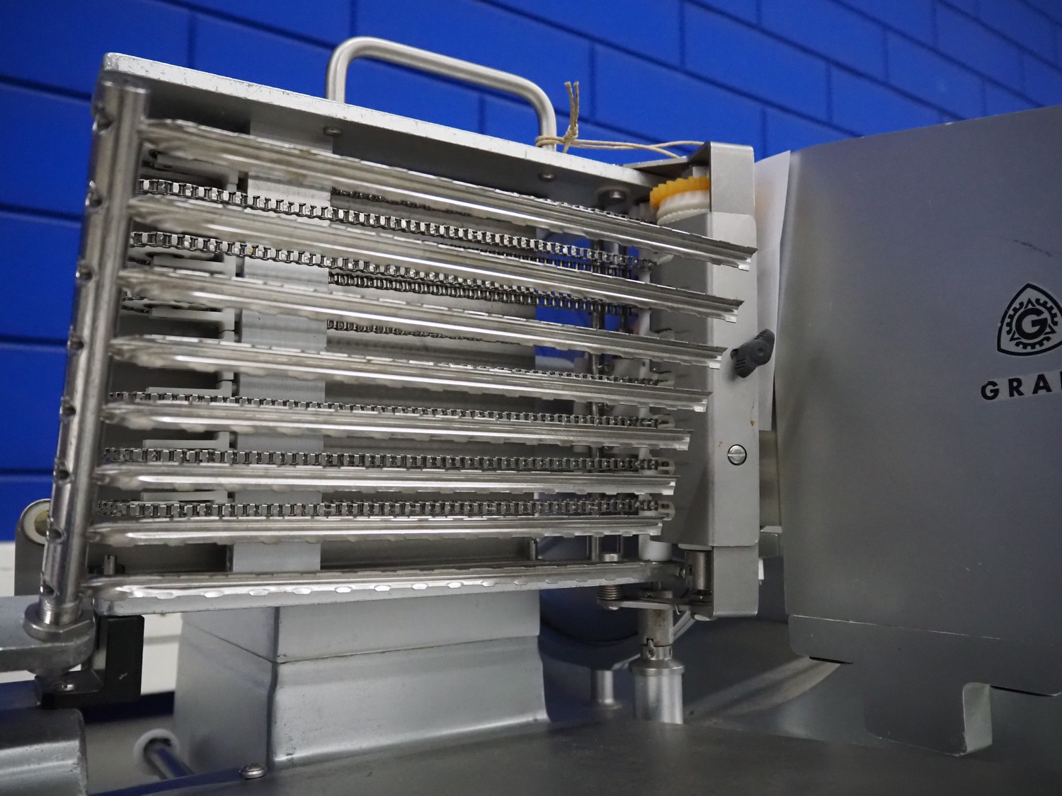 Graef GmbH & Co. KG automatic slicer, type: VA-806DE1, serial number: 6577997, year of construction: 2009, 400 V, 50 Hz, 2.4 A, 500 W, dimensions: 1320 mm x 670 mm x 500 mm. Including knife sharpener.