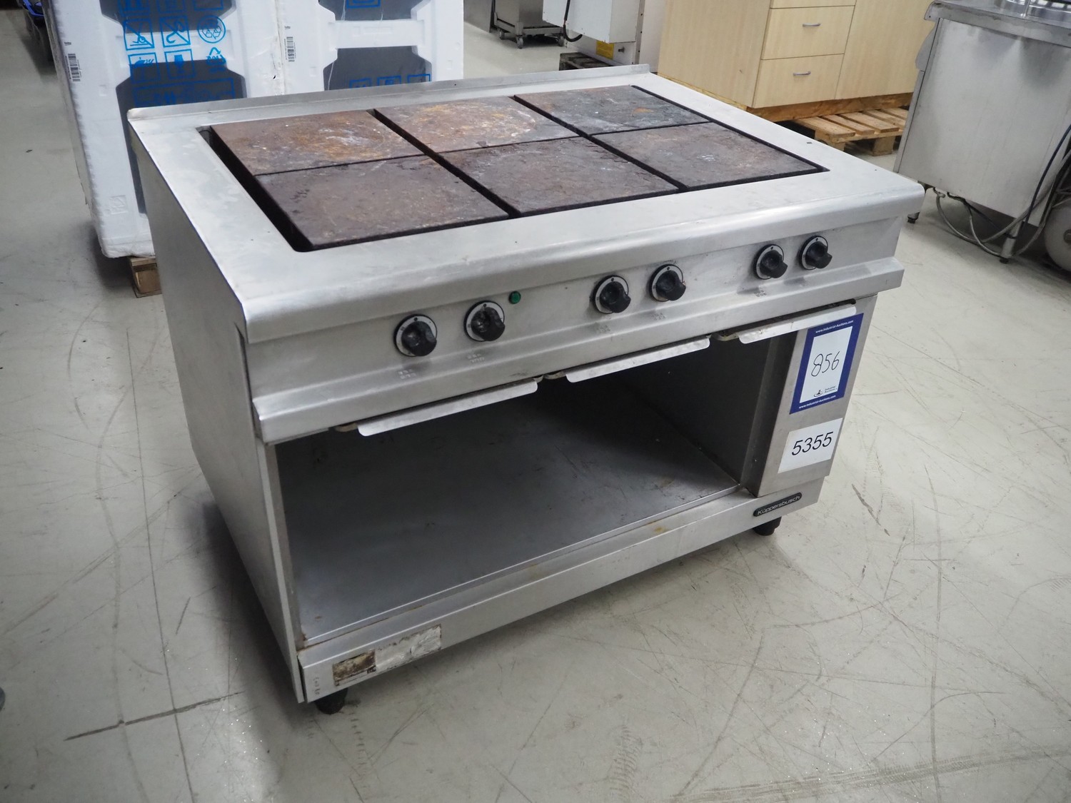 Küpperbusch 6 pits stove, type: KCN 007, 50 Hz, dimensions: 1200 mm x 860 mm x 870 mm.