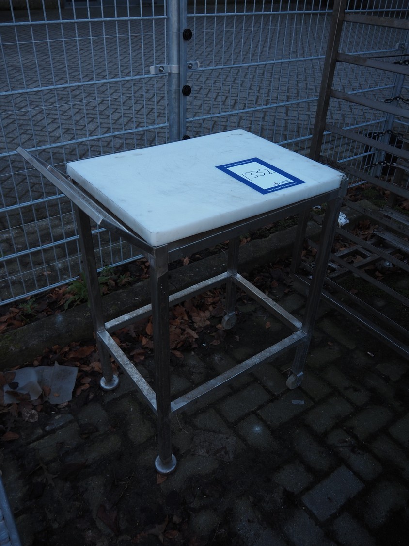 Mobile table, s/s frame with plastic top, dimensions: 730 mm x 440 mm x 940 mm.