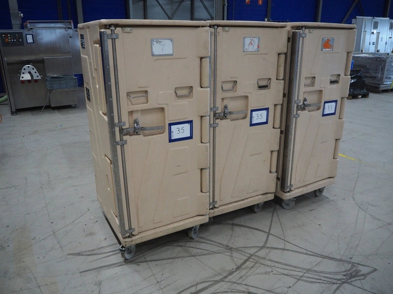 Monetti S.p.A. 3 mobile thermoboxes, model: Thermax 550, year of construction: 07/98, inside dimensions: (3x) 710 mm x 565 mm x 1300 mm, total dimensions: (3x) 850 mm x 750 mm x 1750 mm.