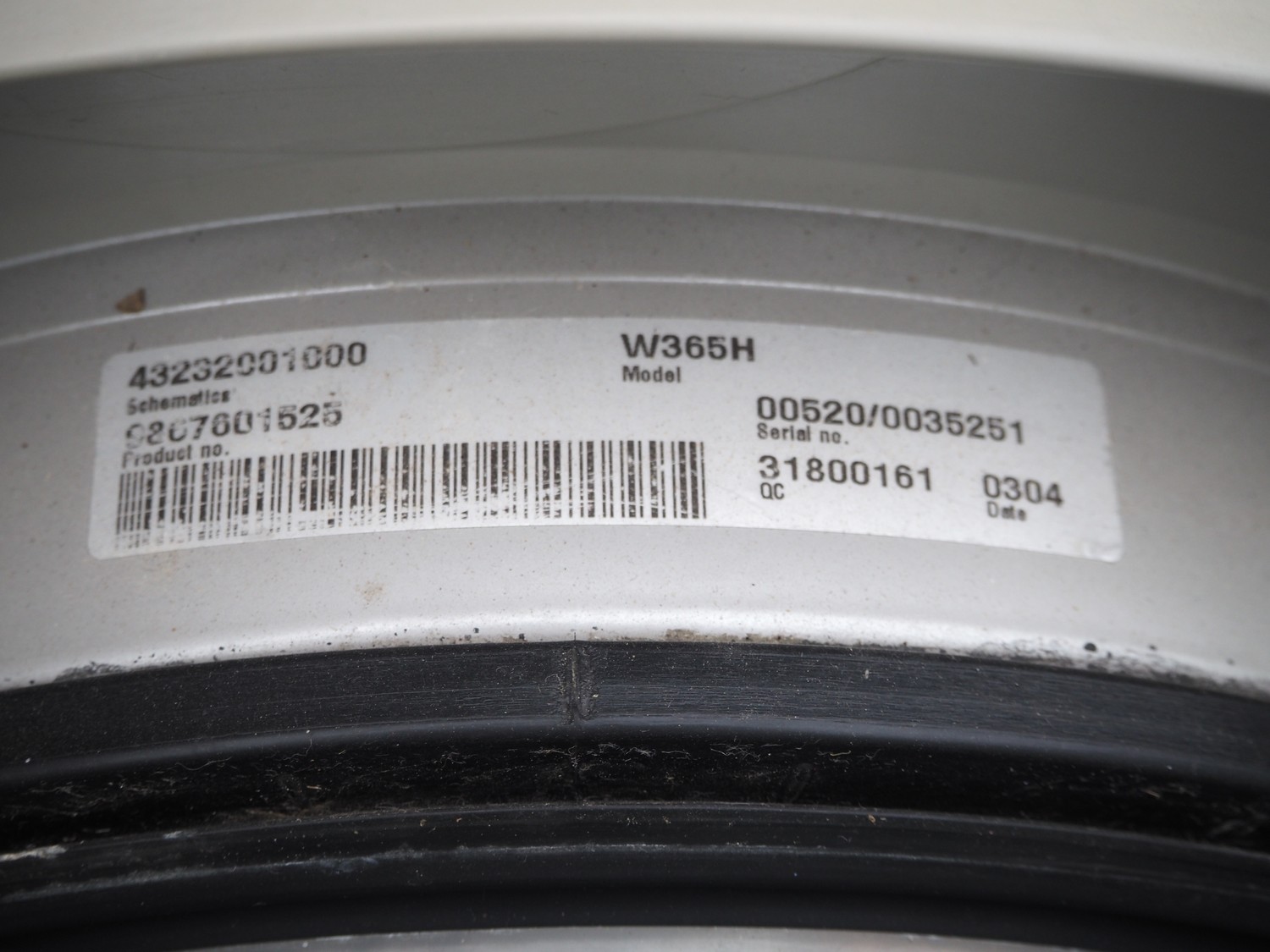 Electrolux washing machine, model: W365H, serial number: 00520/0035251, year of construction: 0304, dimensions: 700 mm x 720 mm x 1120 mm.
