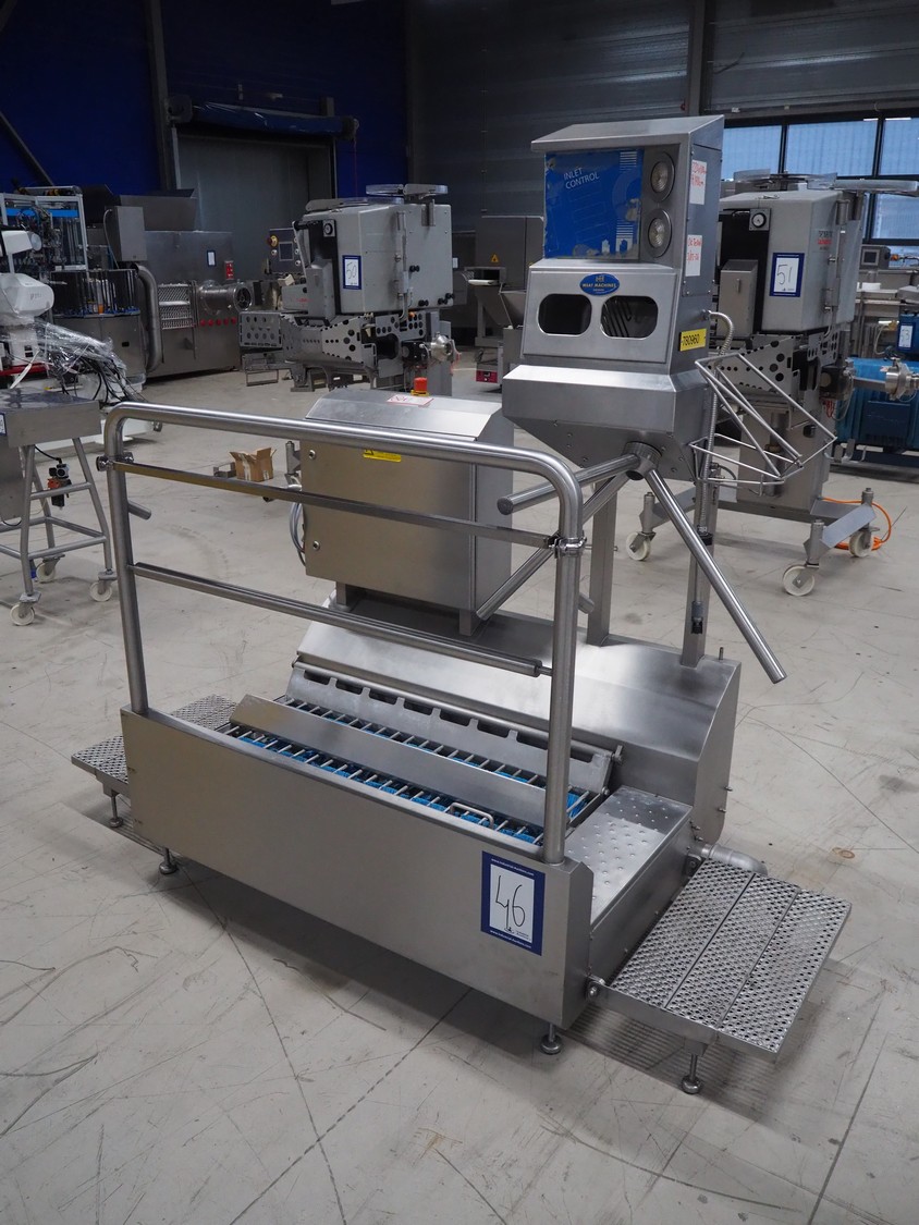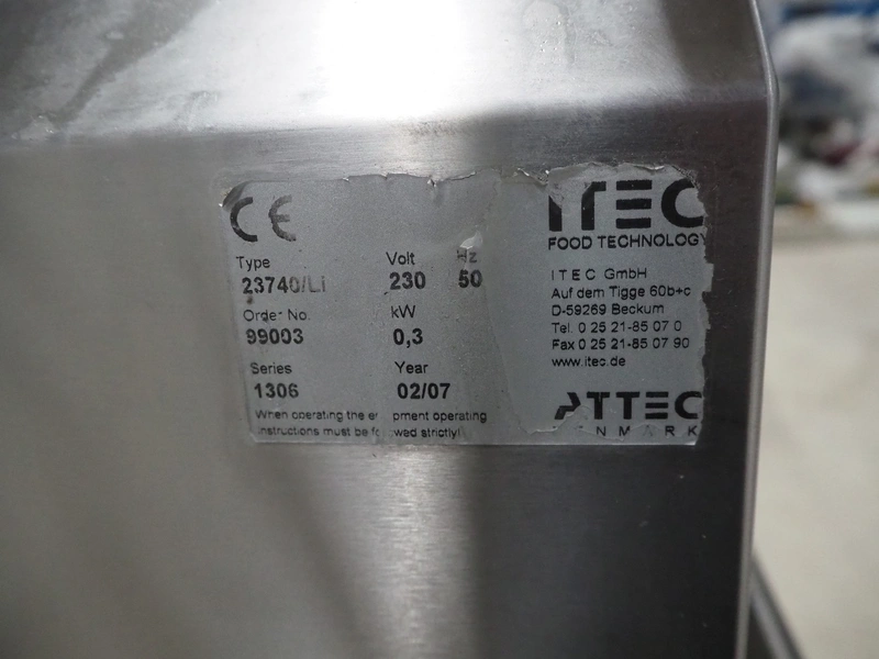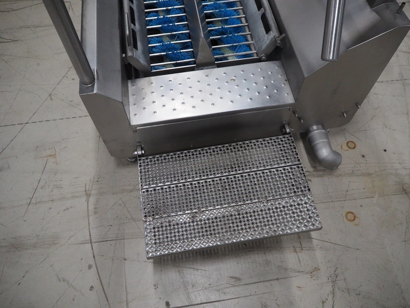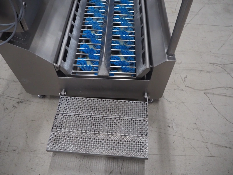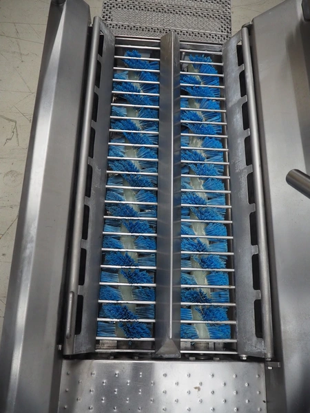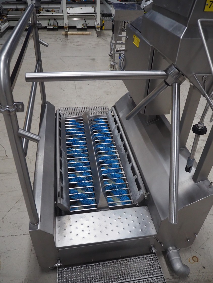 Itec Food Technology hygiene station with sole cleaner, hand disinfection unit and tourniquet, type: 23882, serial number: 0368, year of construction: 03/07, 400 V, 3 Ph, 50 Hz, 0.8 kW, brush length: (2x) 1000 mm, total dimensions: 2150 mm x 1000 mm x 1900 mm.