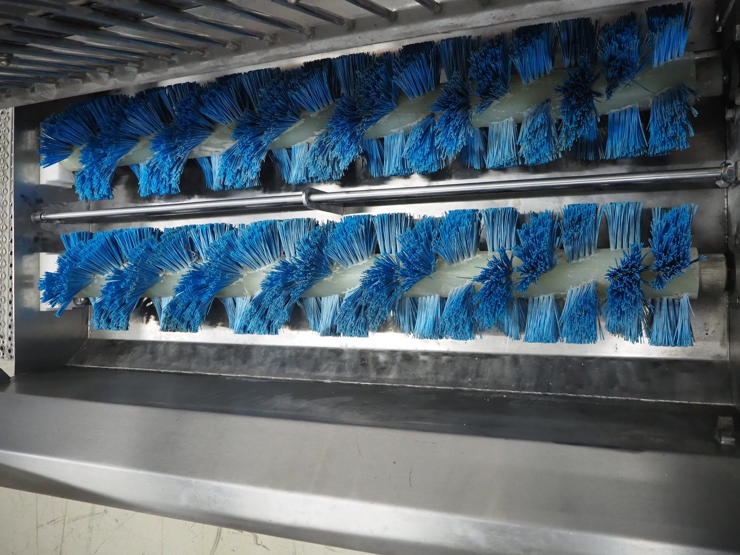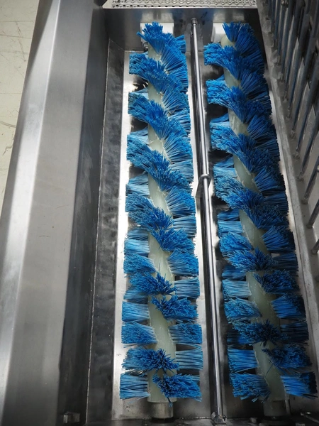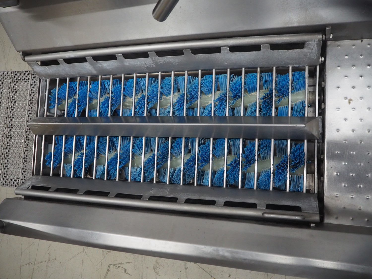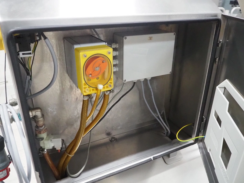 Itec Food Technology hygiene station with sole cleaner, hand disinfection unit and tourniquet, type: 23882, serial number: 0368, year of construction: 03/07, 400 V, 3 Ph, 50 Hz, 0.8 kW, brush length: (2x) 1000 mm, total dimensions: 2150 mm x 1000 mm x 1900 mm.