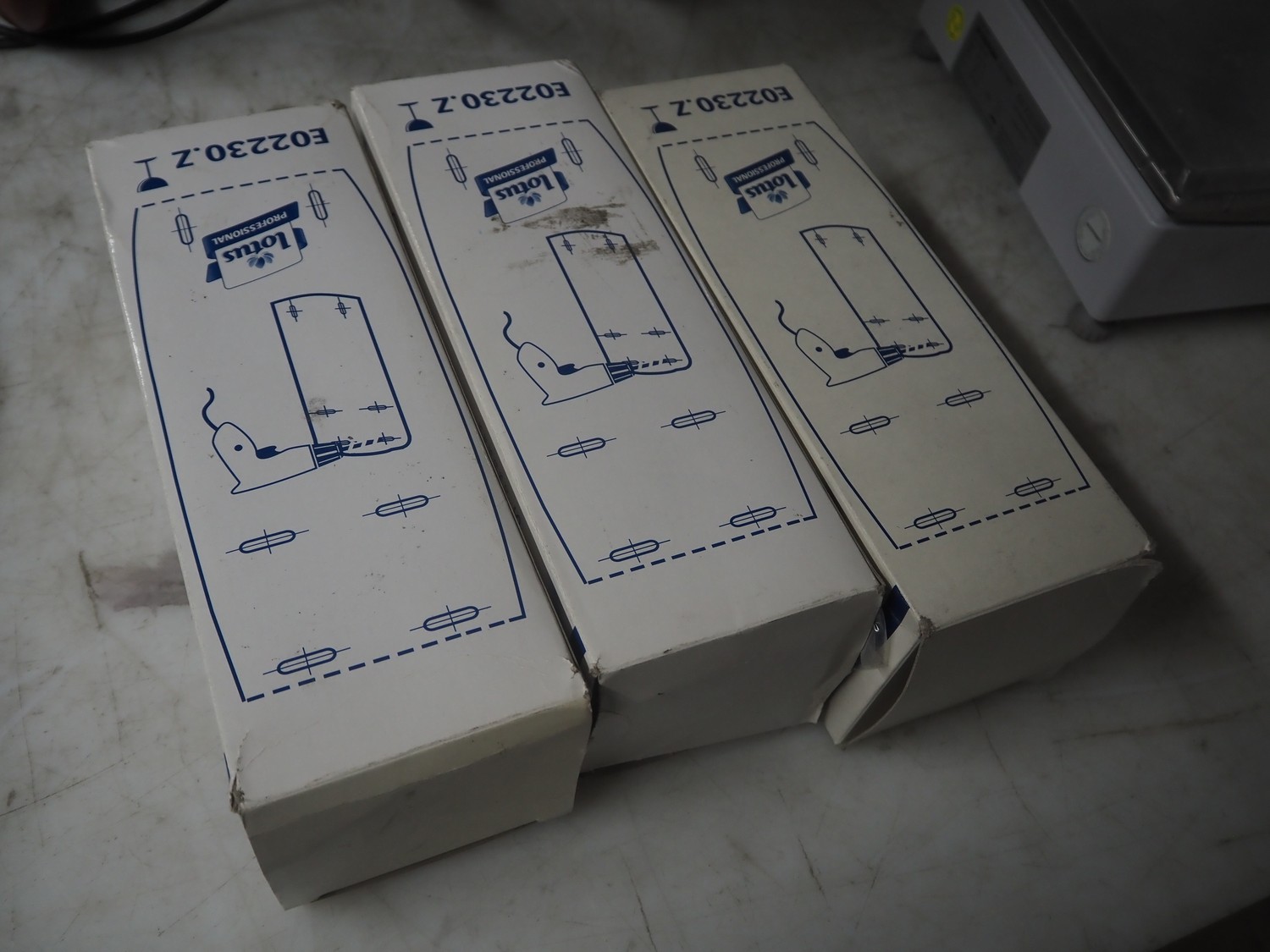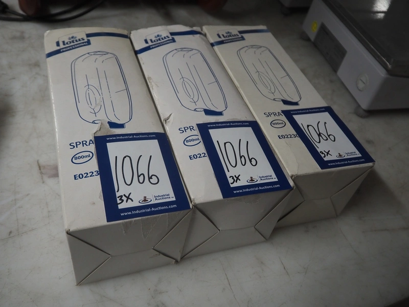 3 Lotus soap dispensers, dimensions: (3x) 110 mm x 110 mm x 300 mm.