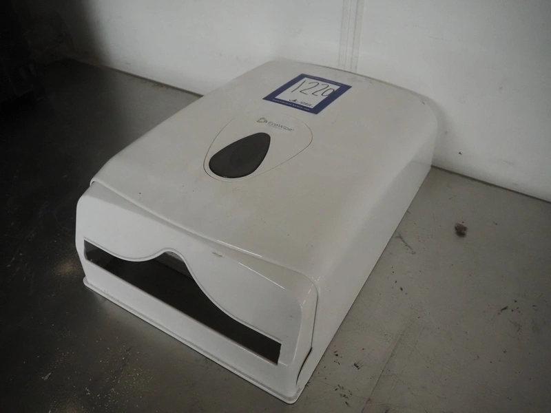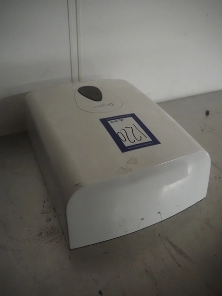 Pallet with hygiene equipment, among others: shoe covers, plastic bags and paper dispenser.
