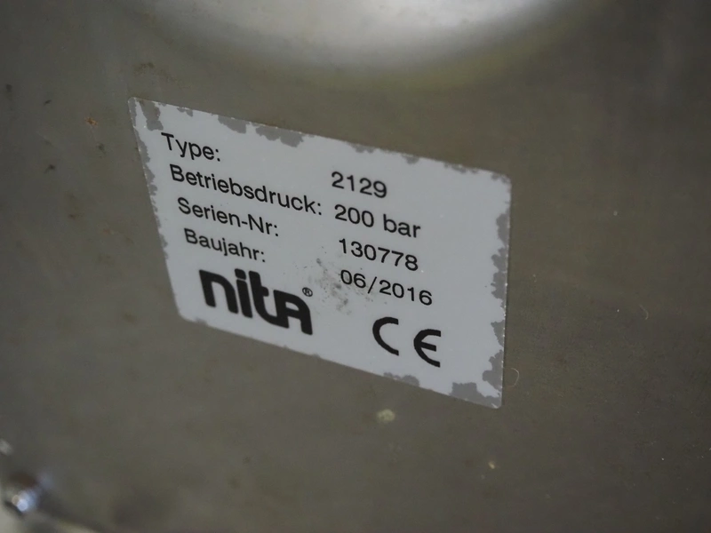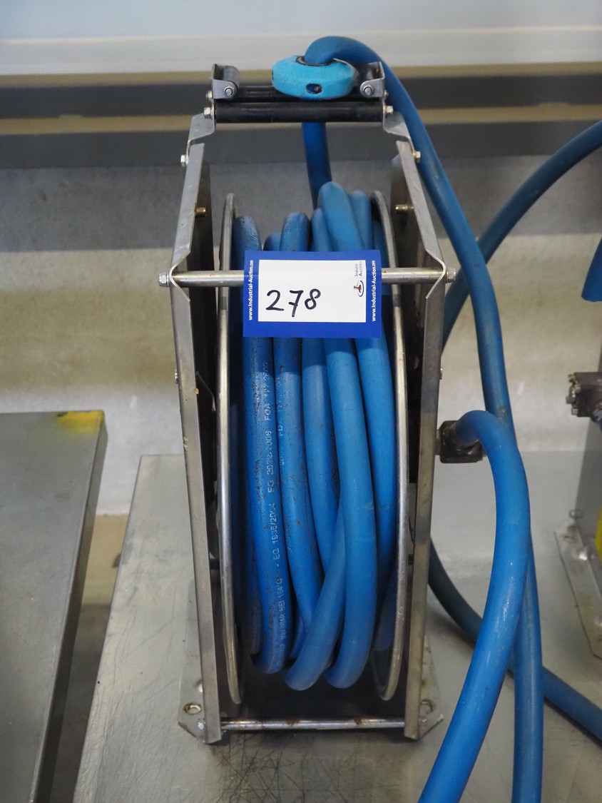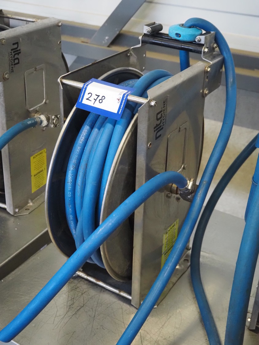 Nita Hygiene s/s hose reel with hose and pistol, type: 2129, year of construction: 2015, working pressure: 200 bar, dimensions: 550 mm x 220 mm x 460 mm.