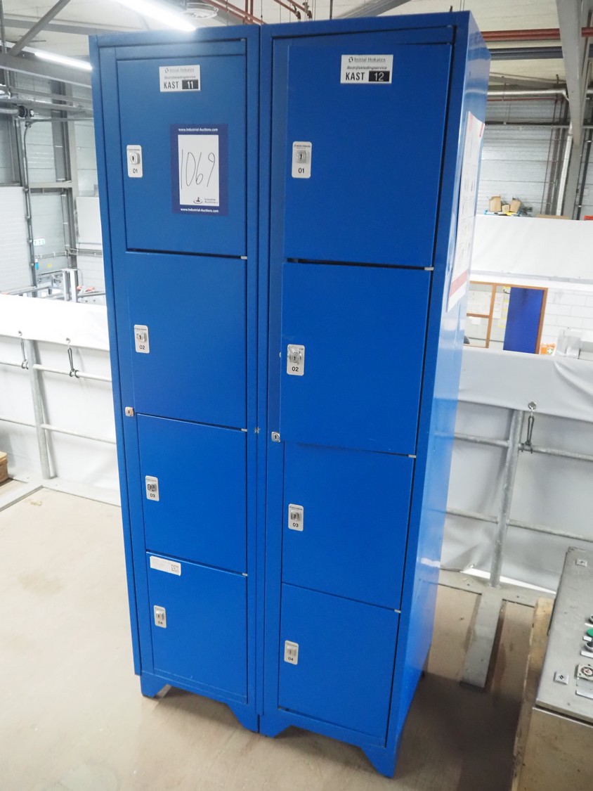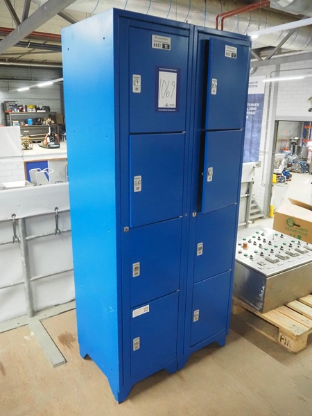 2 steel 4-door Initial Hokatex lockers, dimensions: (2x) 500 mm x 420 mm x 1900 mm. Without keys.