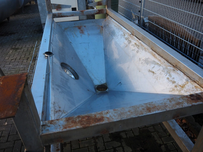 S/s infeed gutter, dimensions: 3700 mm x 1600 mm x 1480 mm.