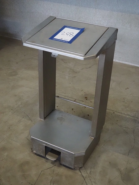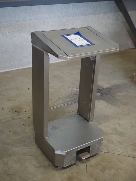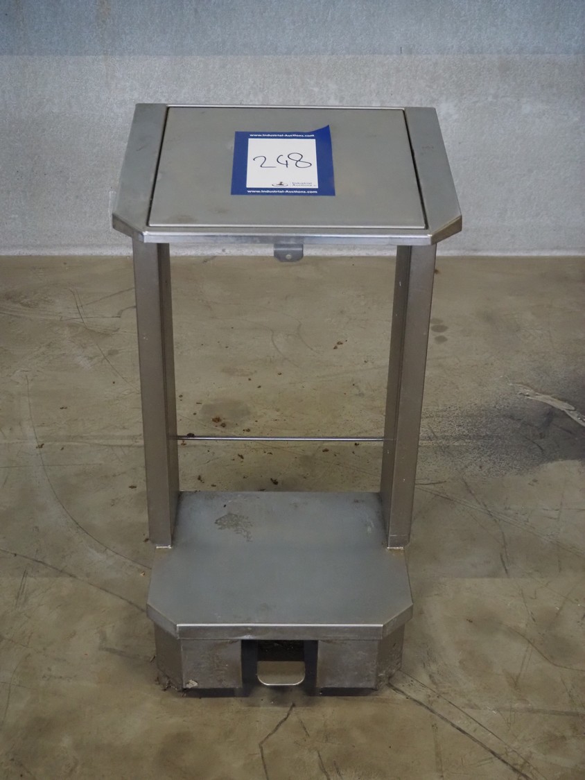 S/s waste bag holder with foot control, dimensions: 460 mm x 475 mm x 950 mm.