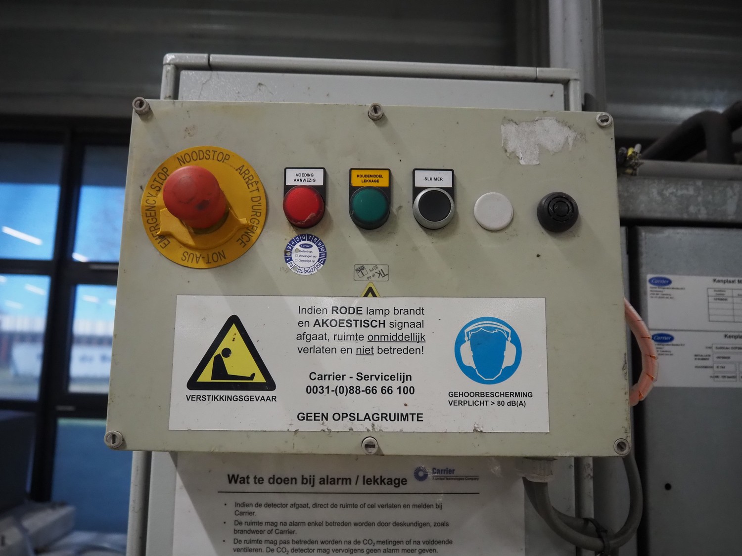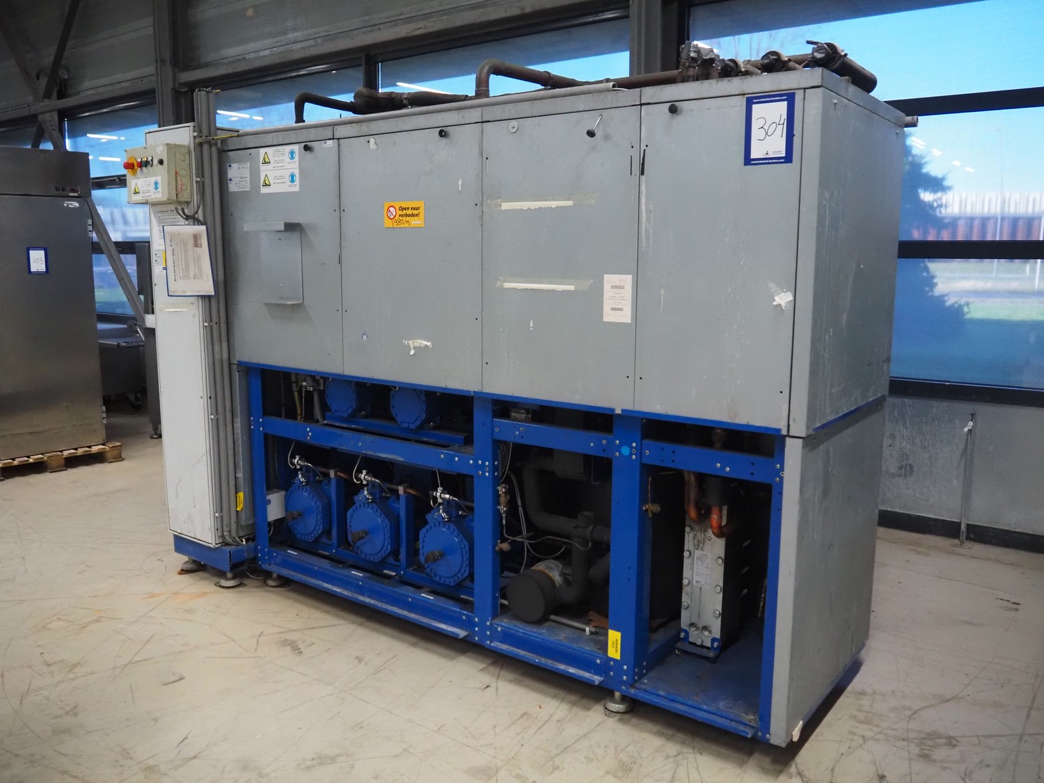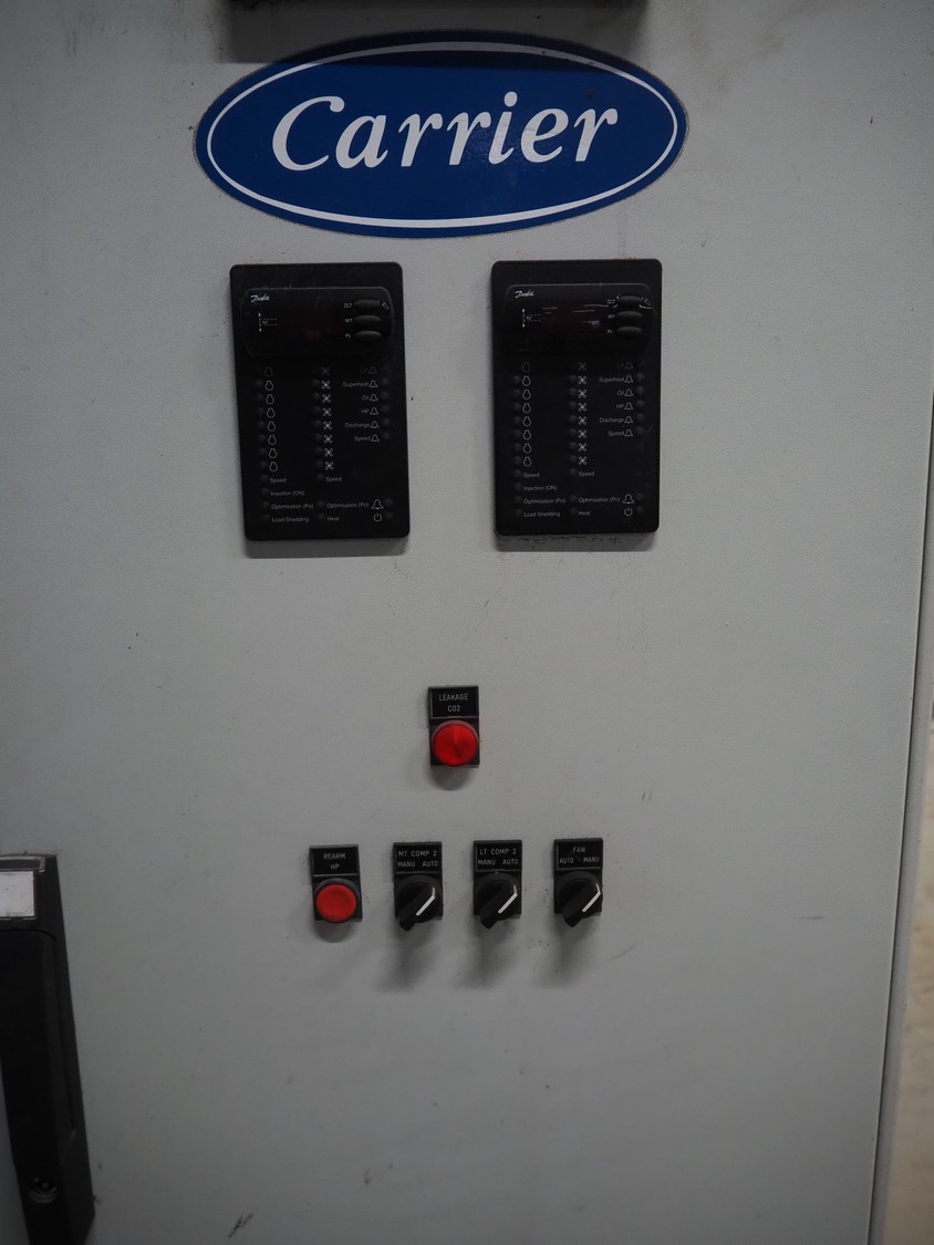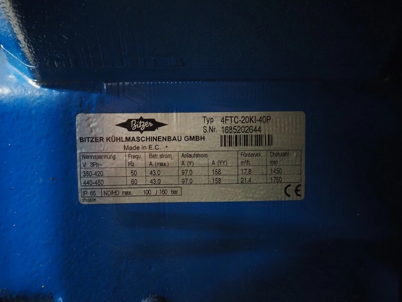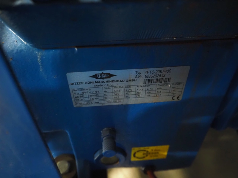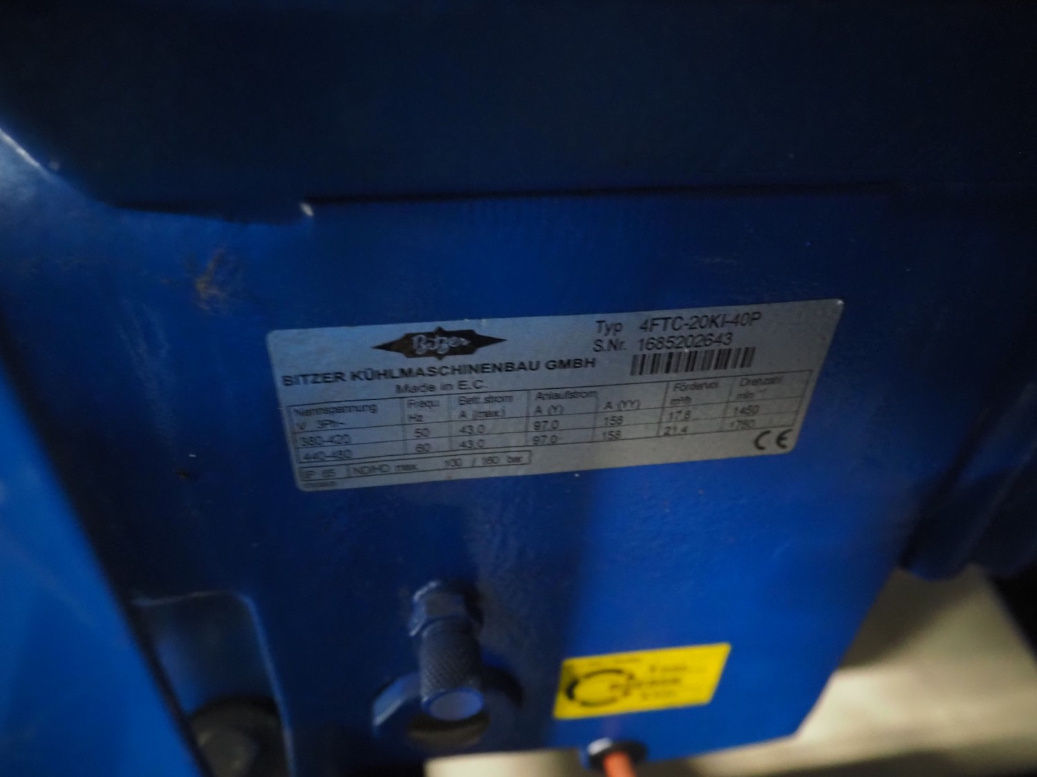 Bitzer Kühlmaschinenbau GmbH compressor rack in cabinet with 5 Bitzer Kühlmaschinenbau GmbH cooling compressors, type: (3x) 4FTC-20KC-40S, capacity: 17.8/21.5 m³ per hour and type: (2x) 4KHC-05KB-40S, capacity: 2.71/3.25 m³ per hour dimensions: 3200 mm x 1200 mm x 2400 mm.