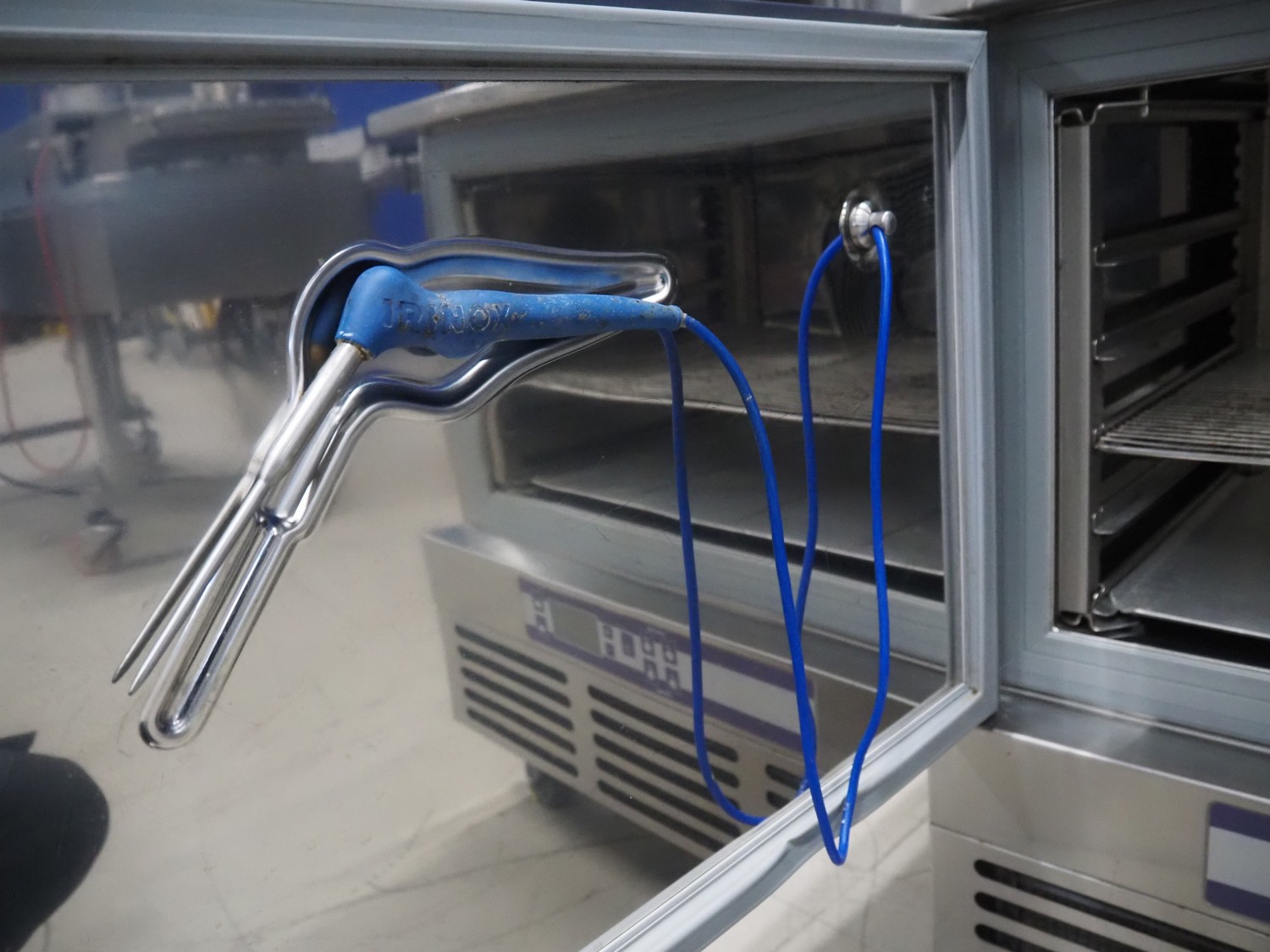 Irinox blast chiller, model: EF 20.1, serial number: 011200073, 230 V, 1 Ph, 50 Hz, 6.3 A, 1.2 kW, refrigerant: R 404 A, 1800 g, 5 floors, floor dimensions: (5x) 600 mm x 400 mm, total dimensions: 900 mm x 800 mm x 900 mm.