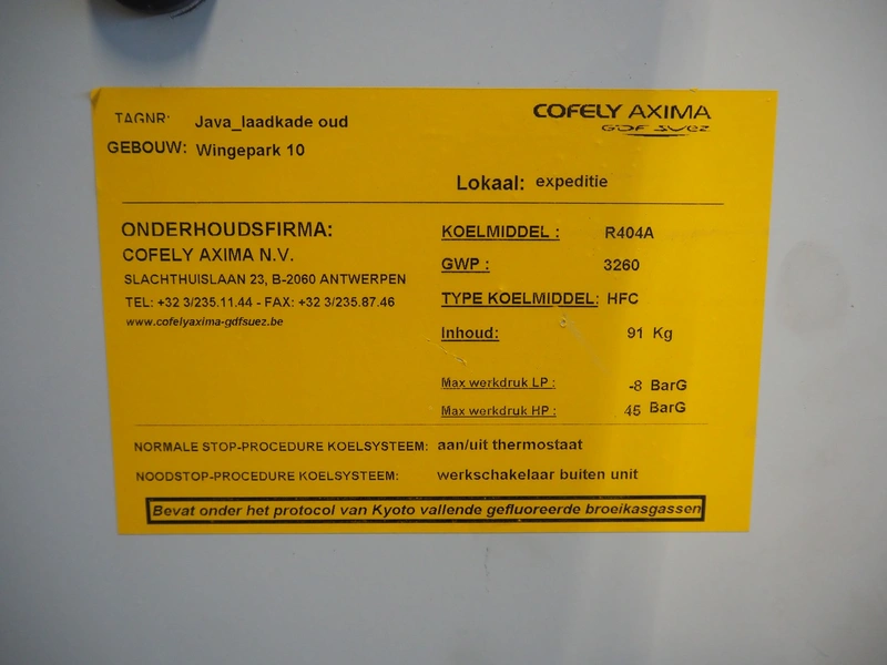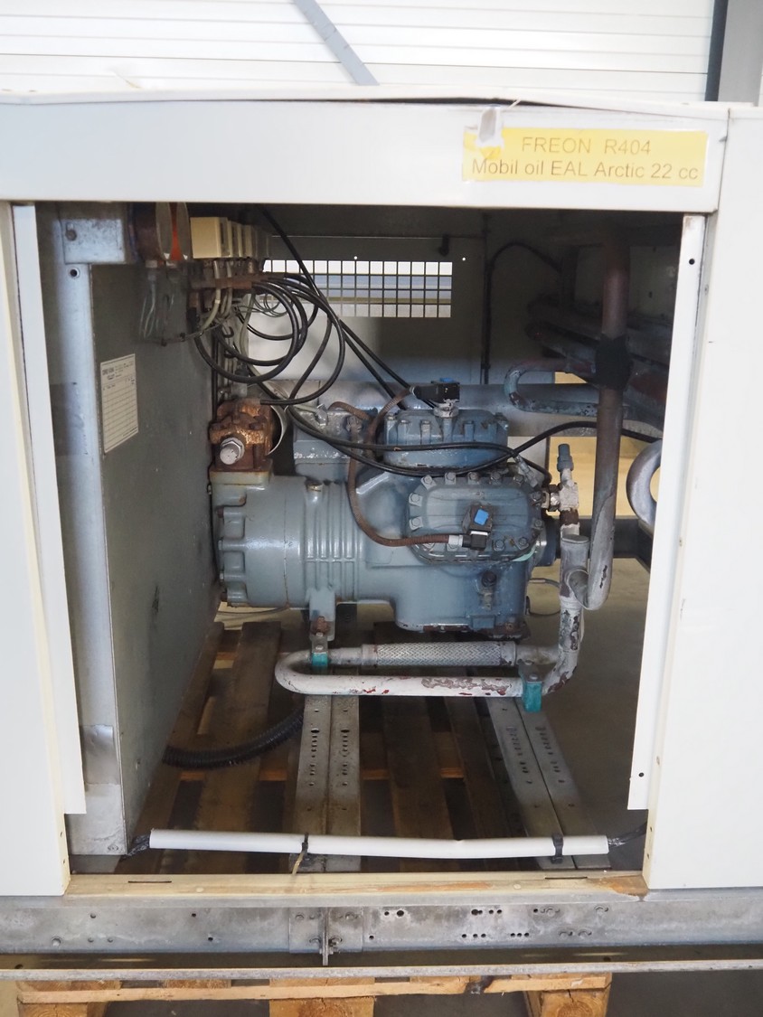Profroid condensing unit, with DMW Copeland 6 cylinder compressor, model: D4DH4-350X-EWM/D, serial number: 01A 11856, year of construction: 01 05, 380/420 V, / 440/480 V, 50/60 Hz, 1450 rpm, 106.3 m3/h, refrigerant: R404a, 4 fans, dimensions: 3100 mm x 1800 mm x 1250 mm.