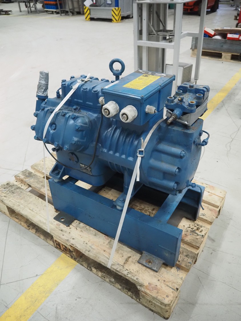 Frascold S.P.A. cooling compressor, type: Z 40 126 Y, number: 3E000261, 50/60 Hz, 3 Ph, capacity: 125.72 / 150.86 m³ per hour, total dimensions: 830 mm x 480 mm x 810 mm.
