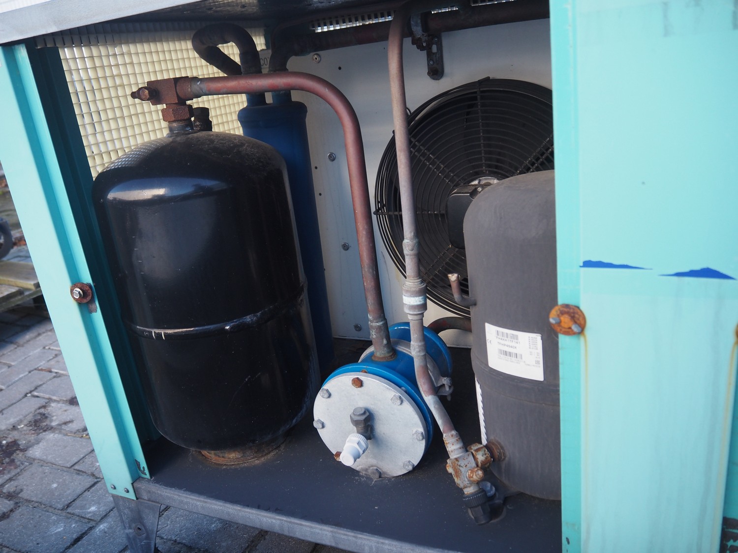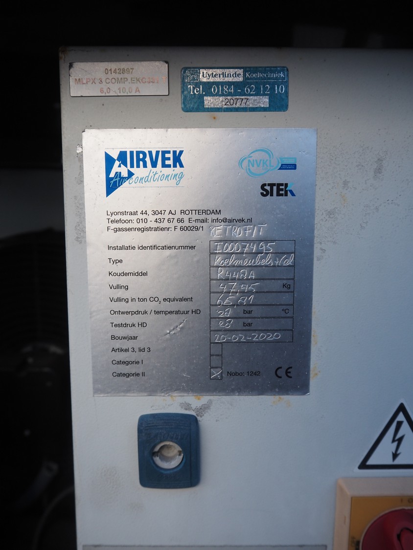 Cabinet with 3 Tecumseh cooling compressors, model: TFHP4540X, refrigerant: R507, dimensions: 2400 mm x 750 mm x 800 mm.