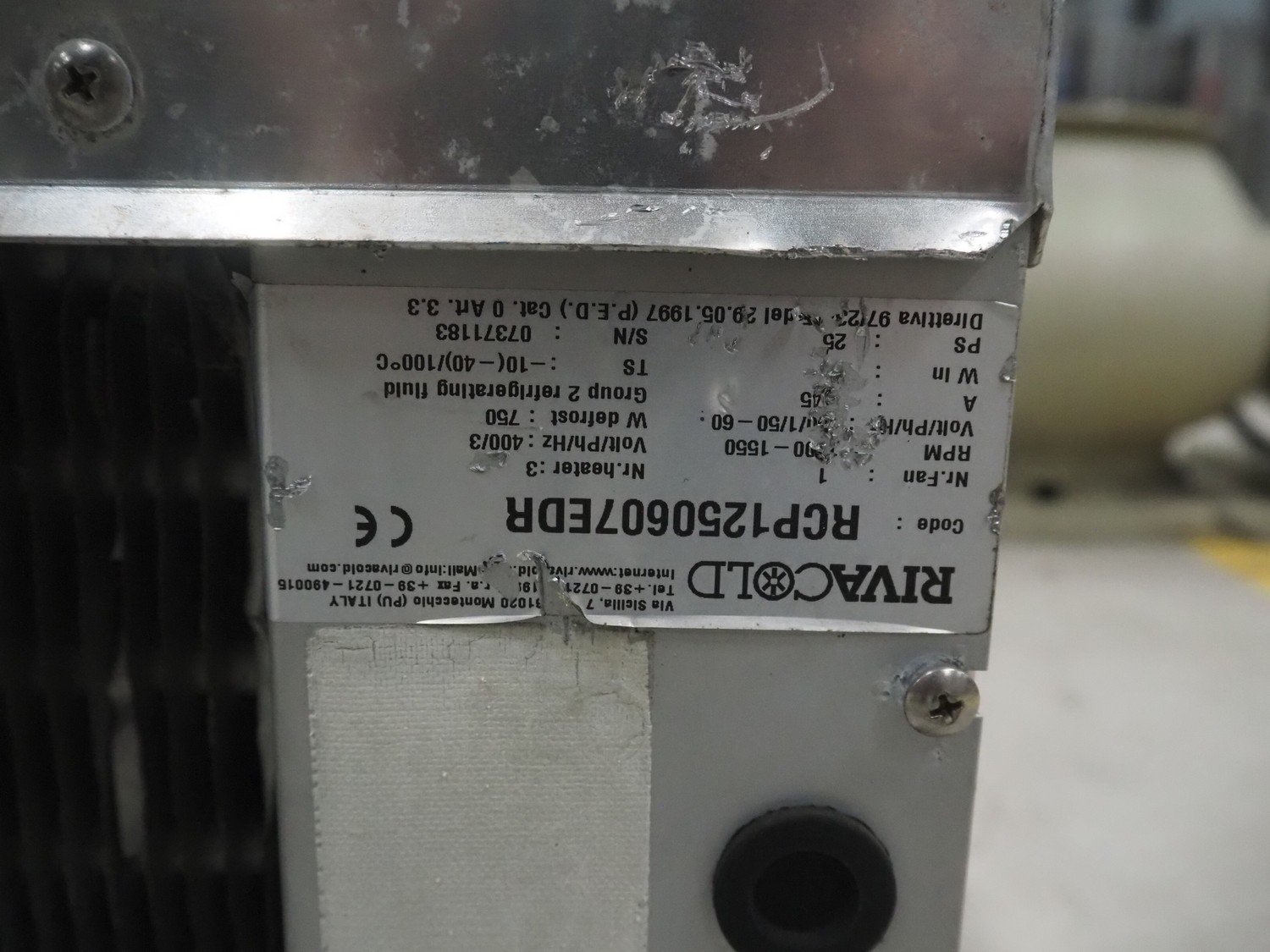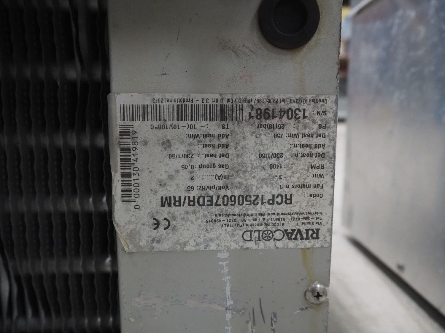 2 Rivacold evaporator, 1 fan, model: RCP 1250607EDR/RM, dimensions: 570 mm x 460 mm x 360 mm.