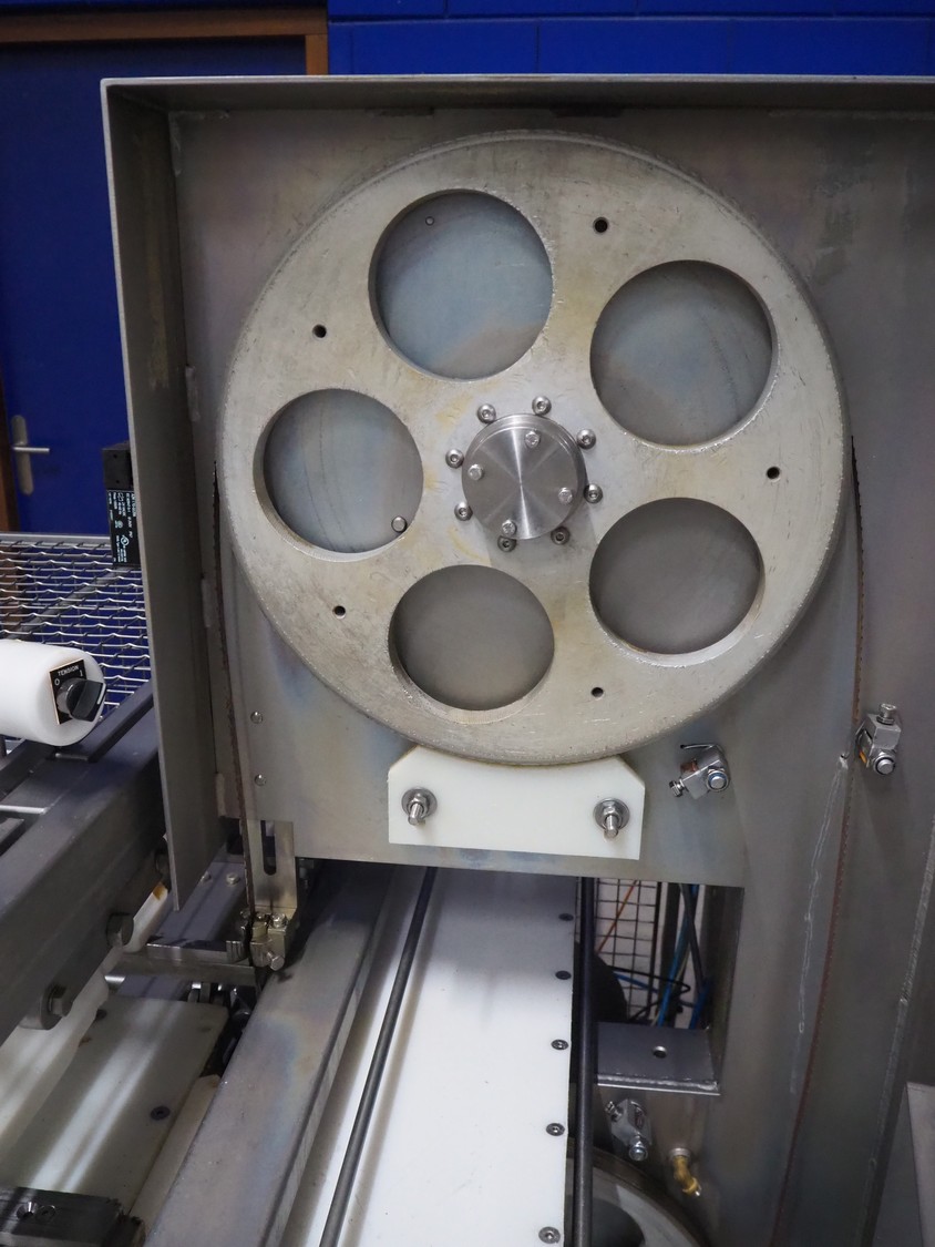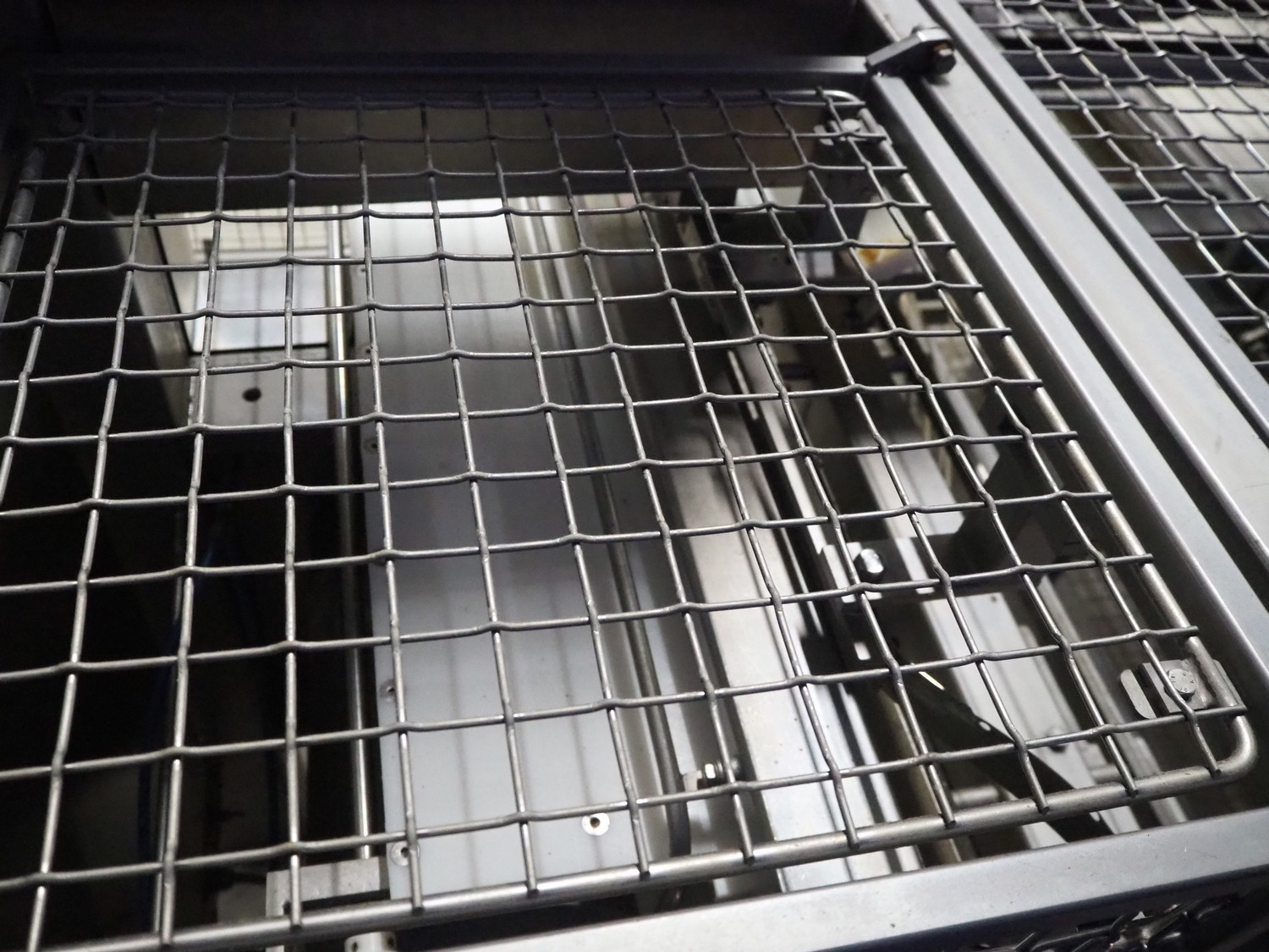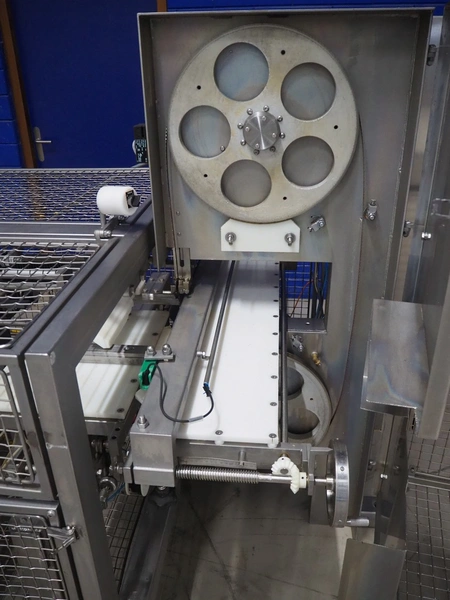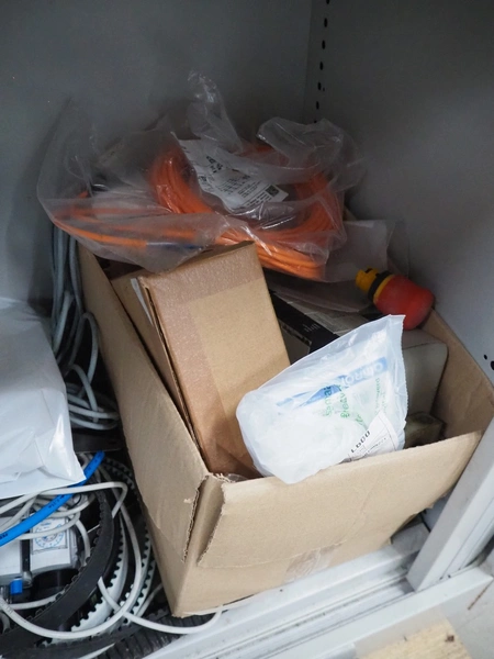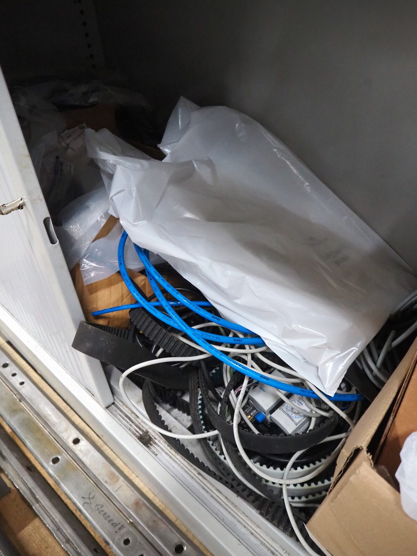 Norfo A/S automatic slicer for fish, type: 885.45.207, year of construction: 2003, 400 V, 3 Ph, 50 Hz, 25/32 A, 6.5 kW, plastic belts, belt width: 250 mm, total dimensions: 3600 mm x 2500 mm x 1600 mm. Including mobile infeed belt, number: 885.43.605, plastic belts, belt width: 380 mm, total dimensions: 2100 mm x 800 mm x 1400 mm. Slicer is missing belts. Including cabinet with parts.