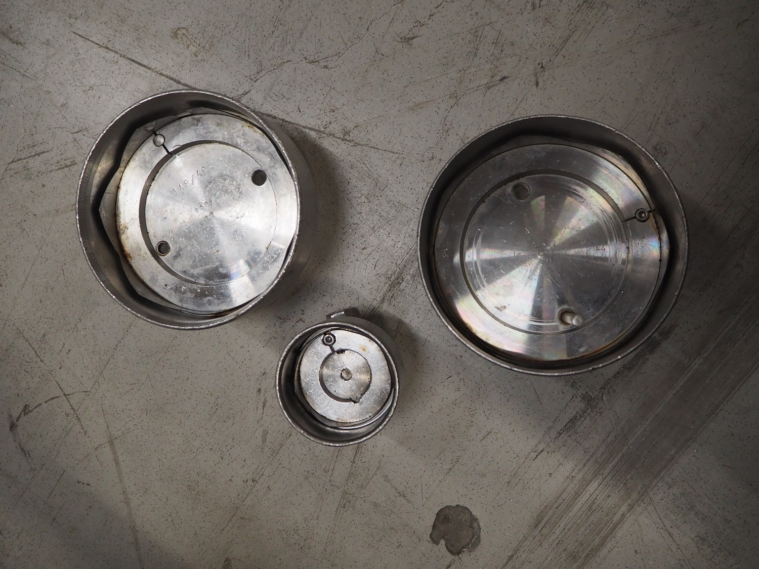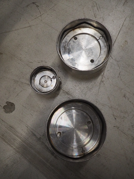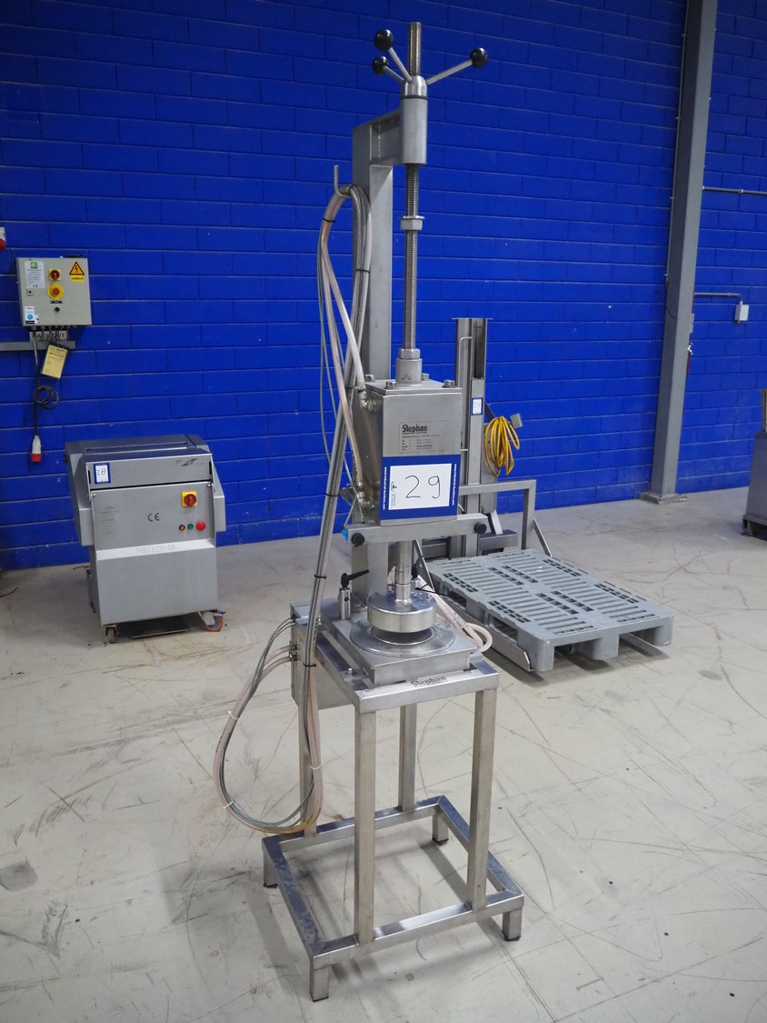 Stephan can opener, working diameter: 160 mm, total dimensions: 800 mm x 600 mm x 2250 mm. Including 3 extra openers, diameter: 155 mm, 148 mm and 69 mm.