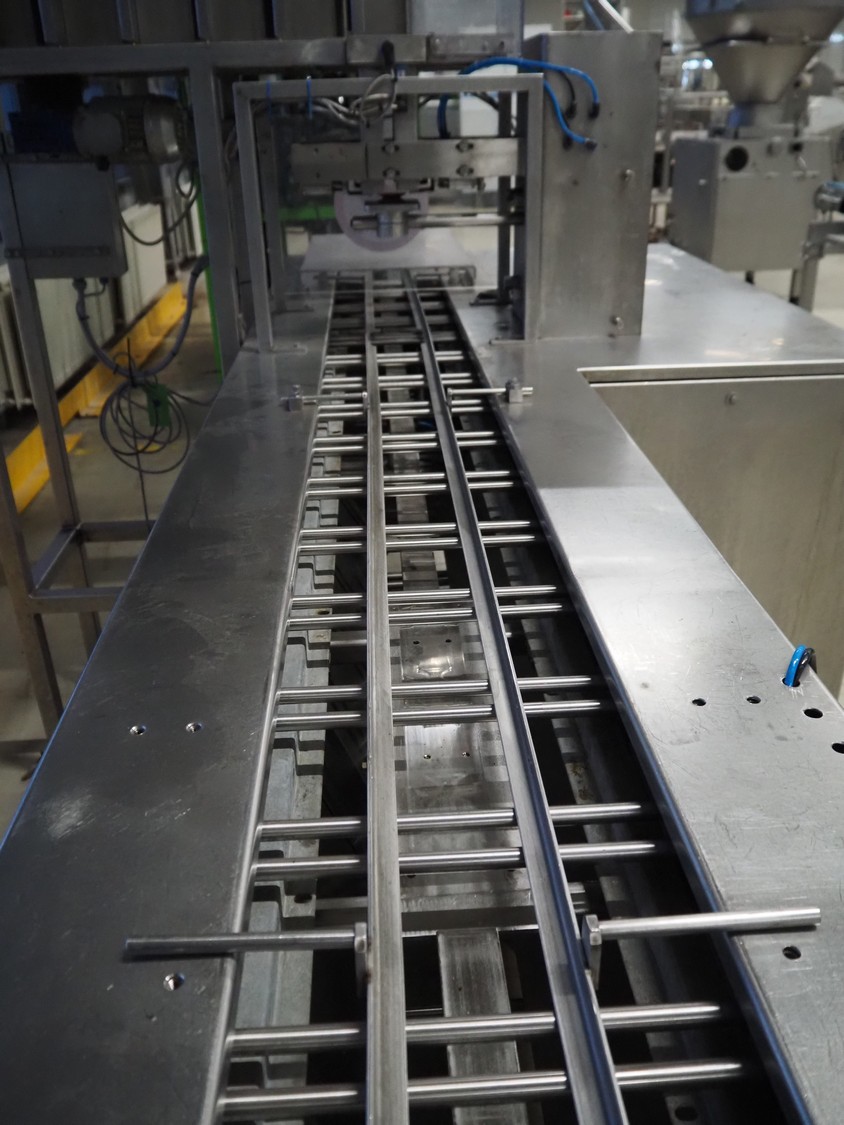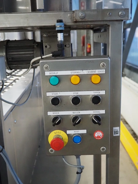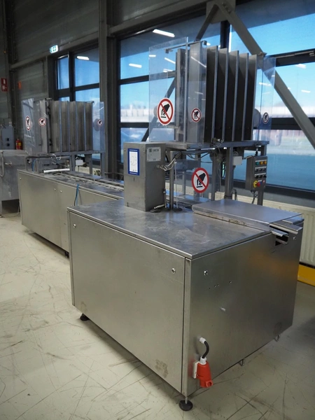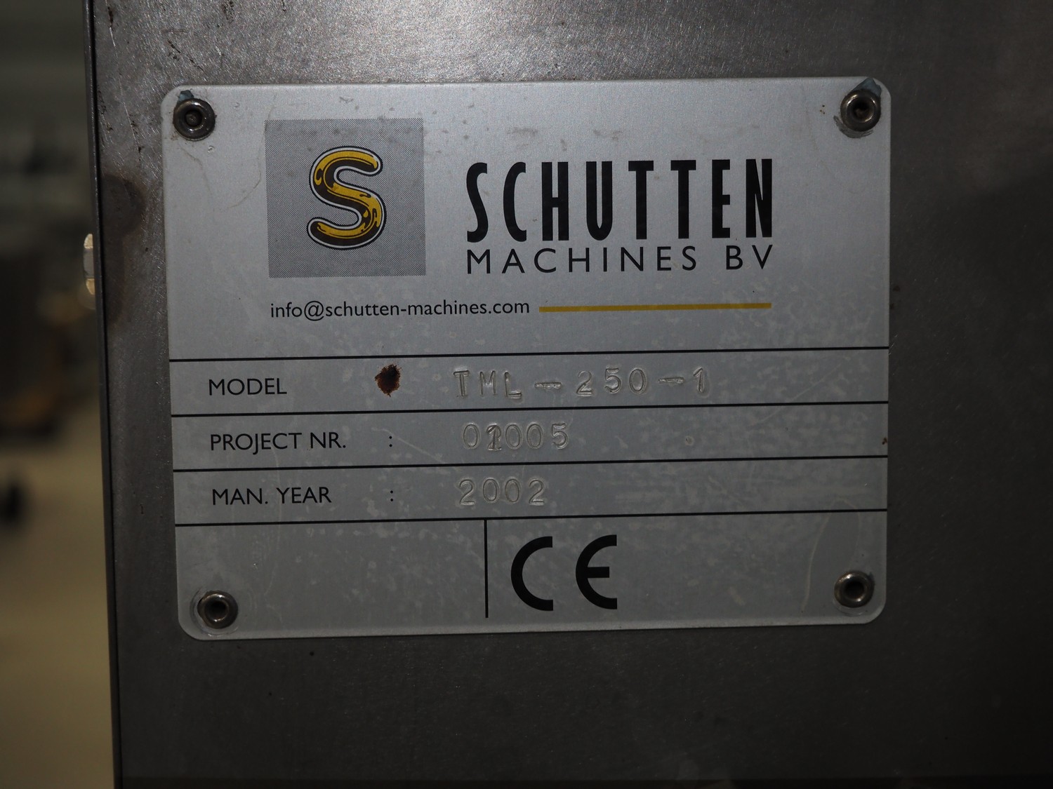 Schutten Machines BV water cup filling and closing machine, model: TML-250-1 number: 01005, year of construction: 2002, diameter cups: 75 mm, total dimensions: 4160 mm x 1690 mm x 2210 mm.