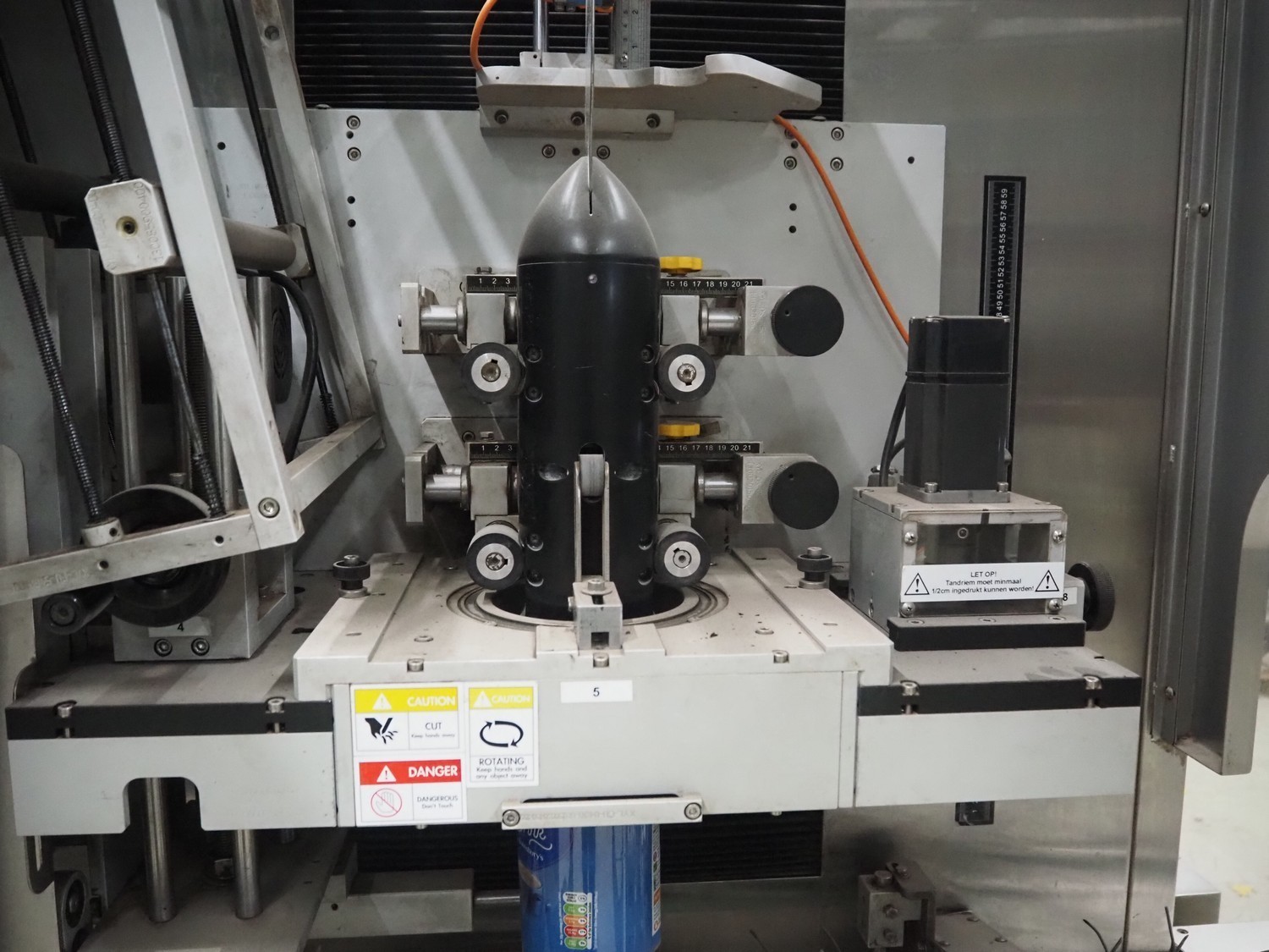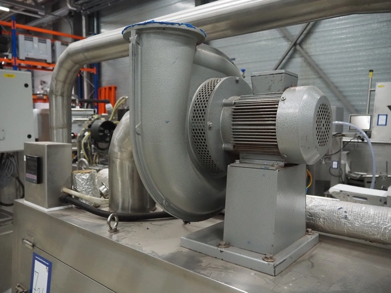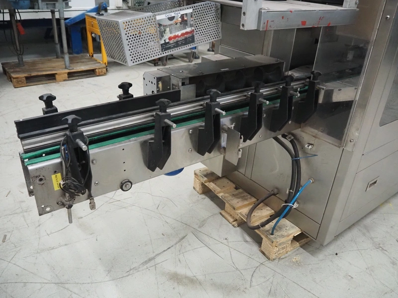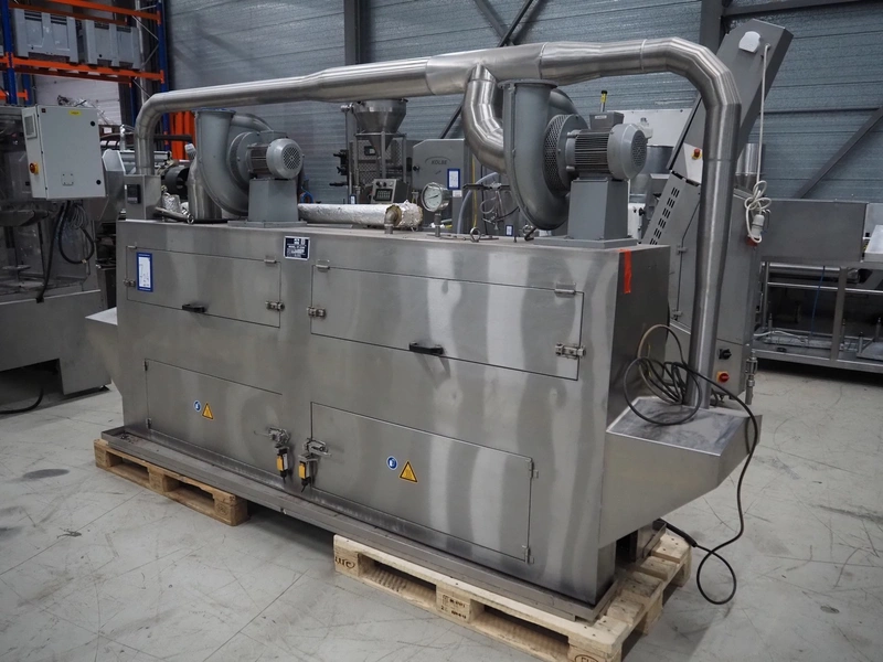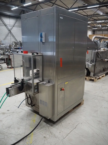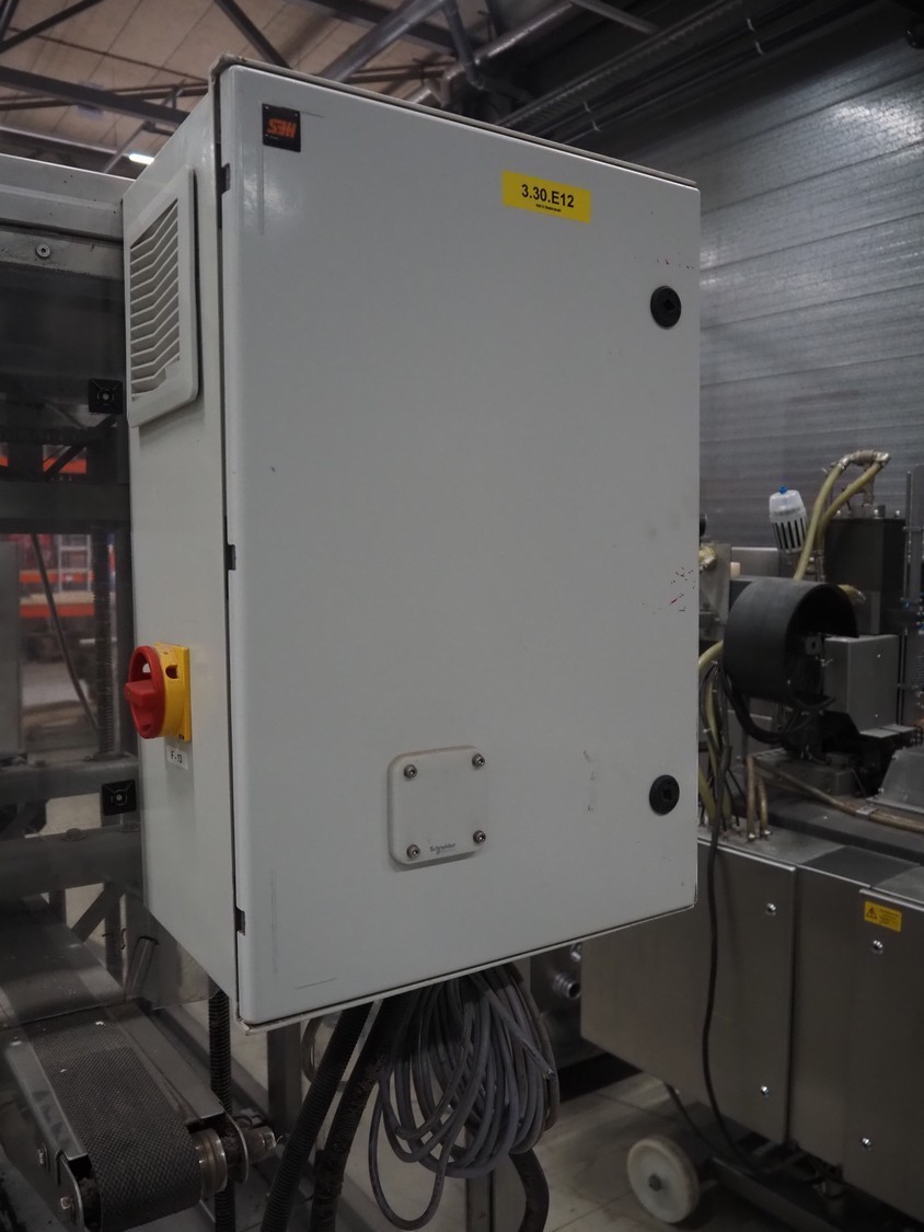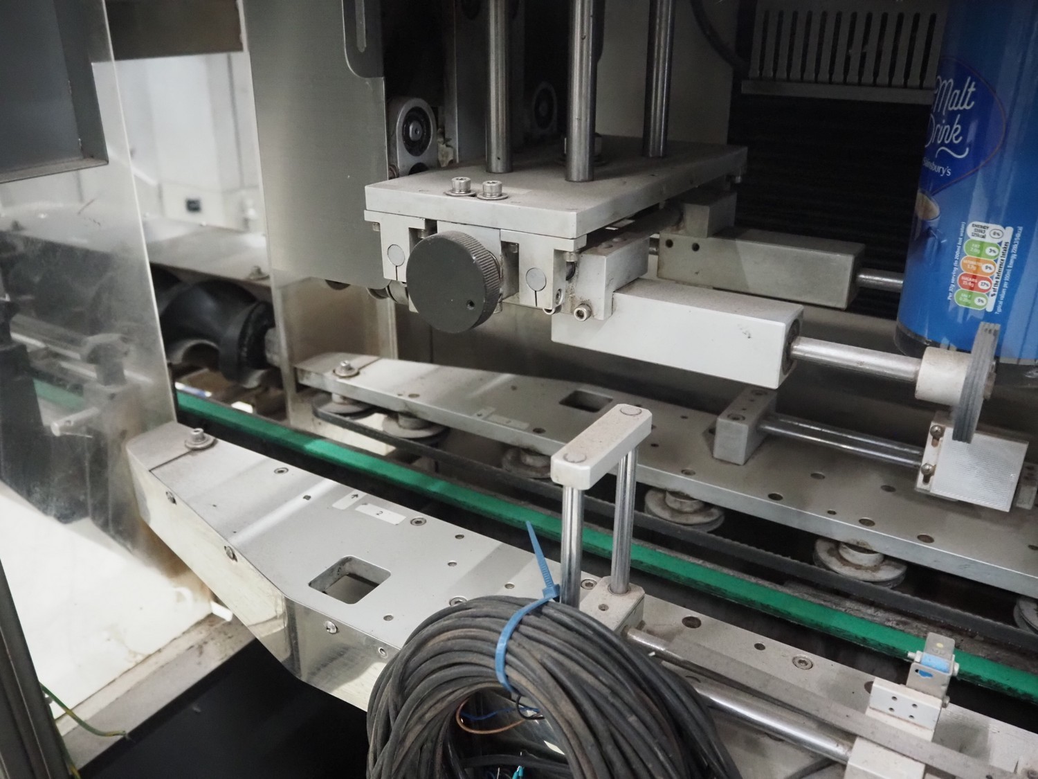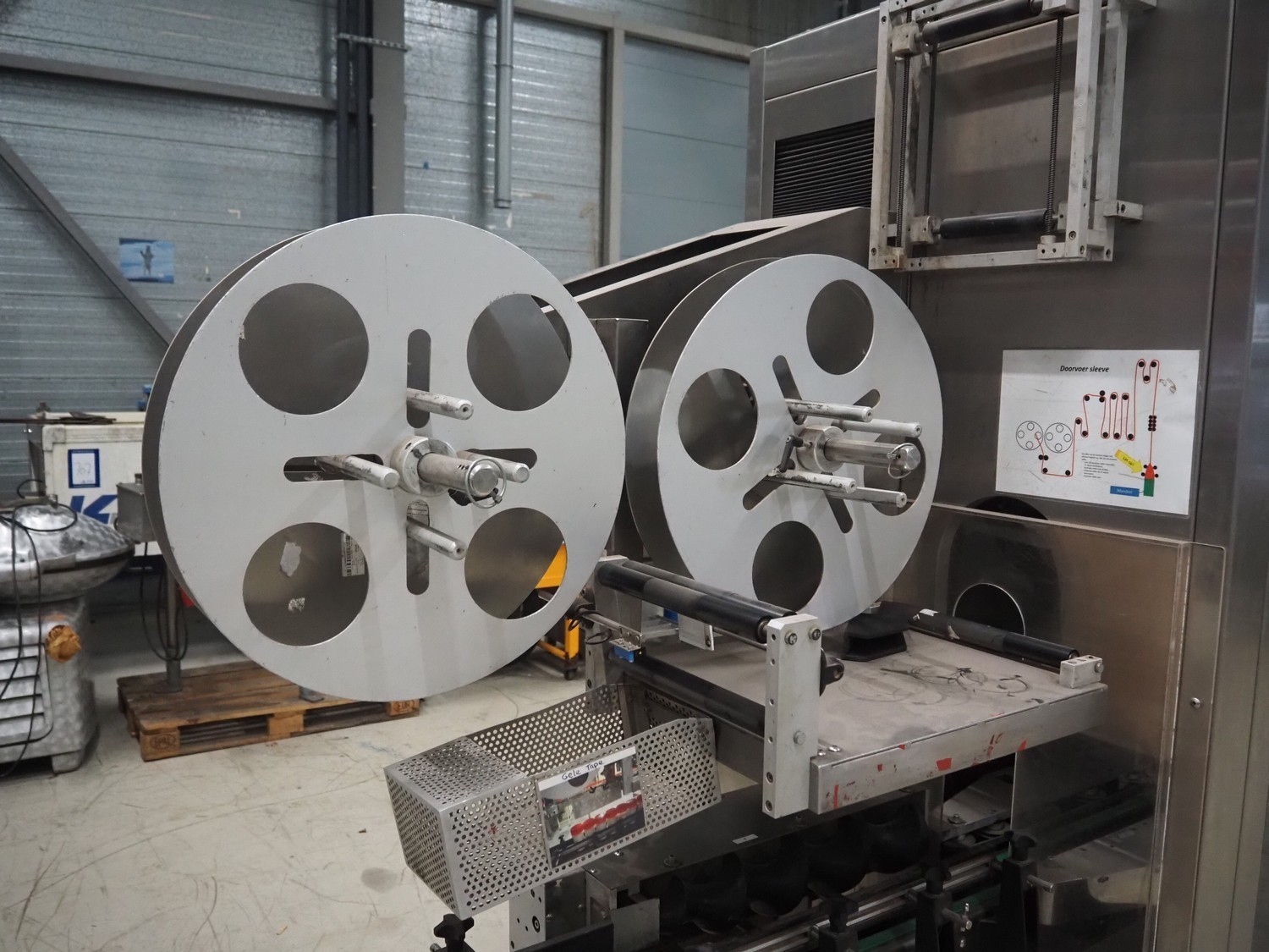 Helios / Xu-Yuan packaging, labelling, shrinking and cooling line for pots, consisting of: Helios packaging and labelling machine, model: XYL-250S, serial number: HSA-250S-026, 380 V, 3 Ph, 0.75 kW, maximum belt width: 90 mm, clearance: 130 mm x 480 mm, dimensions: 3650 mm x 1050 mm x 2250 mm. Xu-Yuan steam shrinking tunnel, model: ST-2280, number: 1201167, 380 V, 3 Ph, clearance: 200 mm x 480 mm, total dimensions: 2800 mm x 500 mm x 1150 mm. Pneumatic cooling machine for pots, clearance: dimensions: 1500 mm x 1000 mm x 2000 mm. Including transport belts with uprights, pallet with blower and pallet extra parts.