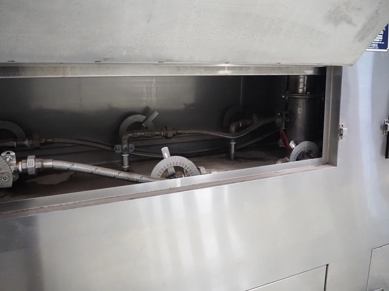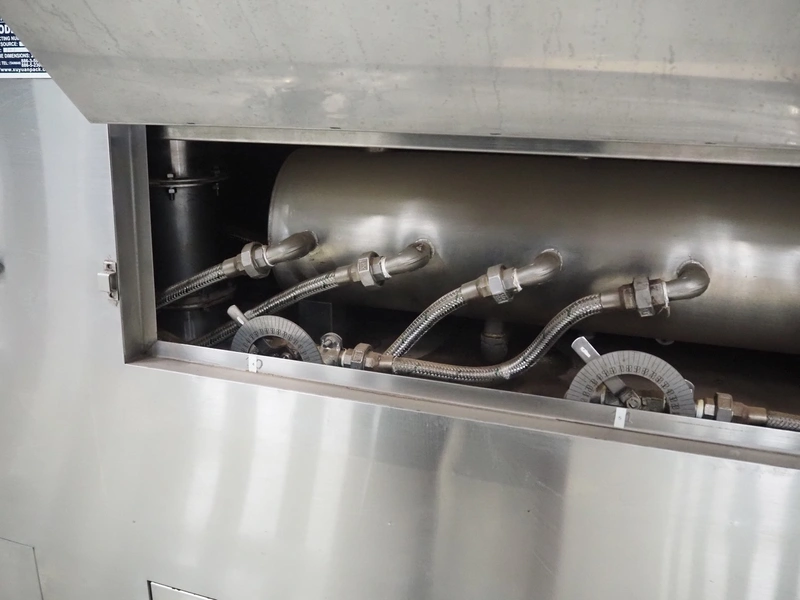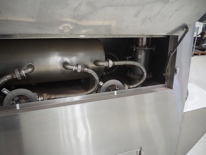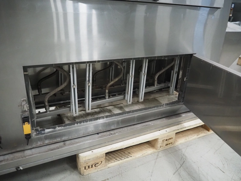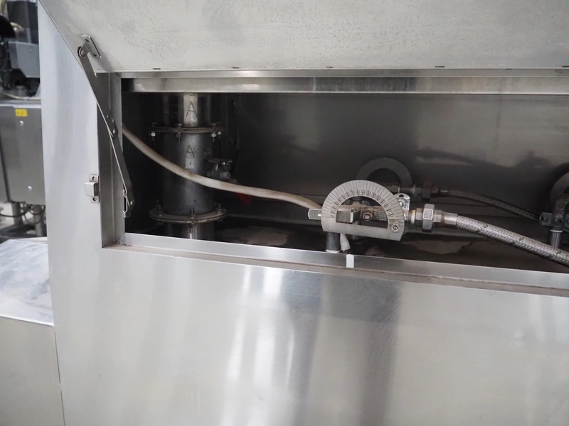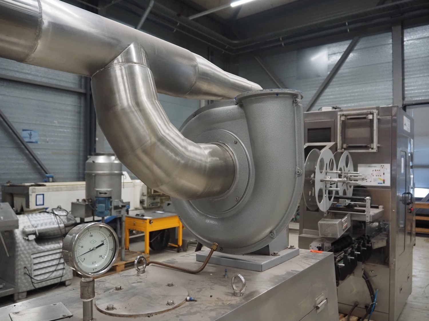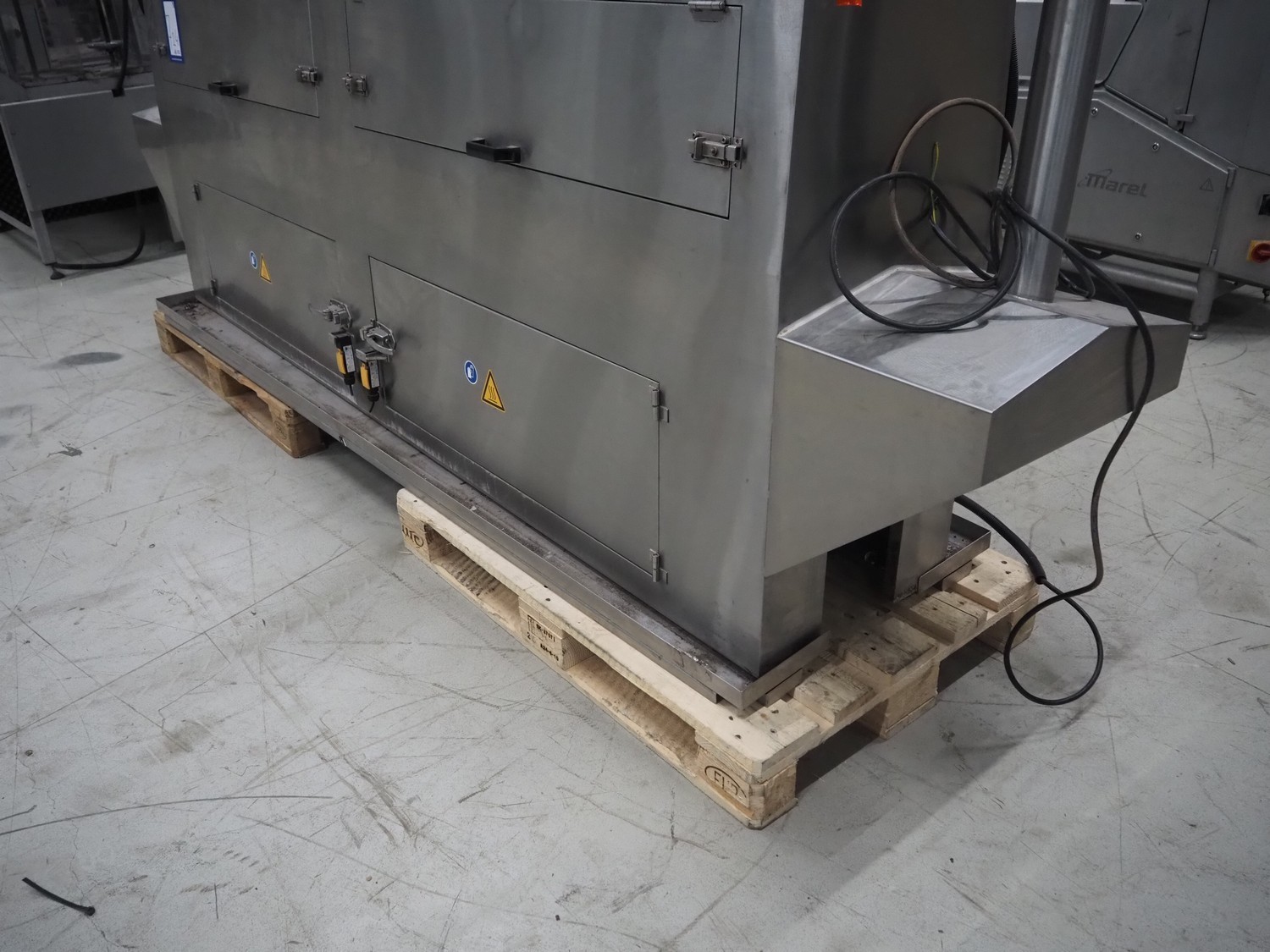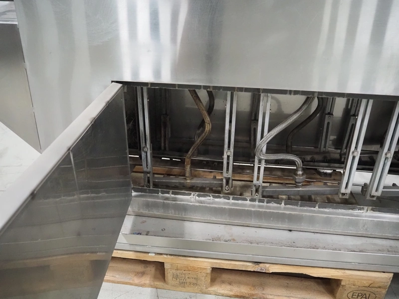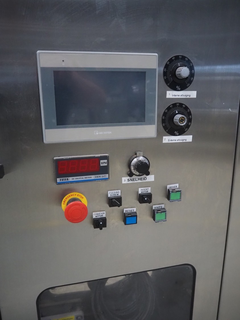 Helios / Xu-Yuan packaging, labelling, shrinking and cooling line for pots, consisting of: Helios packaging and labelling machine, model: XYL-250S, serial number: HSA-250S-026, 380 V, 3 Ph, 0.75 kW, maximum belt width: 90 mm, clearance: 130 mm x 480 mm, dimensions: 3650 mm x 1050 mm x 2250 mm. Xu-Yuan steam shrinking tunnel, model: ST-2280, number: 1201167, 380 V, 3 Ph, clearance: 200 mm x 480 mm, total dimensions: 2800 mm x 500 mm x 1150 mm. Pneumatic cooling machine for pots, clearance: dimensions: 1500 mm x 1000 mm x 2000 mm. Including transport belts with uprights, pallet with blower and pallet extra parts.