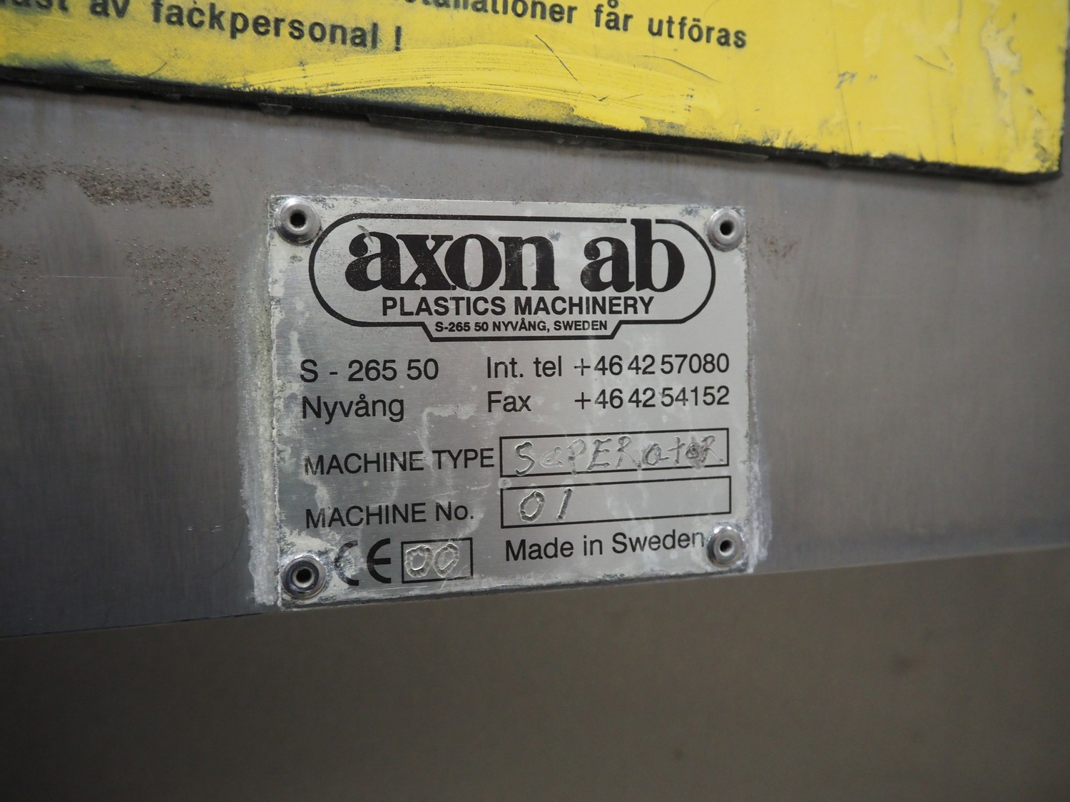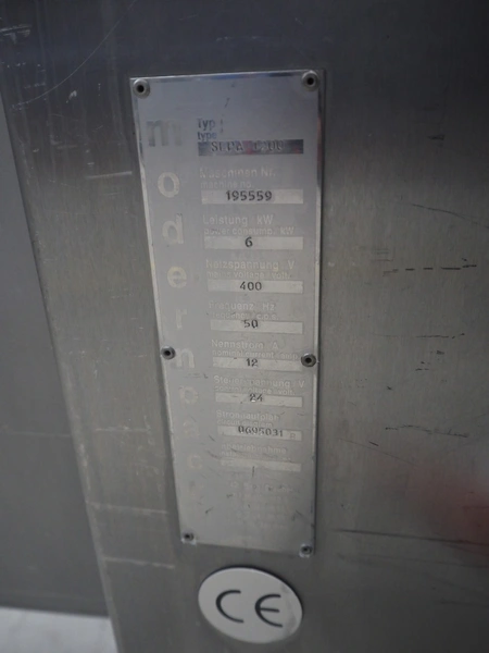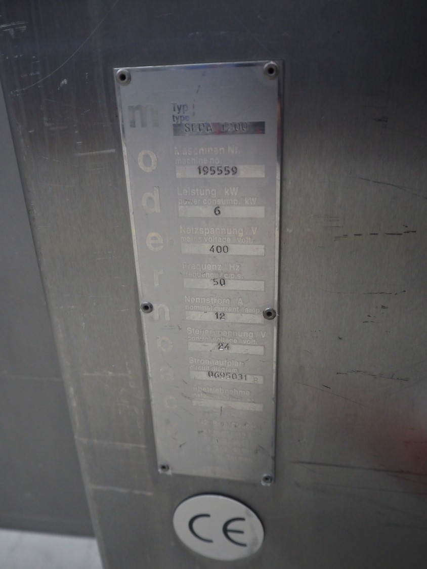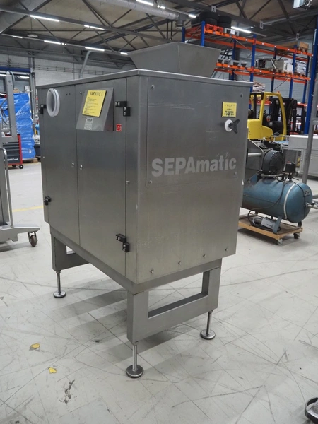 Sepamatic separator, type: SEPA 1200, machine number: 195559, 400 V, 50 Hz, 6 kW, diameter drum: 300 mm, diameter perforations: 2 mm, total dimensions: 1300 mm x 1170 mm x 1800 mm.