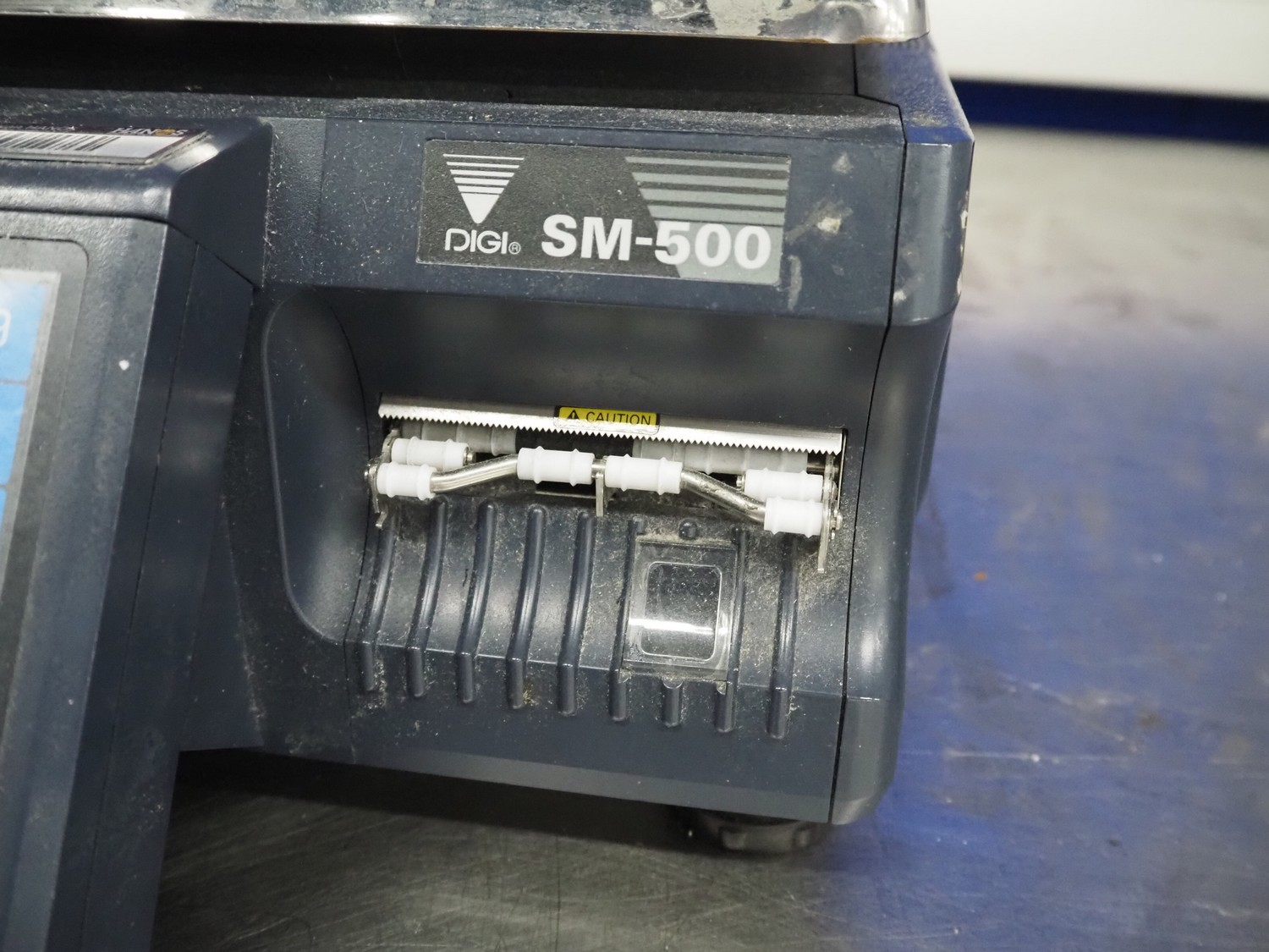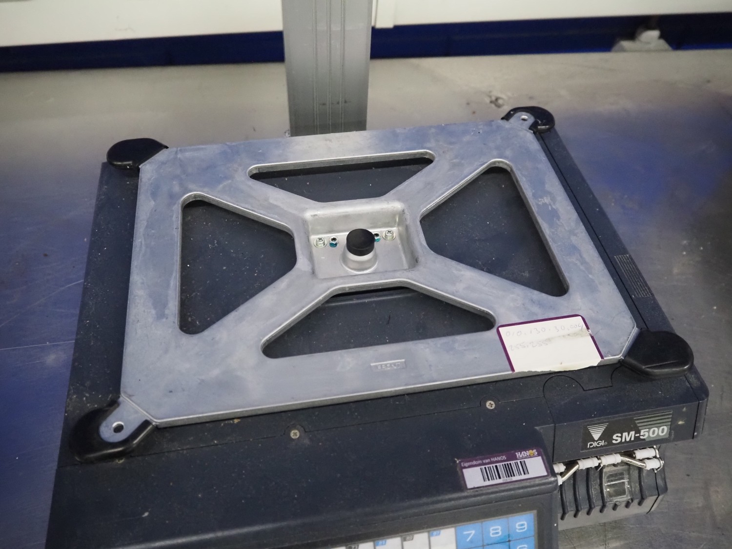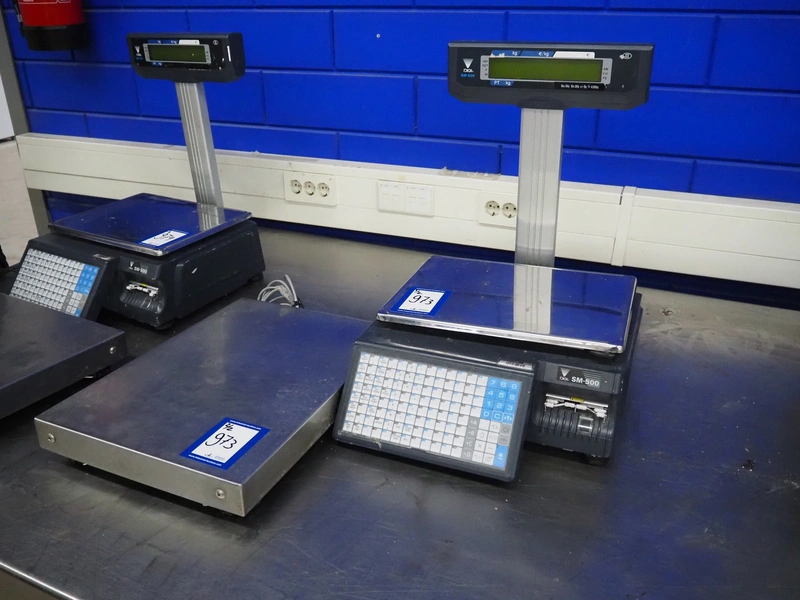 Digi Benelux weighing scale with label printer and extra scale, model: SM-500EP, serial number: 10903695, 230 V, 50/60 Hz, 0.4 A, 45 W, maximum capacity: 30 kg, minimum capacity: 200 g, e= 10 g, T= -9.990 kg, scale dimensions: 380 mm x 280 mm, total dimensions: 400 mm x 480 mm x 560 mm. Dimensions extra scale: 500 mm x 350 mm.