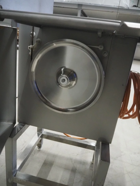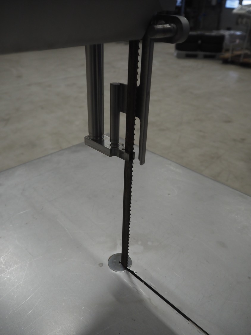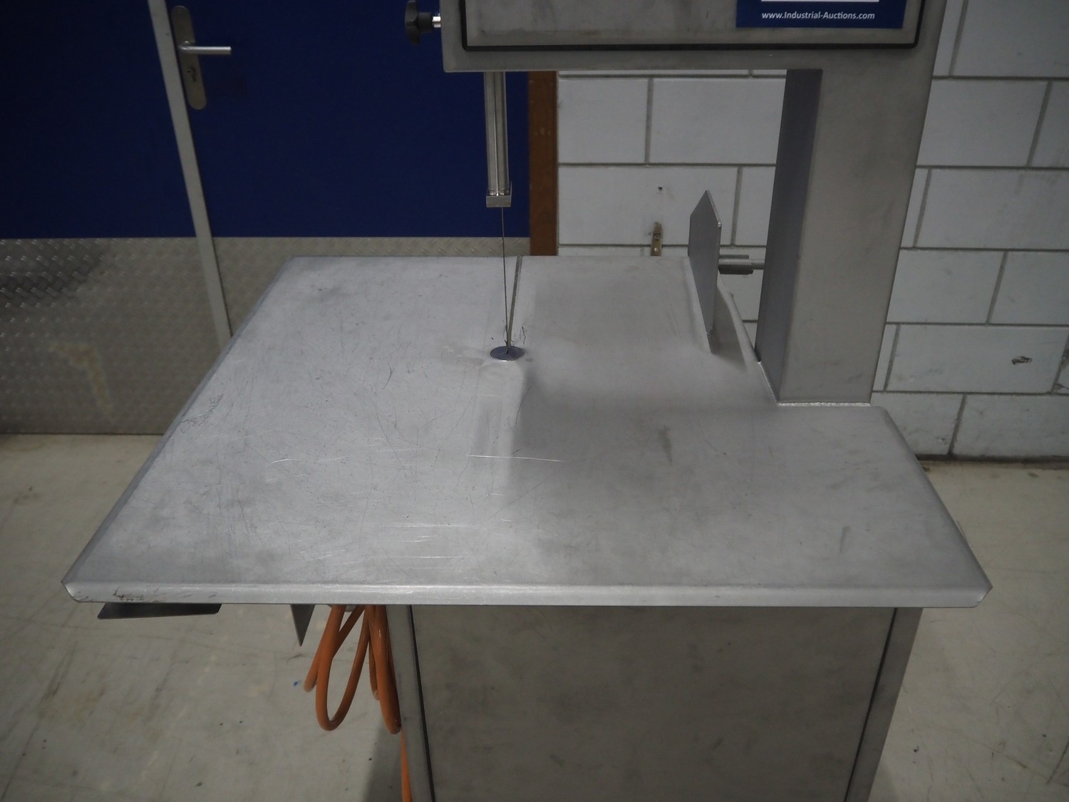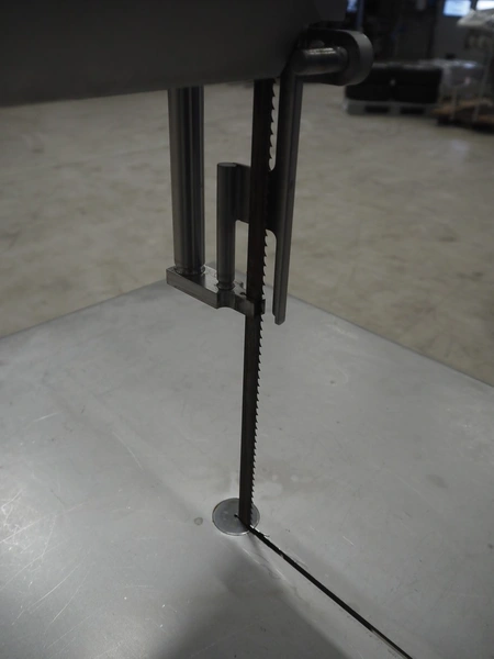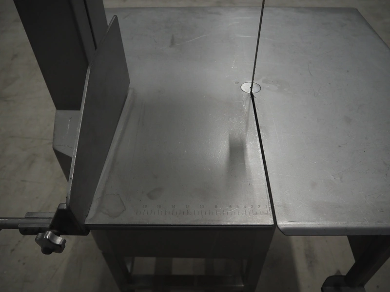 Bizerba bandsaw, model: FK 32, machine number: 2169862, year of construction: 2004, 400 V, 3 Ph, 50 Hz, 3.6 A, table dimensions: 750 mm x 750 mm, total dimensions: 750 mm x 750 mm x 1600 mm.