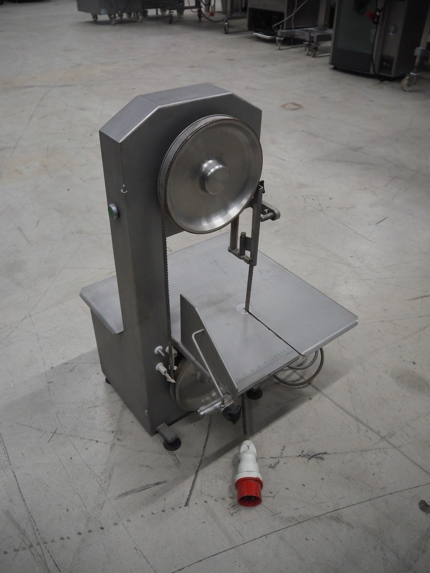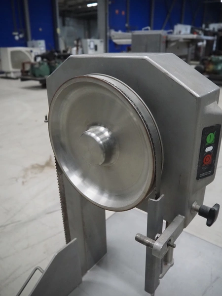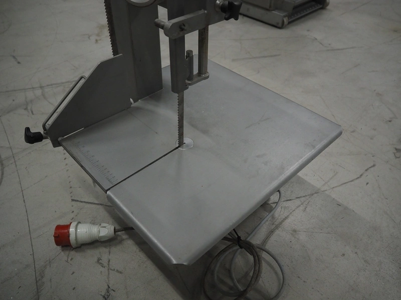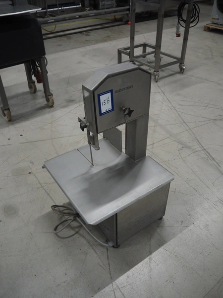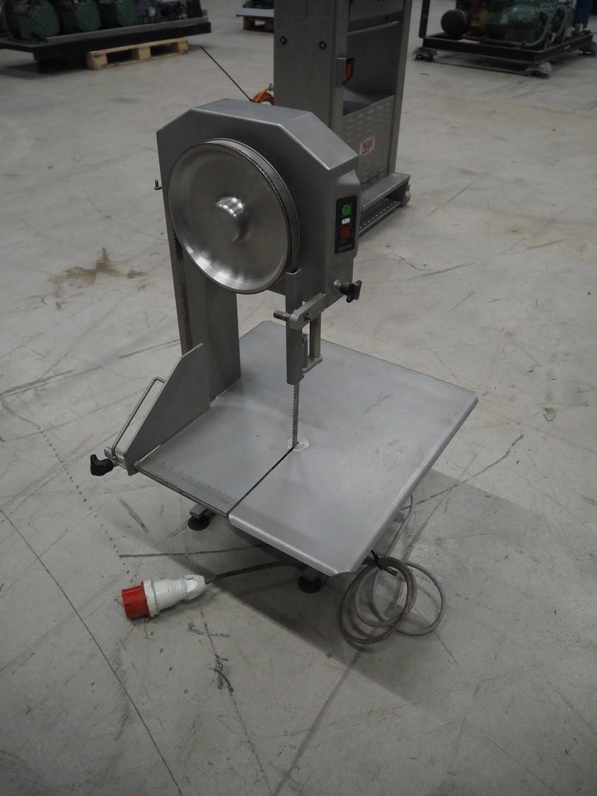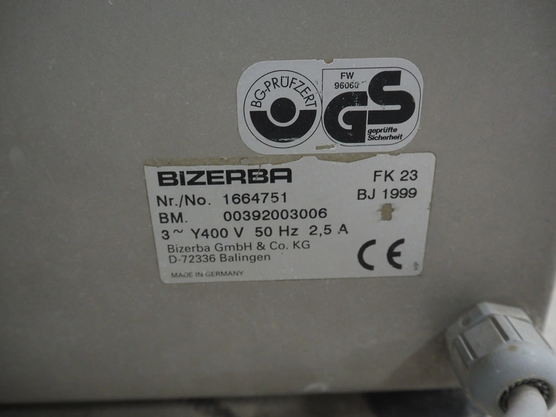Bizerba bandsaw, type: FK 23, number: 1664751, year of construction: 1999, 400 V, 3 Ph, 50 Hz, 2.5 A, table dimensions: 530 mm x 530 mm, total dimensions: 530 mm x 530 mm x 900 mm. Without cover.