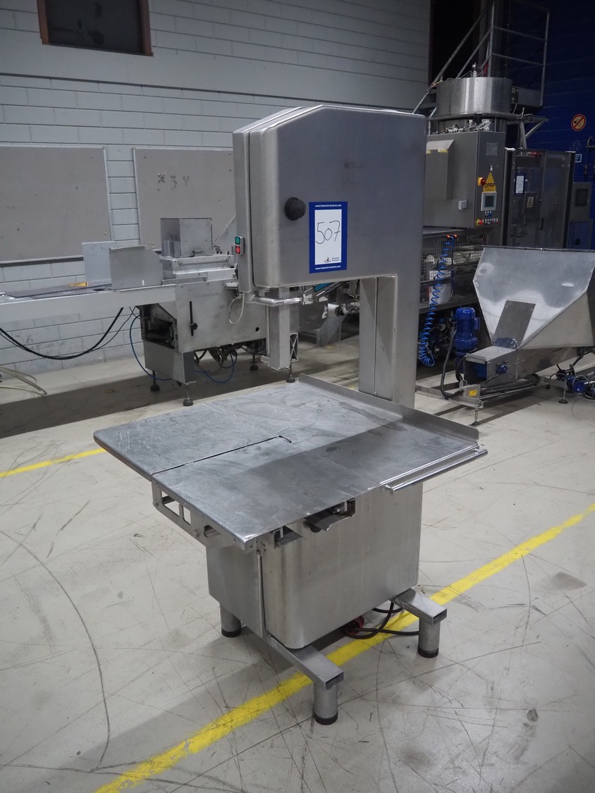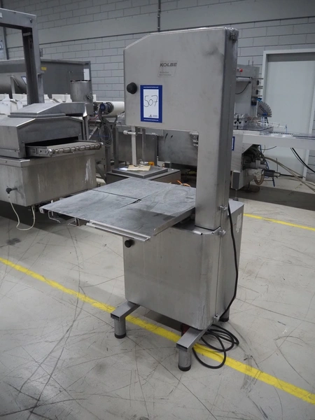 Kolbe bandsaw, model: K44, serial number: 96 0180, year of construction: 1998, 400/230 V, 50 Hz, table dimensions: 900 mm x 840 mm, total dimensions: 1000 mm x 950 mm x 1850 mm. Without saw.