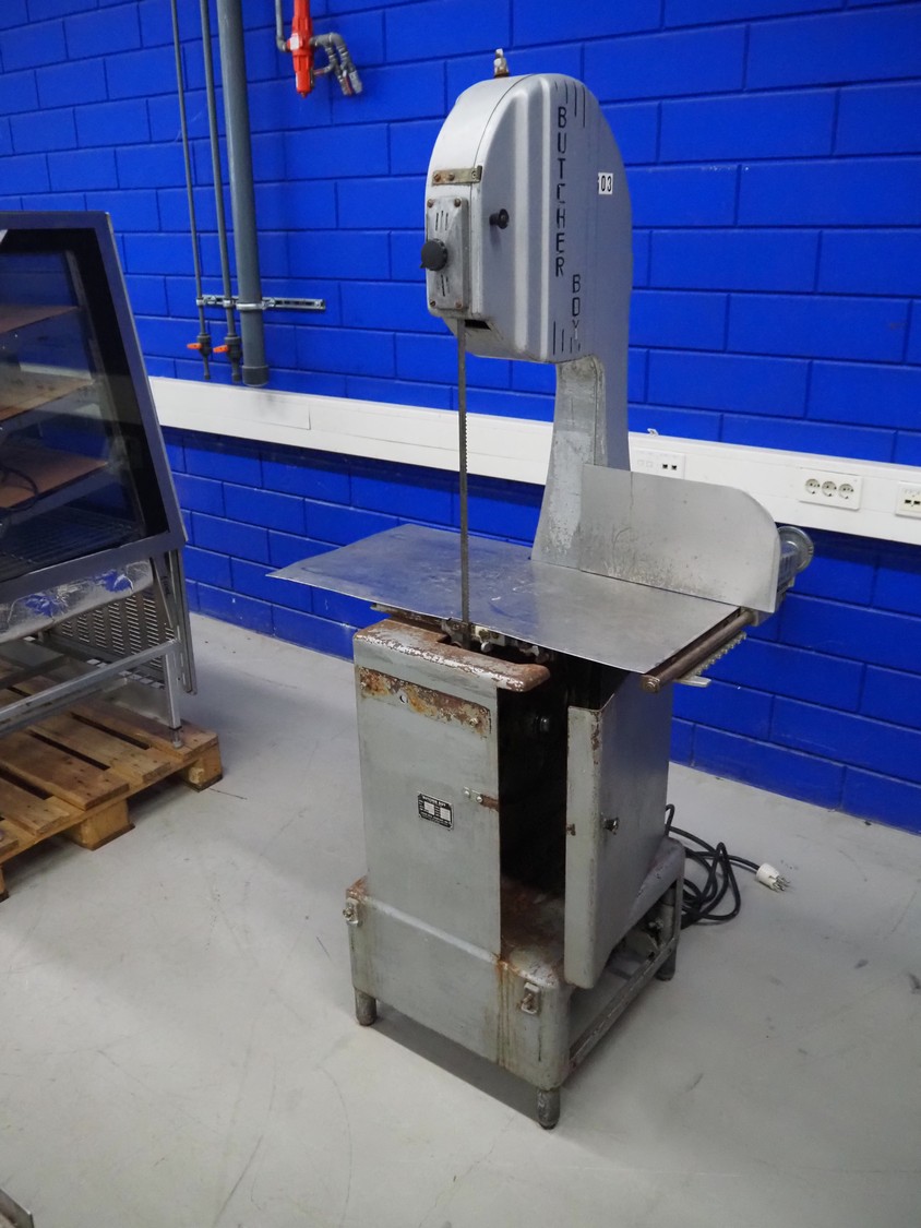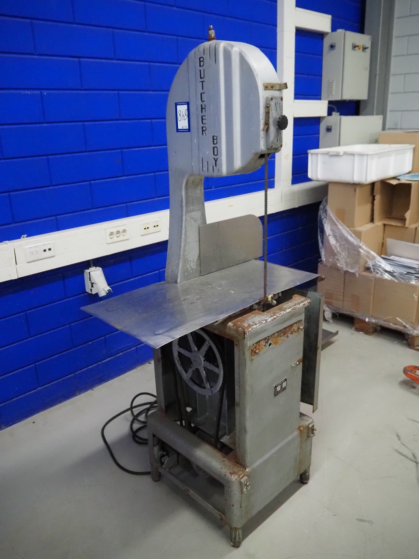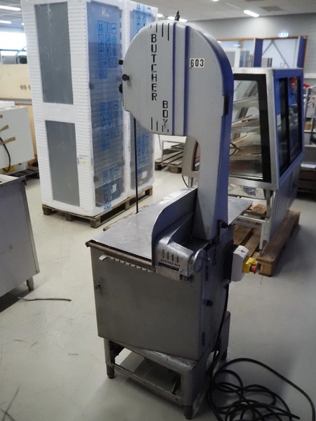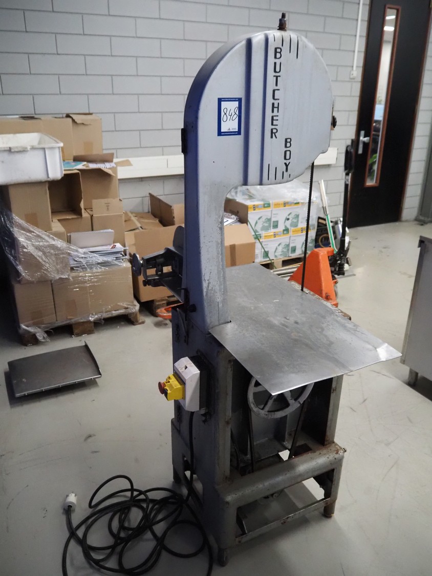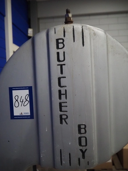 Butcher Boy band saw, model: B14, serial number: 2-11642, 380 V, 3 Ph, 50 Hz, 2.8 A, 1.5 kW, dimensions: 860 mm x 670 mm x 1800 mm.
