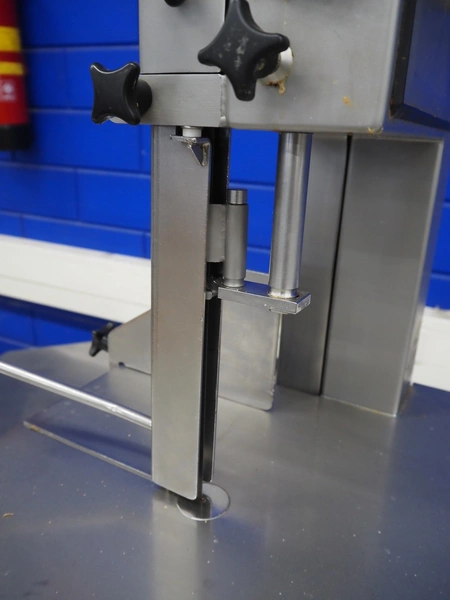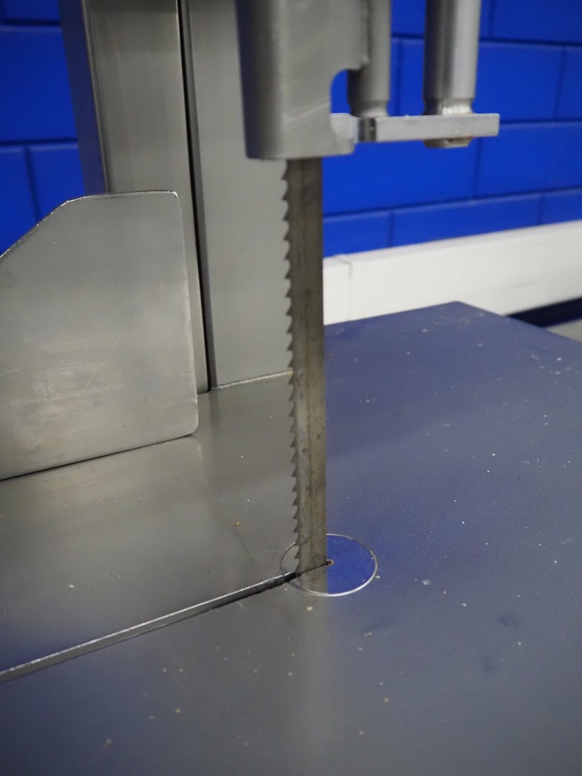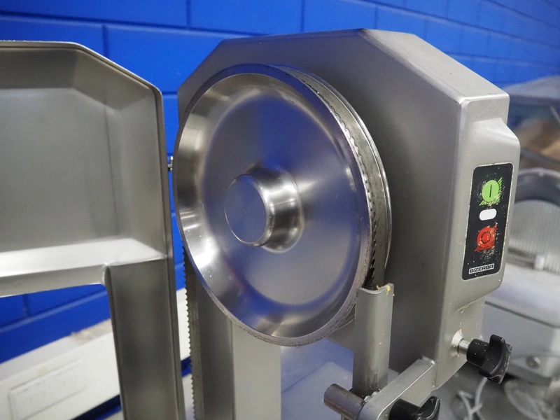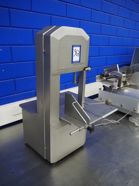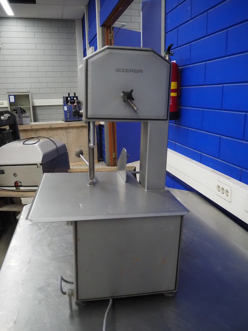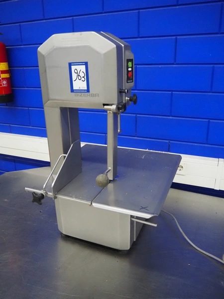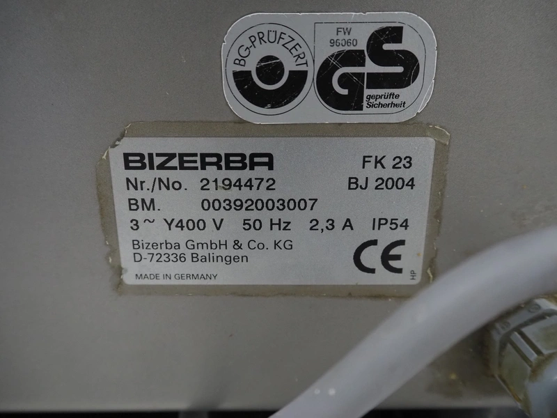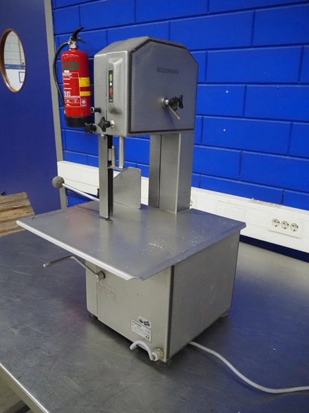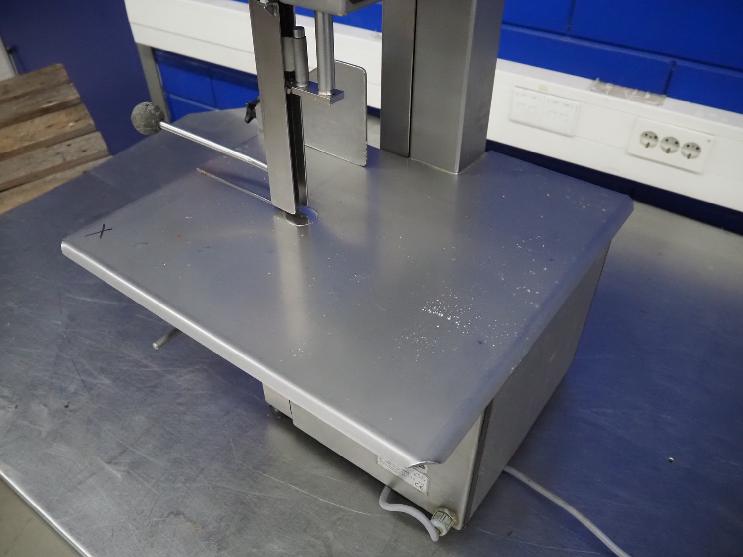 Bizerba bandsaw, type: FK 23, number: 2194472, year of construction: 2004, 400 V, 3 Ph, 50 Hz, 2.3 A, table dimensions: 520 mm x 520 mm, total dimensions: 520 mm x 520 mm x 850 mm.