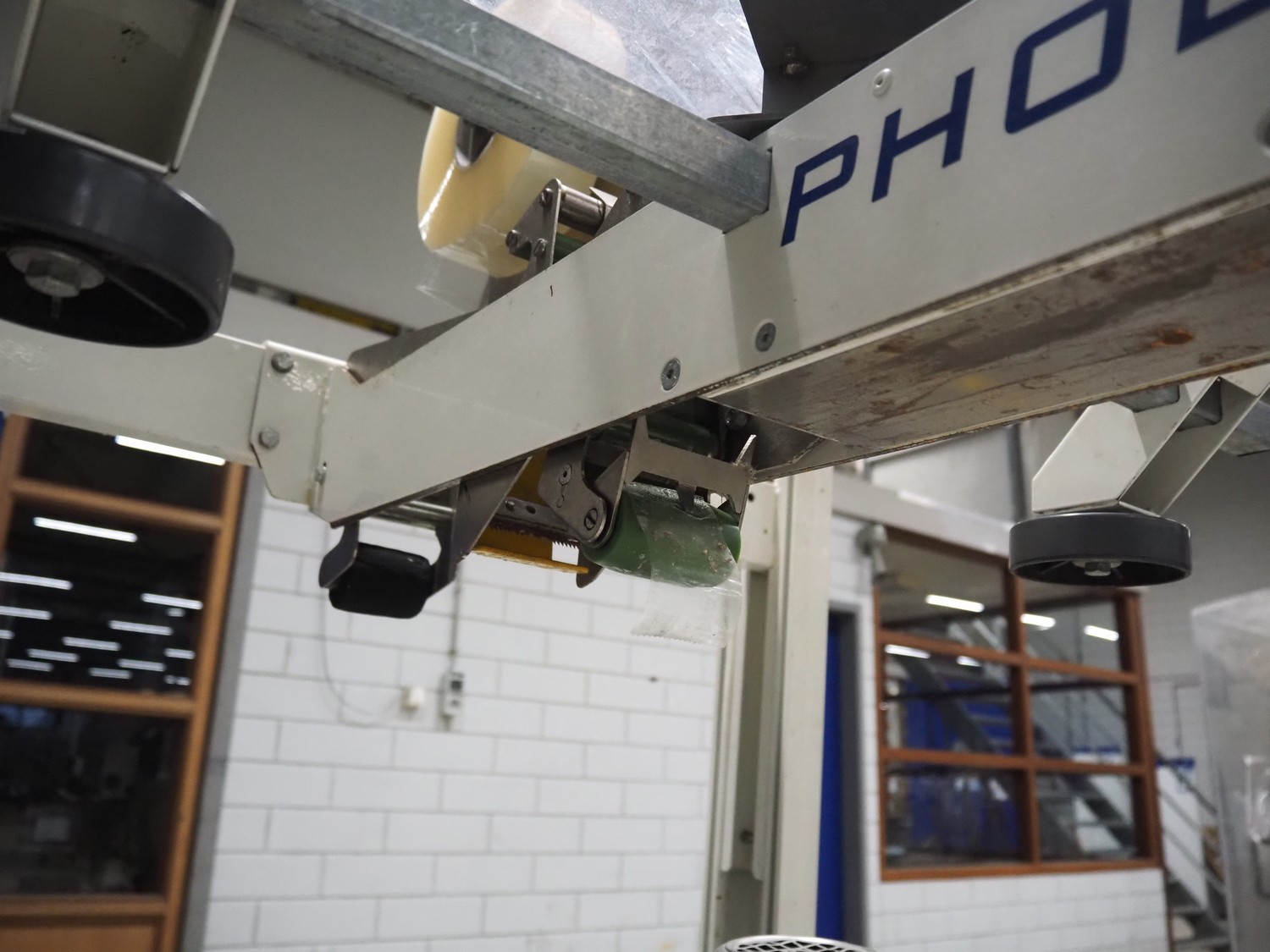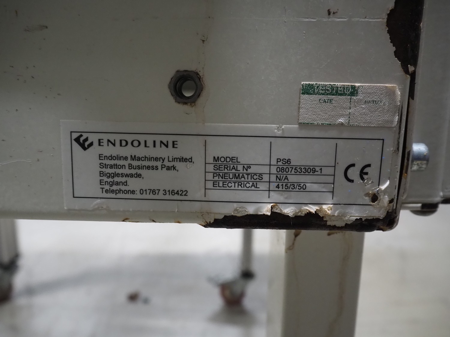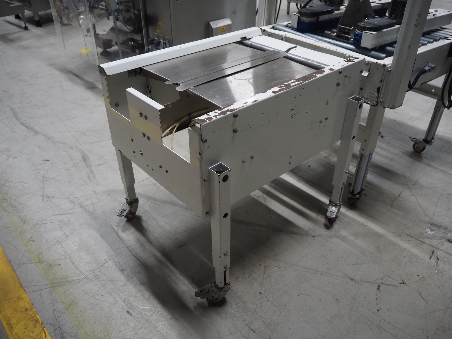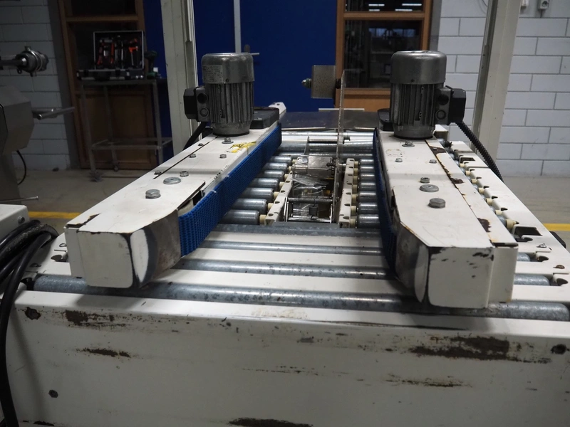 Endoline mobile box closing machine, model: PS6, serial number: 080753309-1, aluminium rollers, roller width: 670 mm, total dimensions: 1000 mm x 900 mm x 1720 mm, 900 mm x 750 mm x 850 mm.