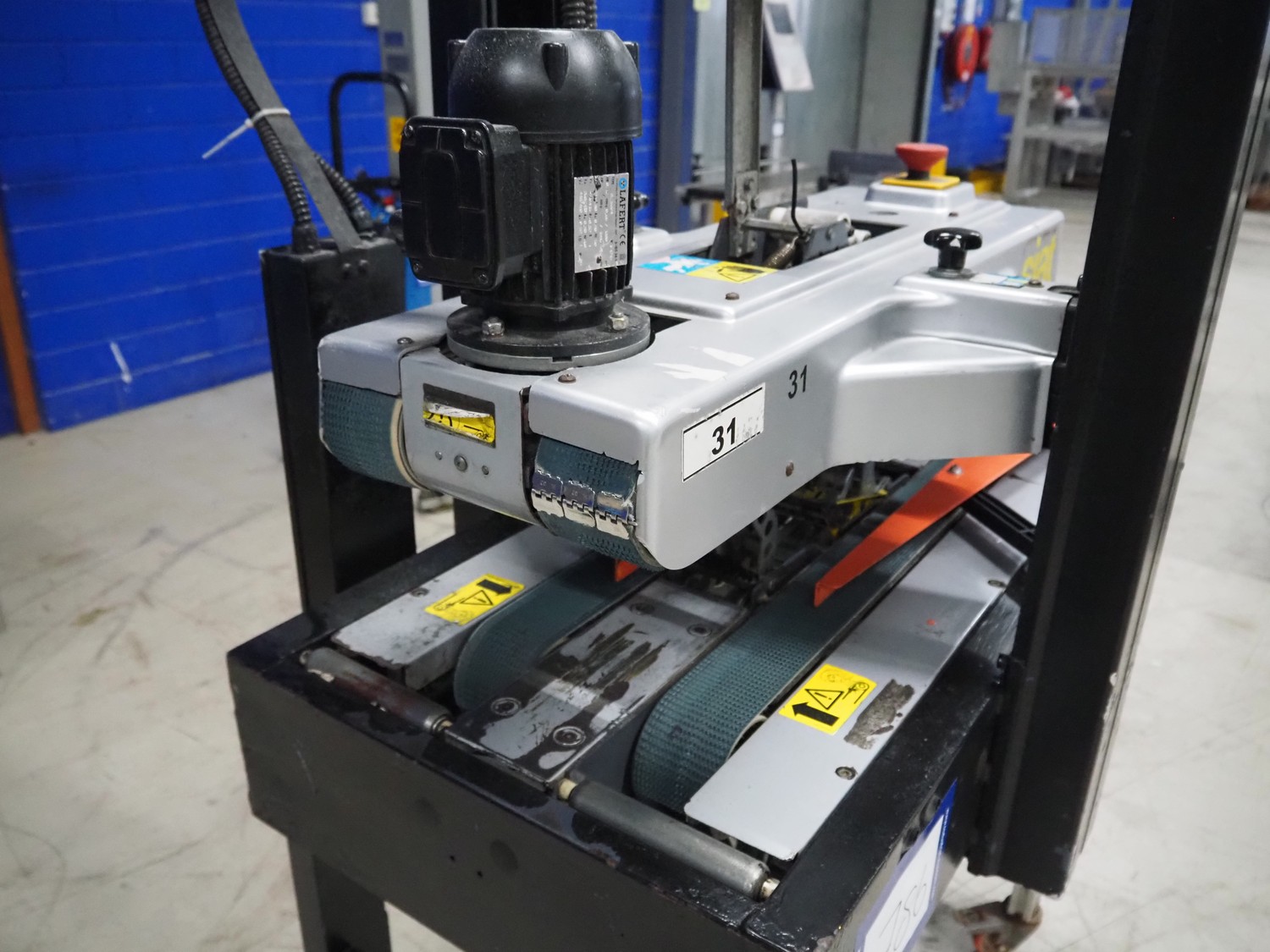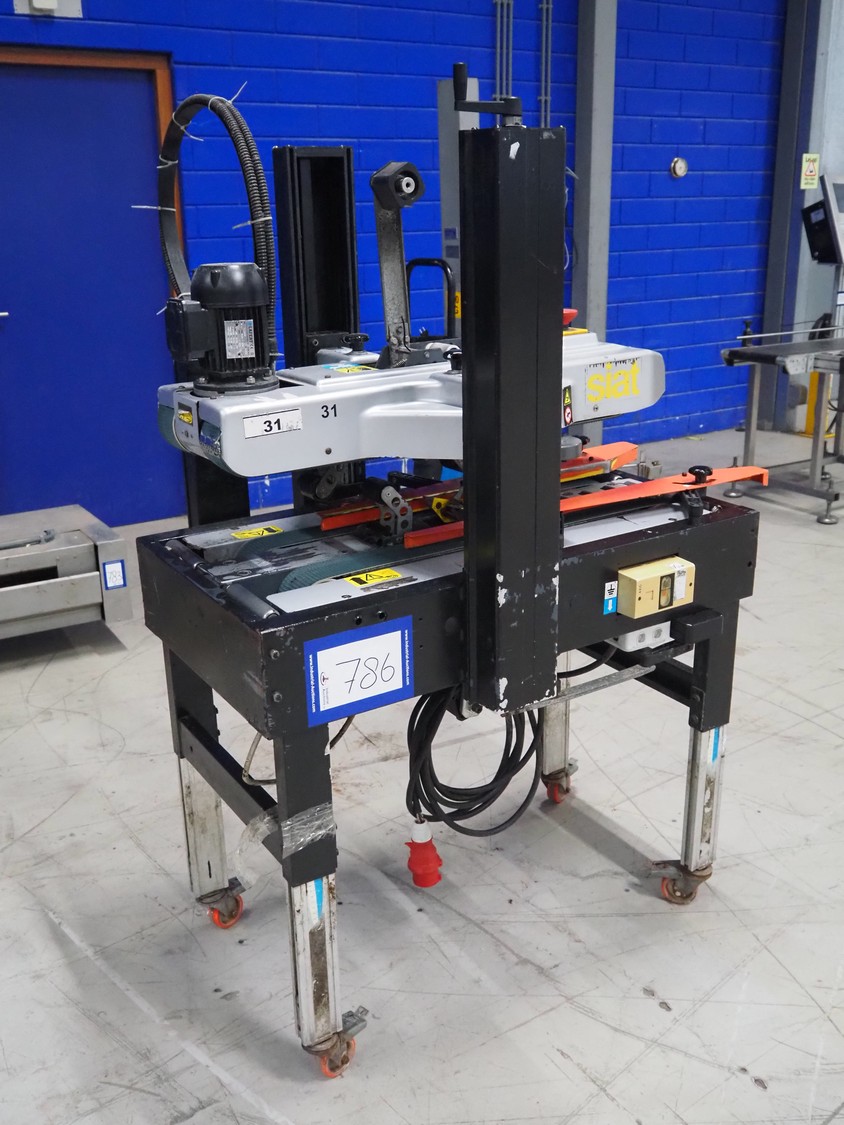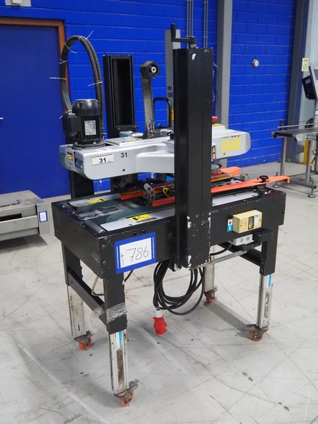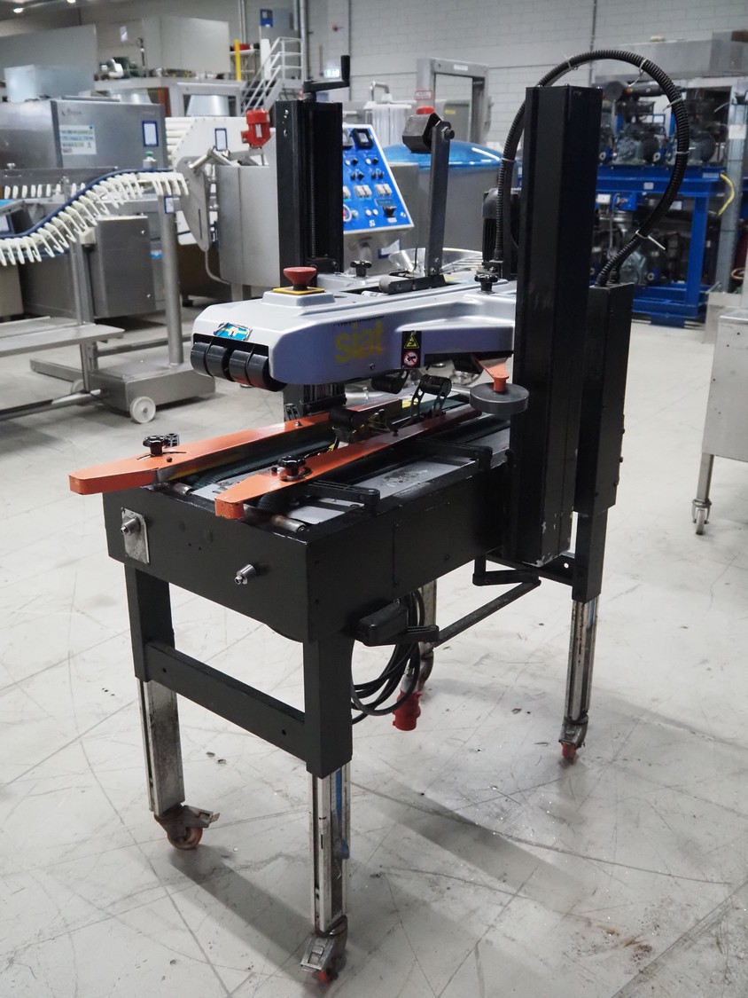 Siat box closing machine, dimensions: 1220 mm x 730 mm x 1700 mm.