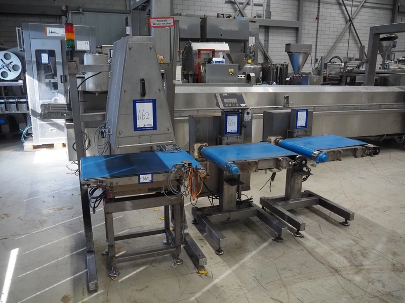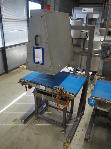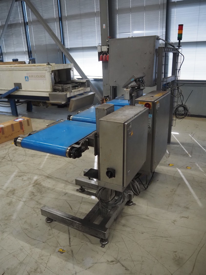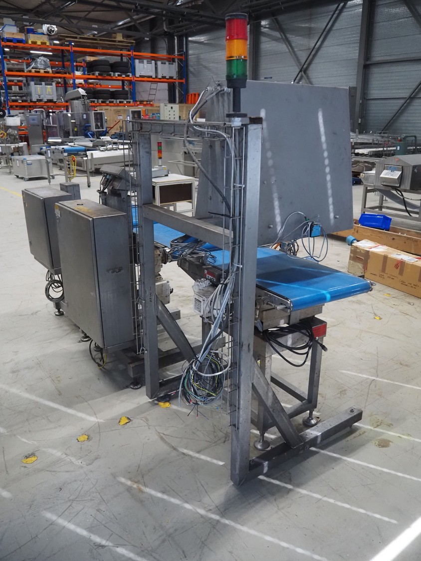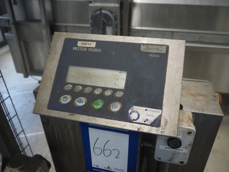 Mettler-Toledo Garvens GmbH checkweigher with scanner, type: IND 439 40, fabrication number: 14003144, year of construction: 2008, 230 V, 50 Hz, maximum: 20000 gram, minimum: 200 gram, e- 10 gram, plastic belts, belt width: 500 mm, total dimensions: 2300 mm x 1100 mm x 1900 mm.