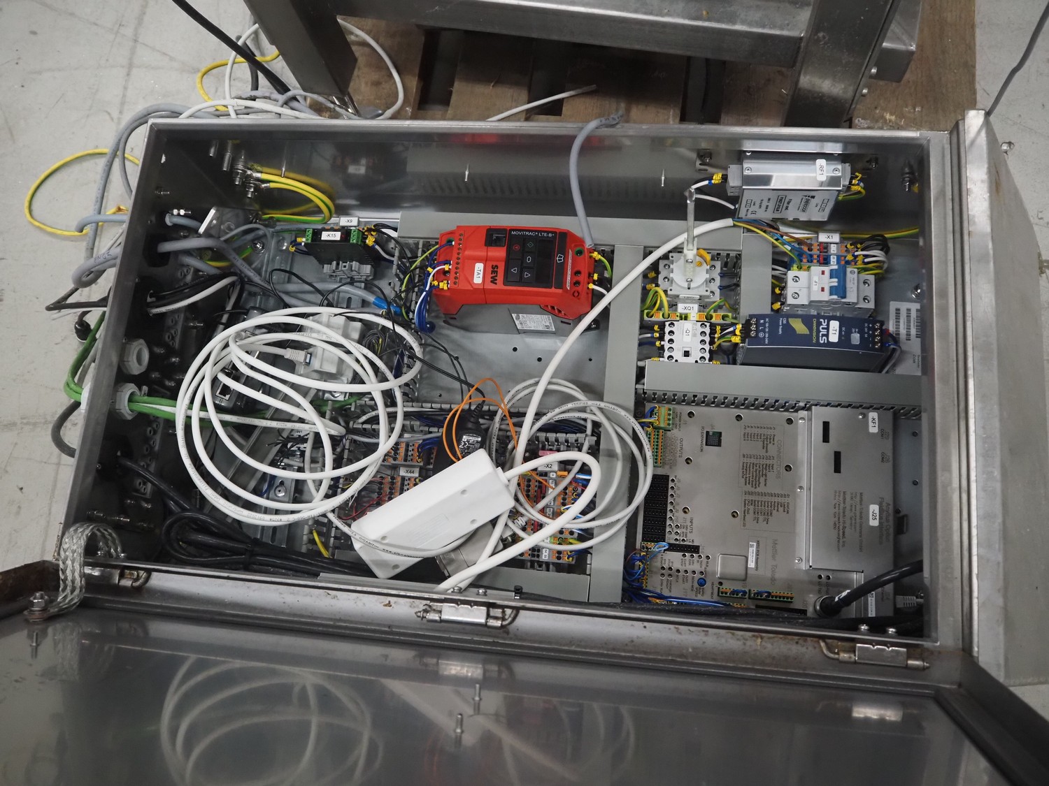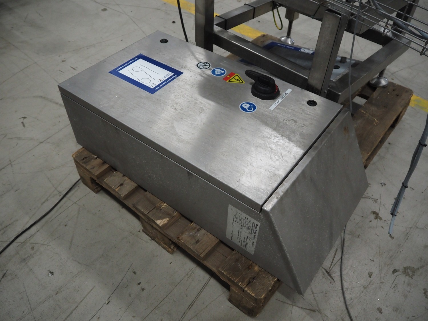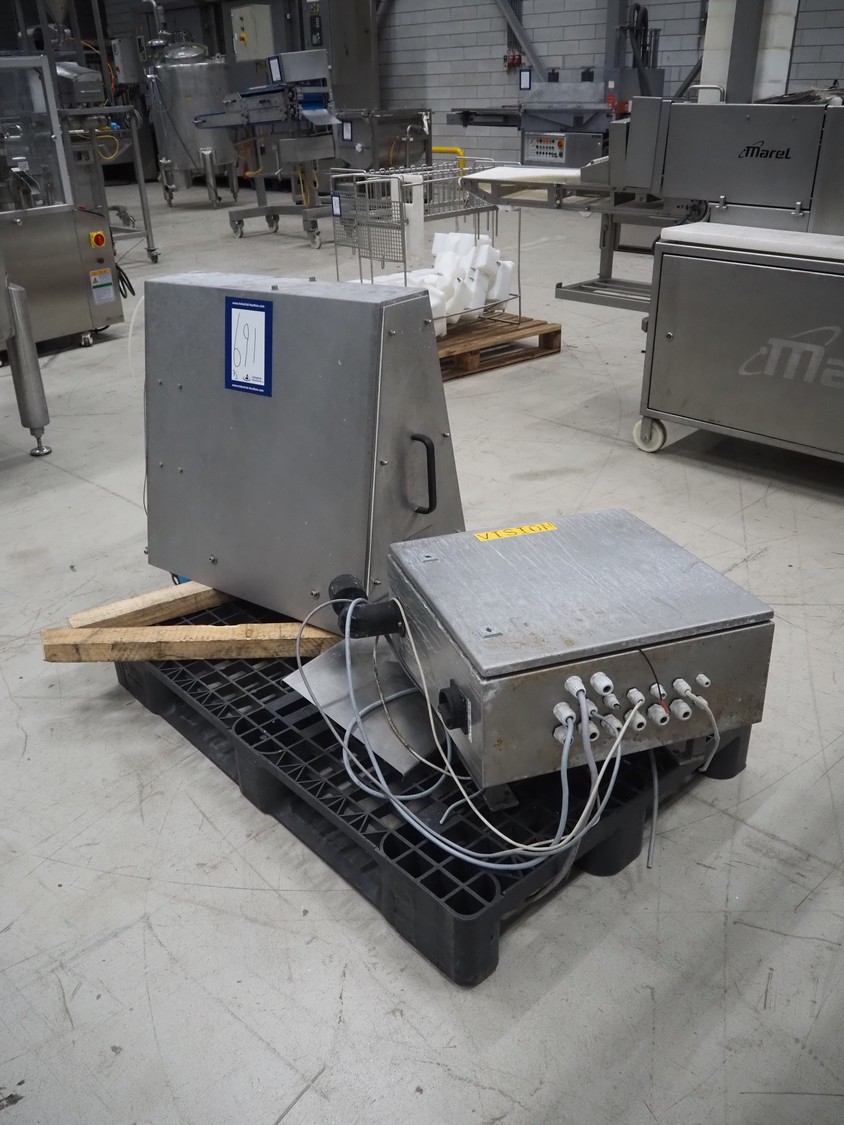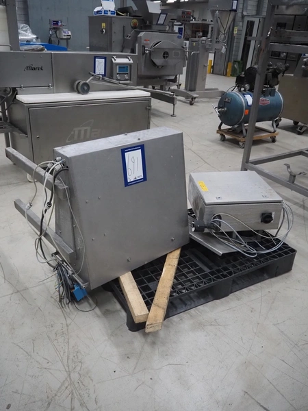 Mettler-Toledo Garvens GmbH checkweigher with scanner, type: C 2351, fabrication number: 1456891930010, year of construction: 2023, 230 V, 1 Ph, 50-60 Hz, 4.3 A, temperature range: 0-40 °C, weighing range: 0-15 kg, plastic belt, belt width: 450 mm, total dimensions: 850 mm x 700 mm x 1700 mm. Screen broken, already dismantled.