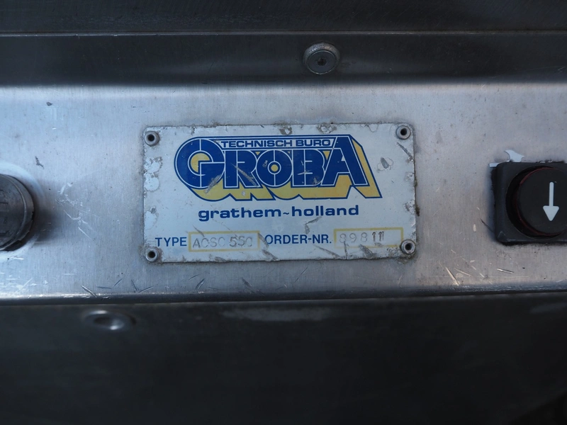 Groba BV cheese divider for hard cheese, type: ACSC 550, order number: 89811, plastic rollers, roller width: 400 mm, total dimensions: 1700 mm x 1150 mm x 2130 mm.