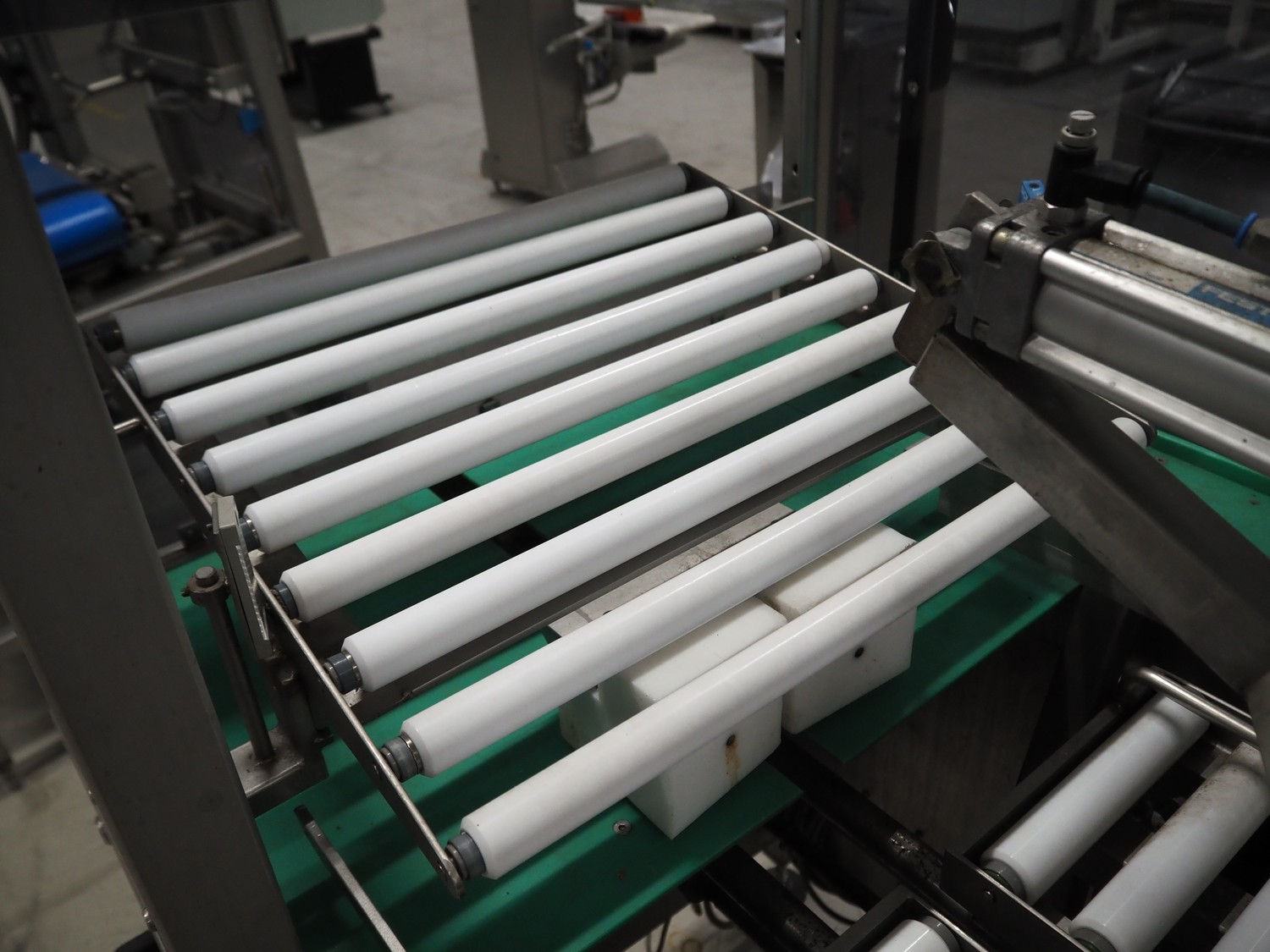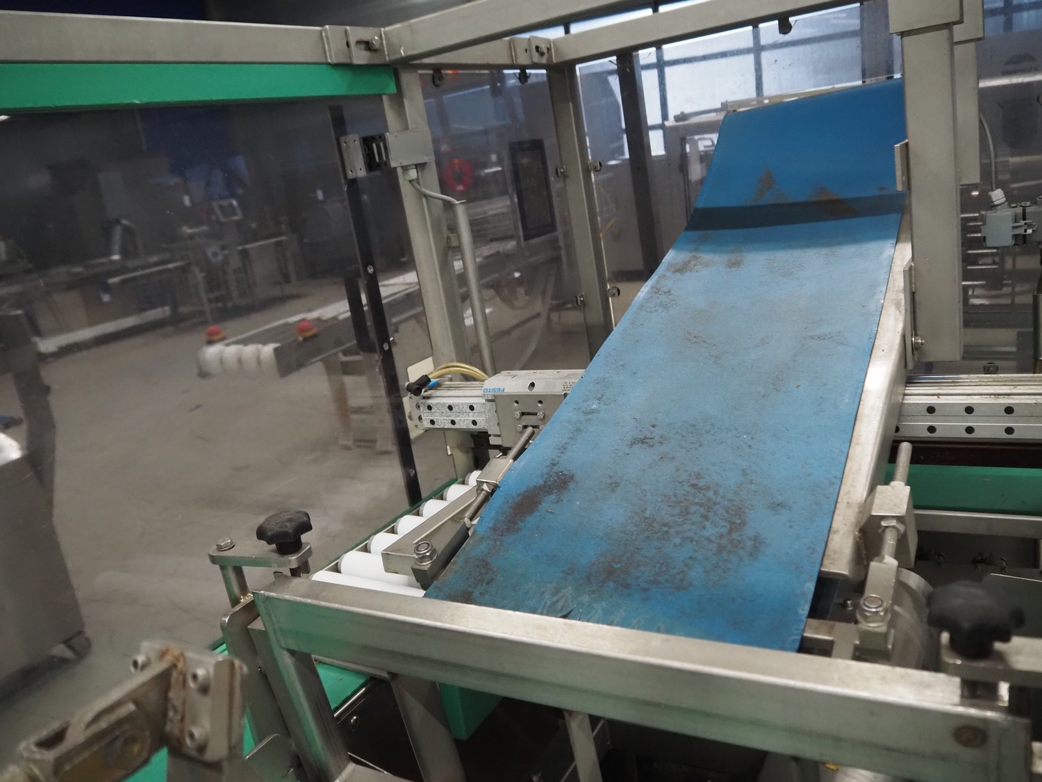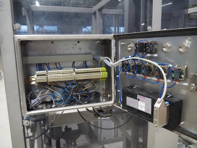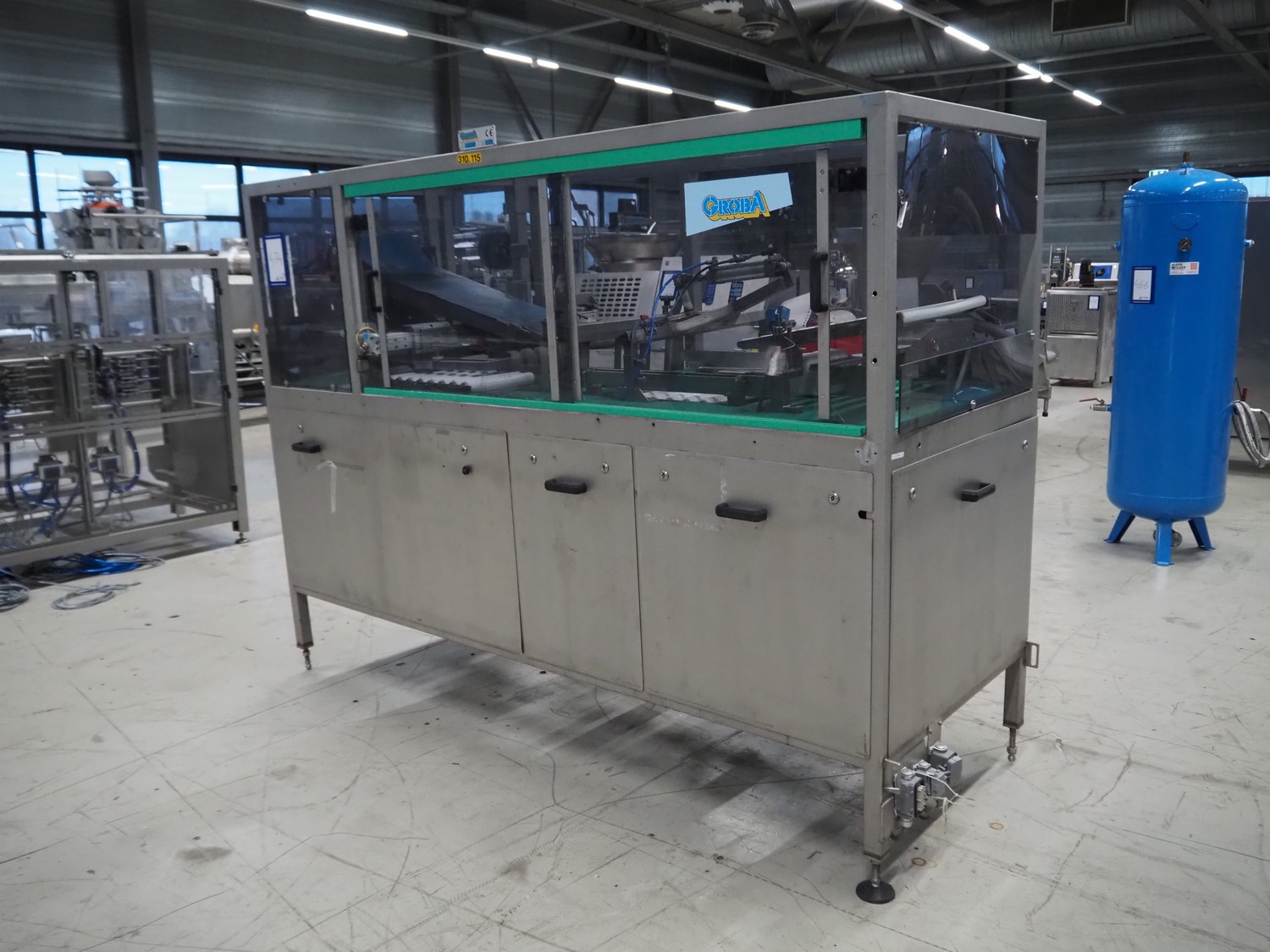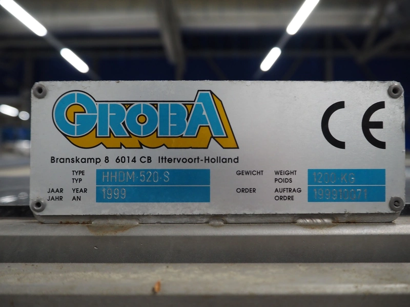 Groba BV horizontal cheese divider, type: HHDM 520-S, year of construction: 1999, belt width: 340 mm and 235 mm, roll width: 2 x 250 mm, consisting of 2 parts, dimensions: 3250 mm x 1100 mm x 2100 mm and 2800 mm x 1100 mm x 2080 mm.