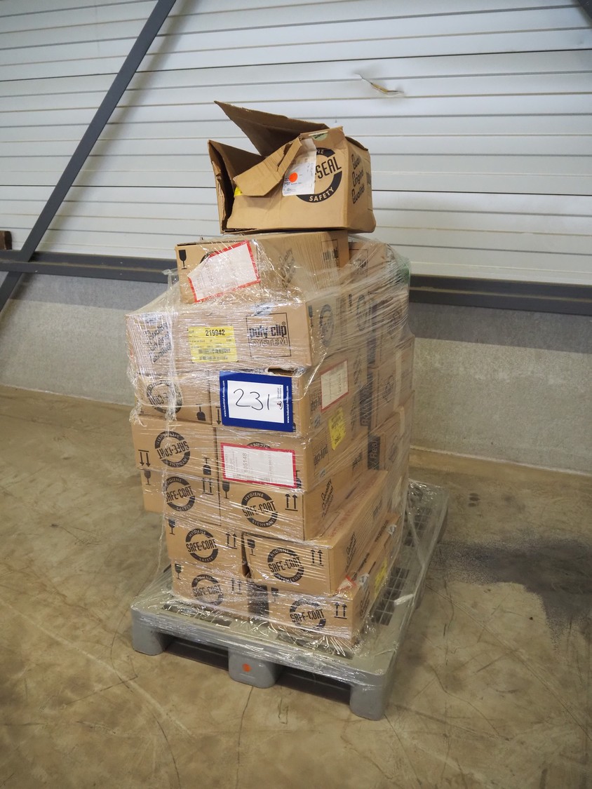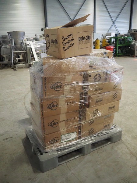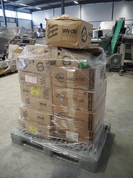 Pallet with Poly-clip System GmbH & Co. KG clips, dimensions: 1200 mm x 800 mm x 1230 mm.