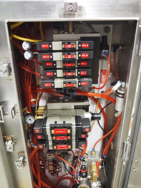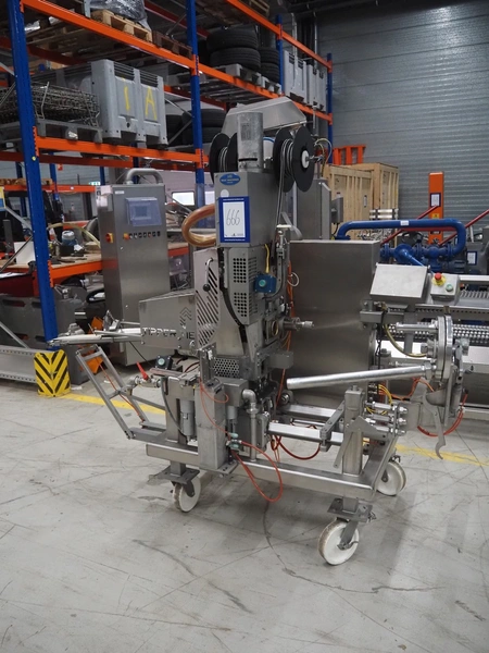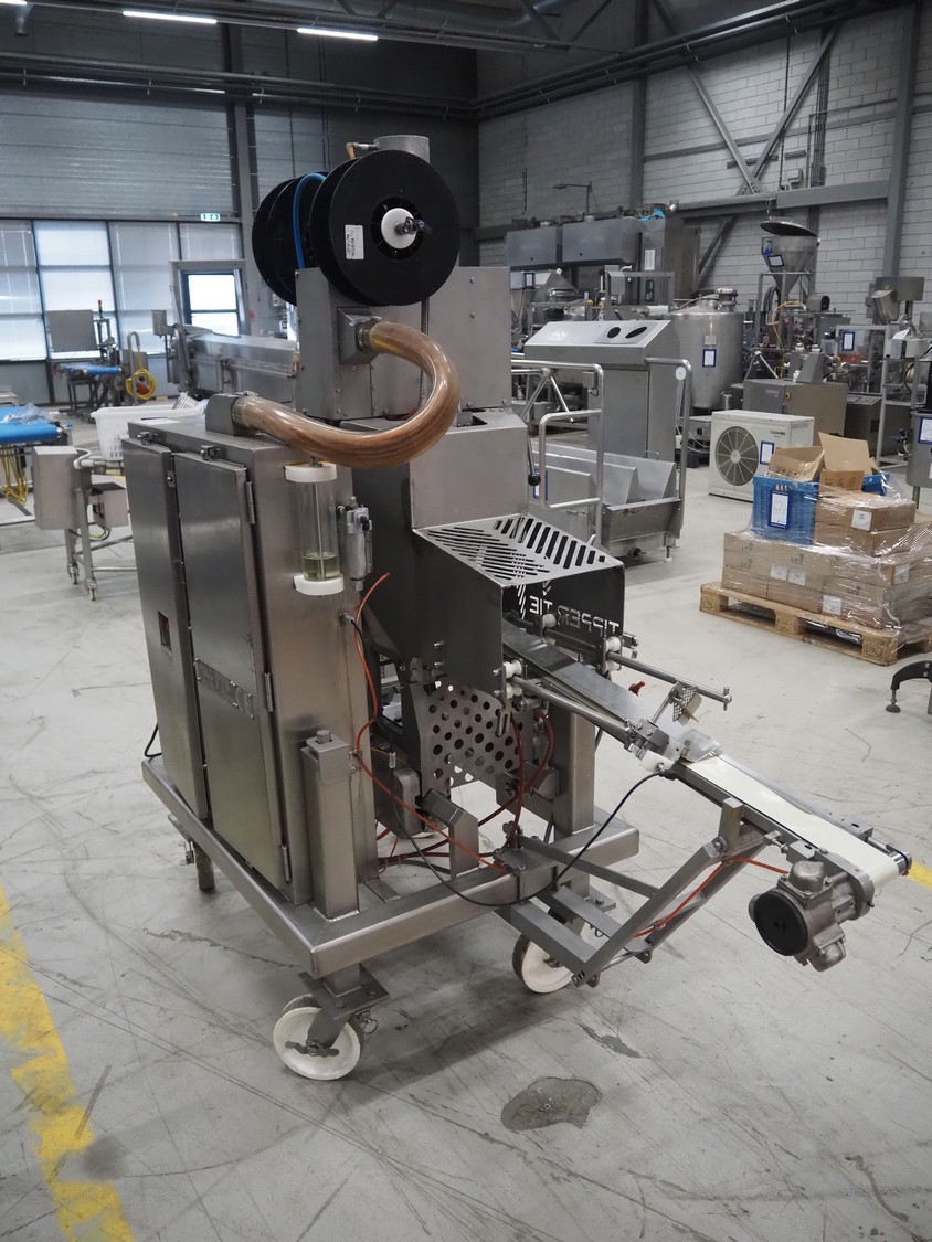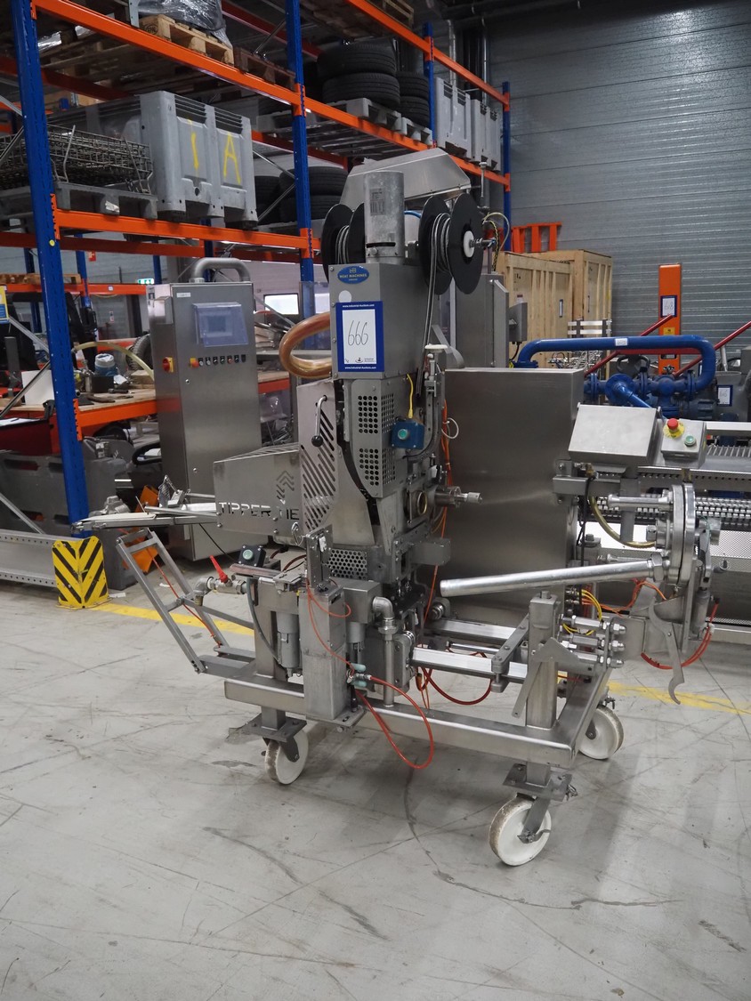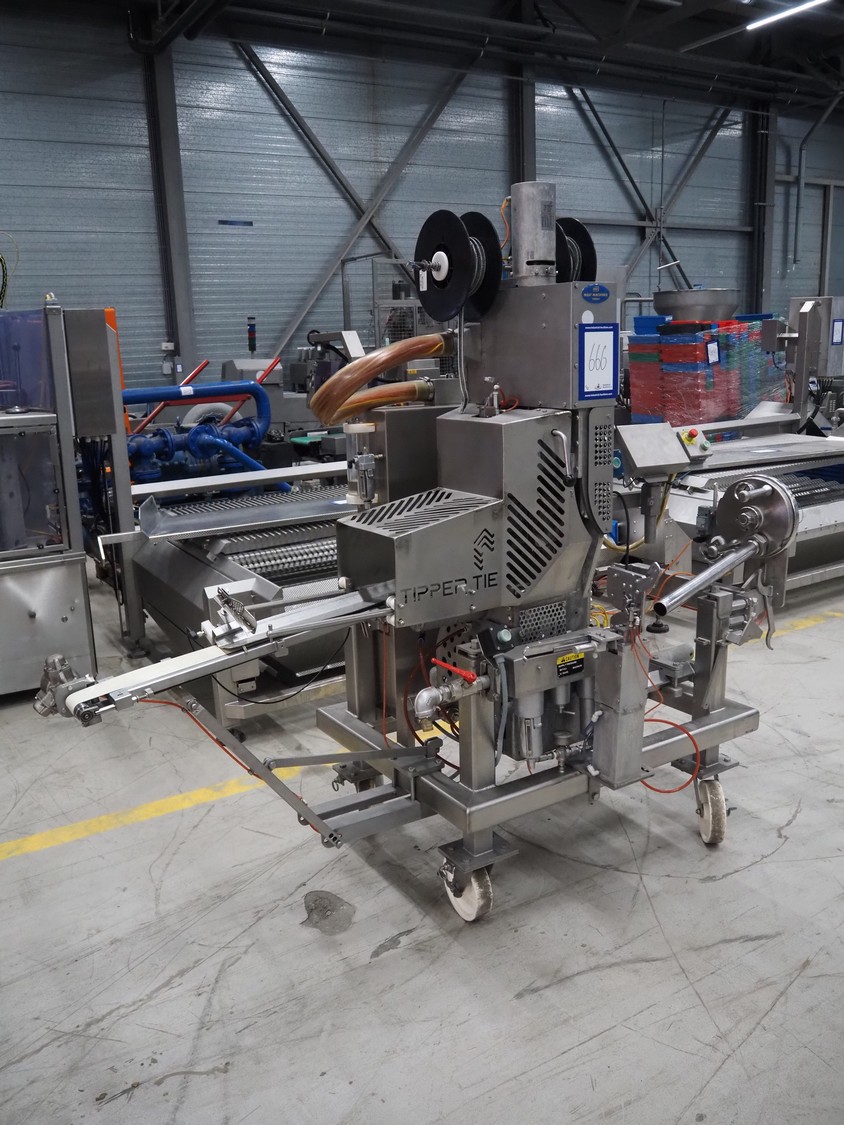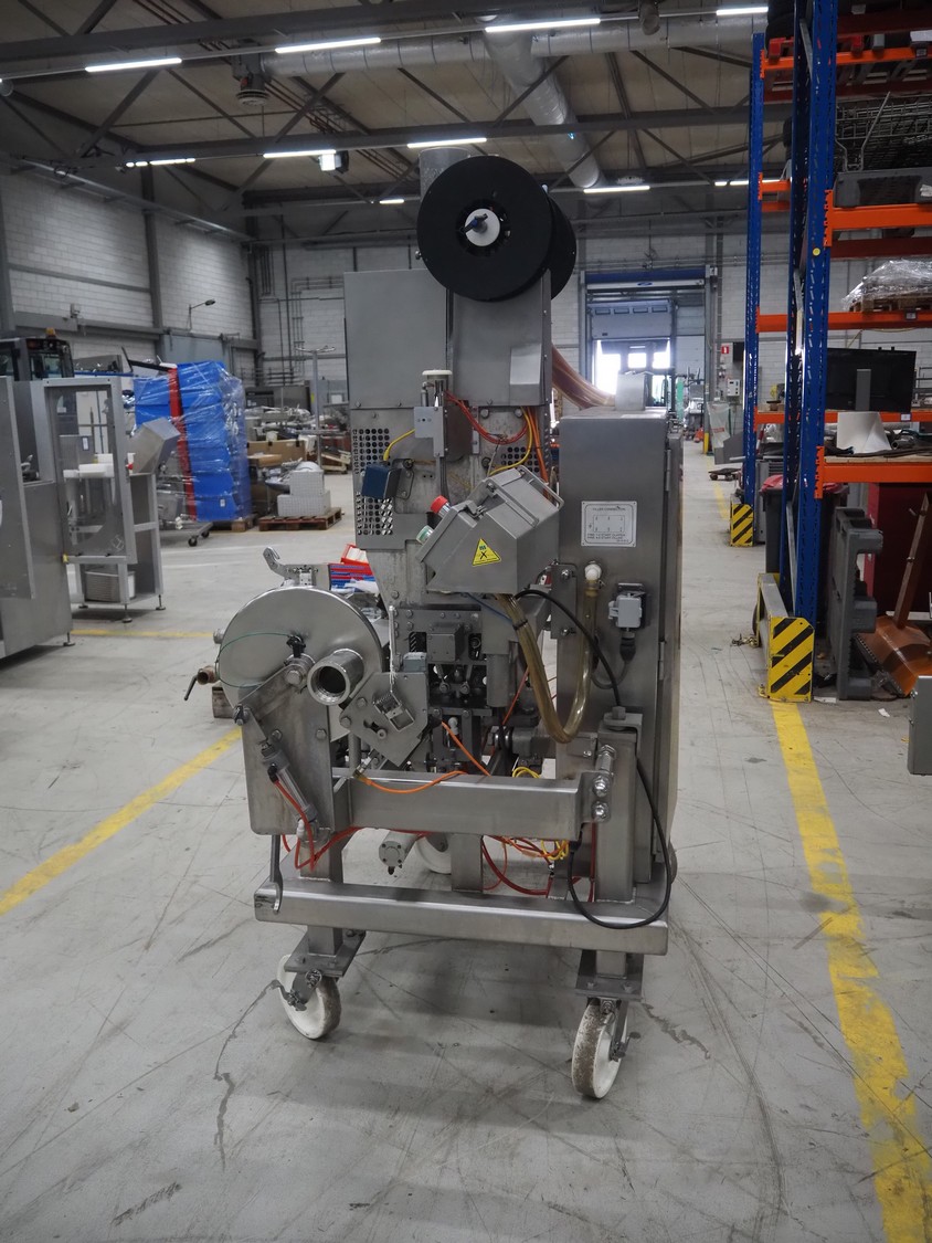 Tipper Tie mobile automatic double clipper, model: SAM3E, serial number: T0007097, year of construction: 04/10/1995, dimensions: 2050 mm x 1050 mm x 2050 mm. Including crate with parts.