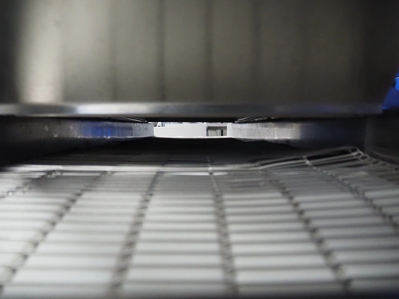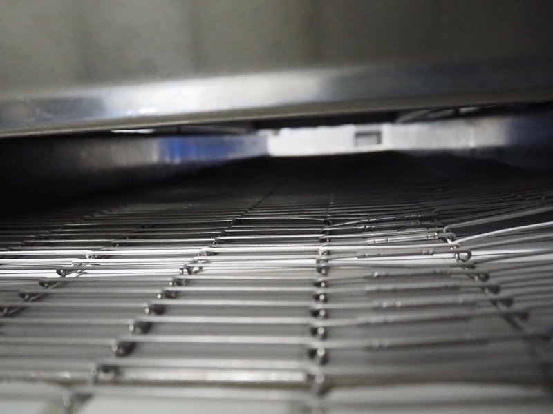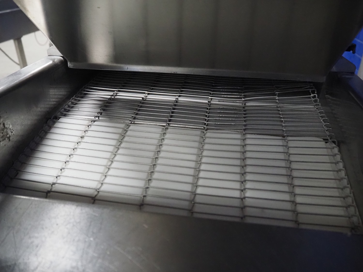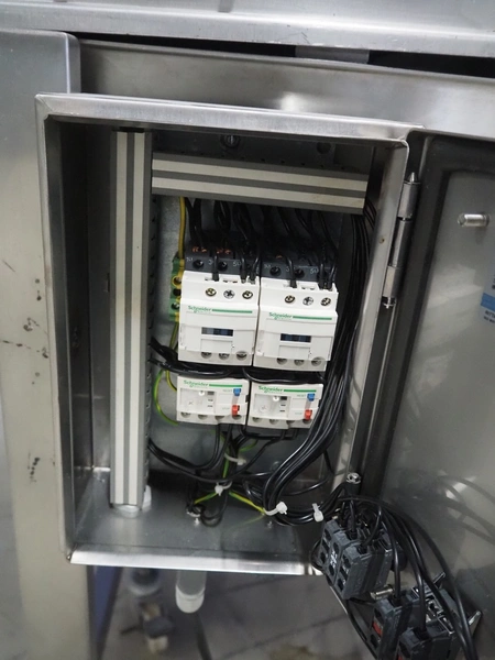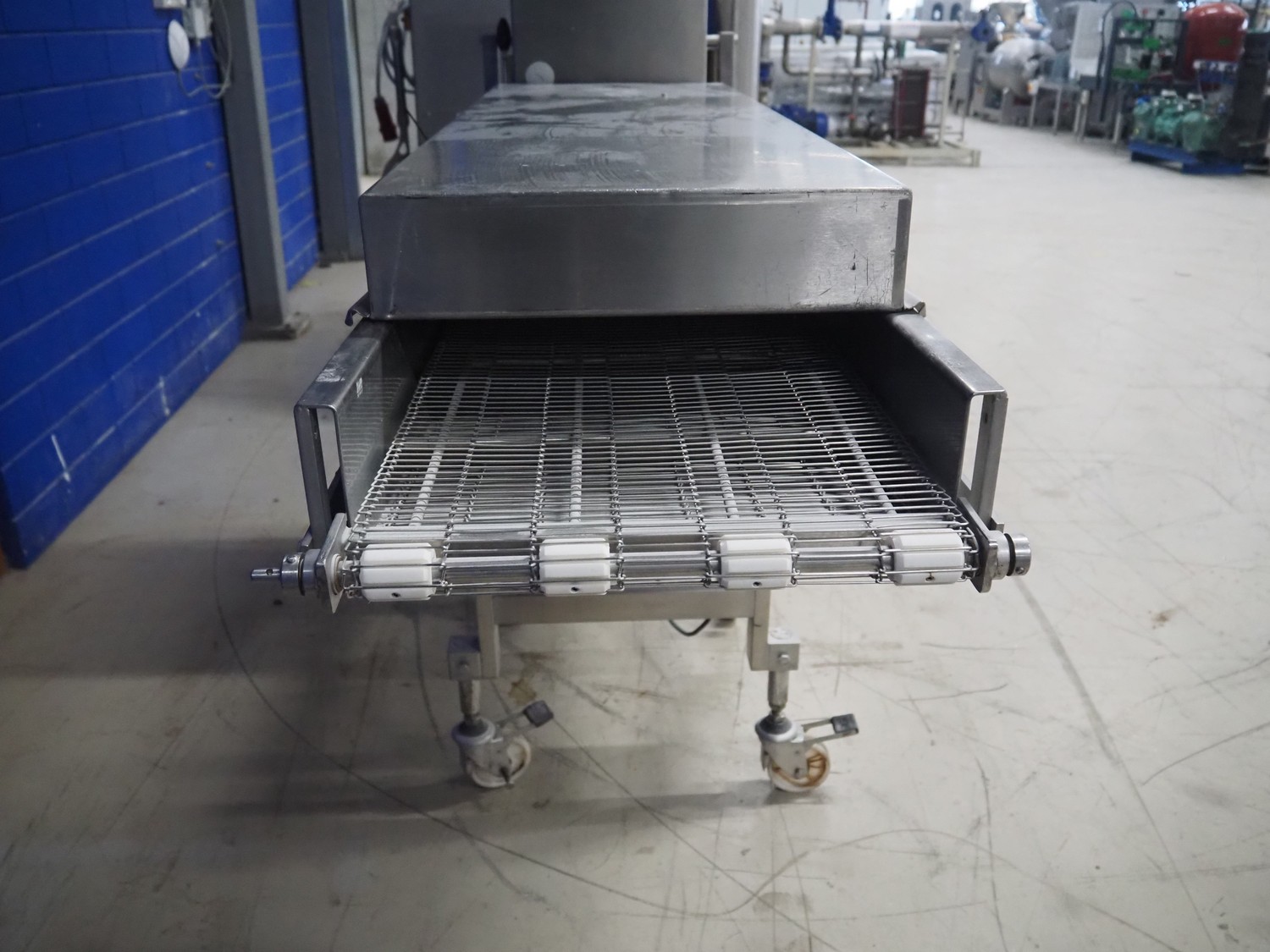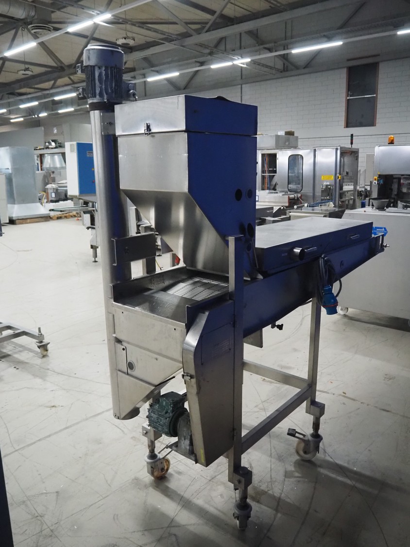 Koppens mobile battering machine, type: EPR 400, machine number: PR 400/438, 380 V, 3 Ph, 50 Hz, 4 A, 0.9 kW, weight: 185 kg, s/s mesh belt, belt width: 400 mm, total dimensions: 2100 mm x 700 mm x 1900 mm.