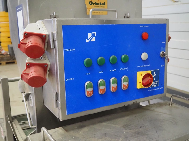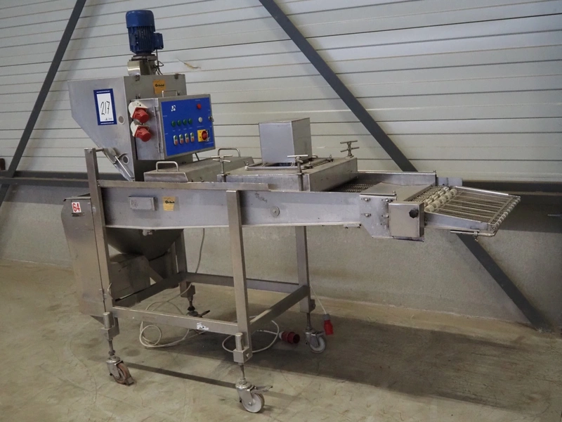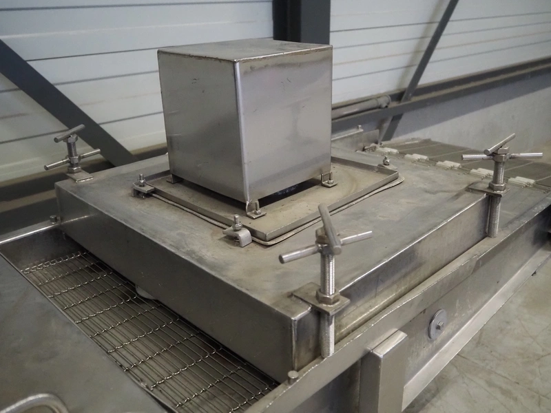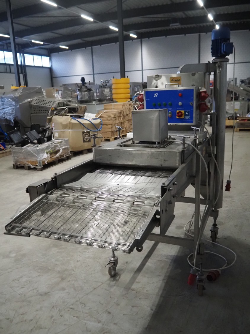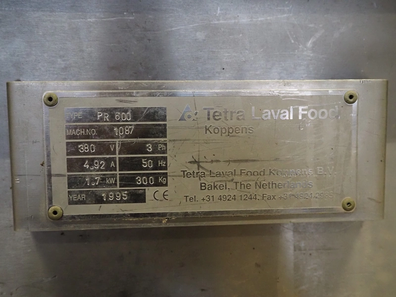 Tetra Laval Food / Koppens breading machine, type: PR 600, machine number: 1087, year of construction: 1995, 380 V, 3 Ph, 50 Hz, s/s mesh belt, belt width: 600 mm, total dimensions: 2600 m x 900 mm x 2100 mm.